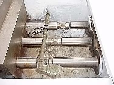 Bomba Homogeneizadora Gaulin. Modelo: 1180 MP6 2TBS. S/N: 186 9991. Presión máxima del cilindro: 2000 psi. Caudal máximo: 1180 GPH. La presión y el caudal se pueden modificar/ajustar para satisfacer sus necesidades. Actualmente está configurado como una bomba, pero se pueden agregar válvulas homogeneizadoras. Válvulas de bola de asiento cónico. 1-3/8 pulg. de diámetro. émbolos. Capacidad máxima: 1180 gph. (2) 1-1/2 pulg. de diámetro. puertos. Dimensiones totales: 51 pulgadas de largo x 40 pulgadas de ancho x 45 pulgadas de alto.