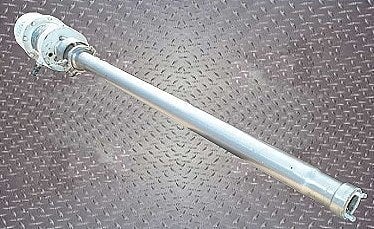 Bomba neumática Graco President. Modelo: 205378. S/N: 6A2. Dimensiones del eje de acero inoxidable: 2-1/2 pulg. de diámetro x 39 pulg. L. Entrada: tubo de succión de 1-3/8 pulg. de diámetro. Salida: Conexión de línea 'S' de 1 pulg. de diámetro. Aplicaciones: pulverización de texturas, suministro de adhesivo, limpieza, acabado por pulverización airless y airless asistido por aire. Dimensiones totales: 12 pulgadas de largo x 8 pulgadas de ancho x 62 pulgadas de alto.