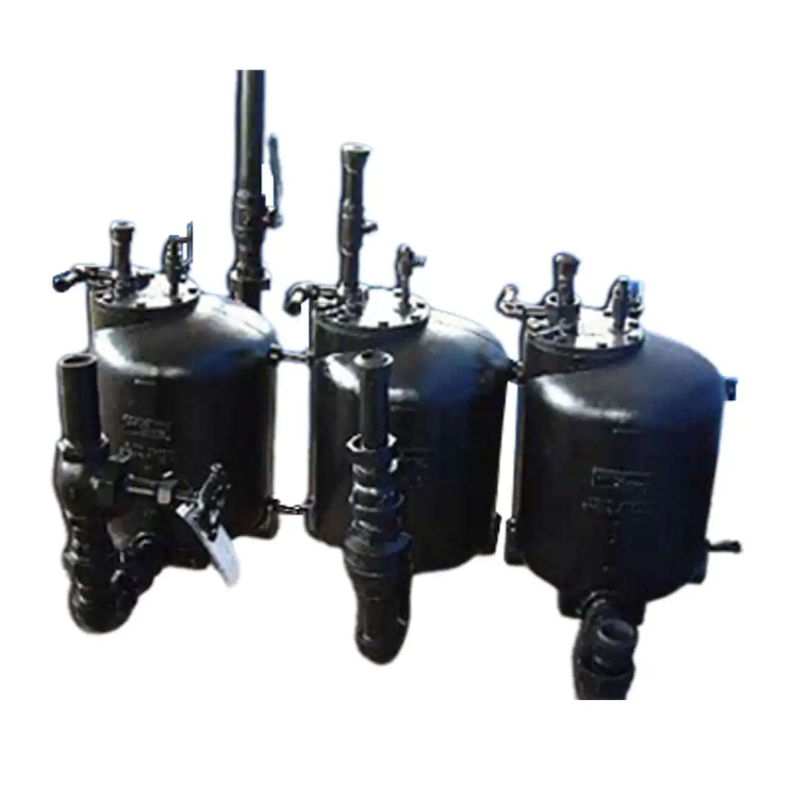 - Descripción de entradas y salidas de tanques: Inlets: (1) 2 in. dia. liquid infeed port, (1) 1/2 in. dia. operating pressure port. Outlets: (1) 2 in. dia. liquid discharge port, (1) 1 in. dia. exhaust port, (1) 3/4 in. dia. drain port, (1) 1/2 in. dia. plug.