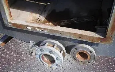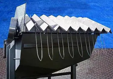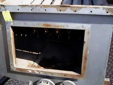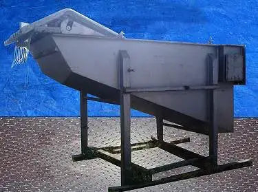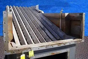 Odenberg Can UnscRam Industriesbler Bed. Apertura/espacio libre máximo sobre las correas: 5 ½ pulg. de ancho x 2 ½ pulg. de alto. Número de canales: 8. Diámetro de clavija: 3/8 pulg. Paso de cadena: 5 pulg. La plataforma Odenberg UnscRam Industriesber saca suavemente las latas del canal de enfriamiento que se colocará en un transportador transversal para su posterior procesamiento. Entradas: (1) puerta de acceso de 29 ½ pulgadas de largo x 19 ½ pulgadas de ancho. Salidas: (1) 3 pulg. de diámetro. puerto con un diámetro de 7 ½ pulg. brida y (4) orificios de ¾ a una distancia de centro a centro de 4 ¼, (1) válvula de derivación de 4 pulg. NPT (hembra). Dimensiones totales: 11 pies 2 pulgadas de largo x 5 pies 5 pulgadas de ancho x 7 pies de alto.