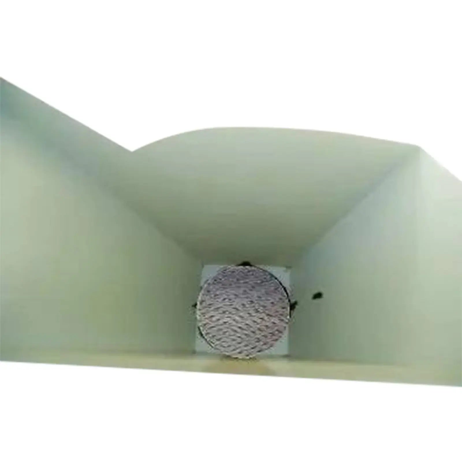 Capucha K-Tron. El labio exterior tiene un labio de 1-1/2 pulg. de ancho y (10) 1/4 pulg. de diámetro. orificios de fijación y se puede acoplar a cualquier superficie plana. Entradas: (1) Entrada de 31 pulgadas de largo x 15 pulgadas de ancho x 21 pulgadas de alto. Salidas: (1) 6 pulg. de diámetro. puerto. Dimensiones totales: 33-1/2 pulgadas de largo x 18 pulgadas de ancho x 23 pulgadas de alto.