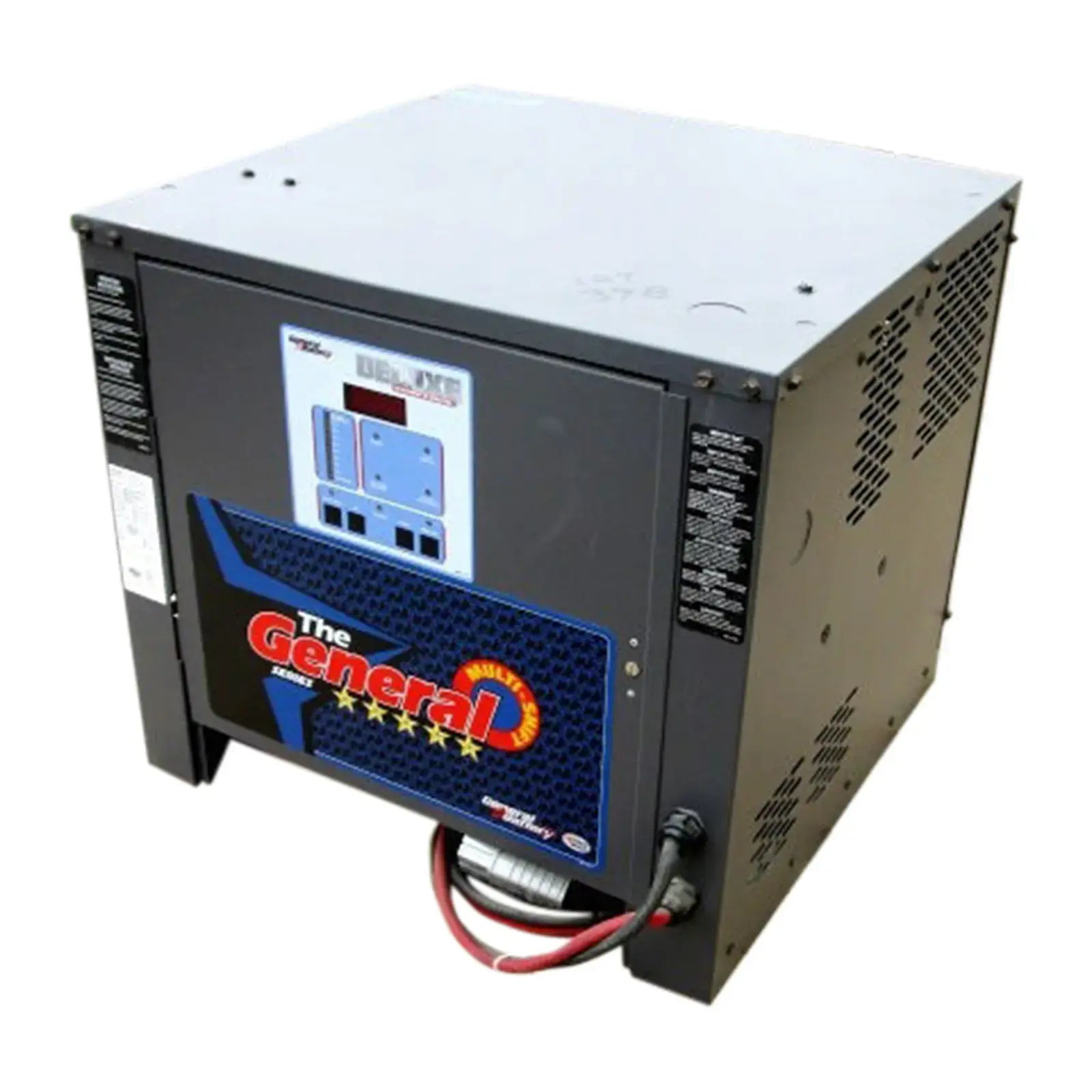 Cargador de batería General Battery de 36 voltios sin usar. Modelo: MX3-18-775. Tipo de batería: LA. Amp horas: 775. (18) celdas. Voltios CA de entrada: 208/240/480. Amperios CA de entrada: 23/2/10. Voltios CC de salida: 36. Amperios de salida máx.: 155, 60 Hz. 3 fases. Dimensiones totales: 2 pies 3 pulgadas de largo x 2 pies 1 pulgadas de ancho x 2 pies de alto (ACN20).(H17).
