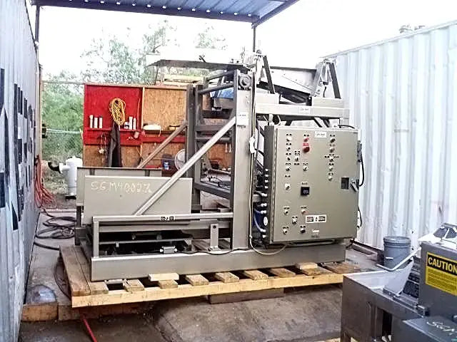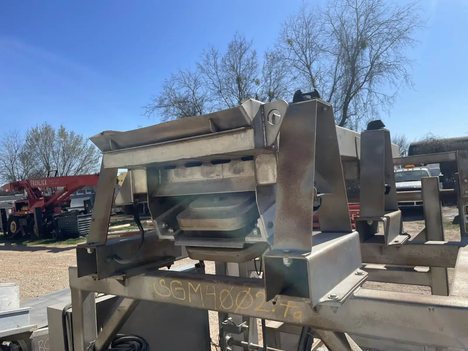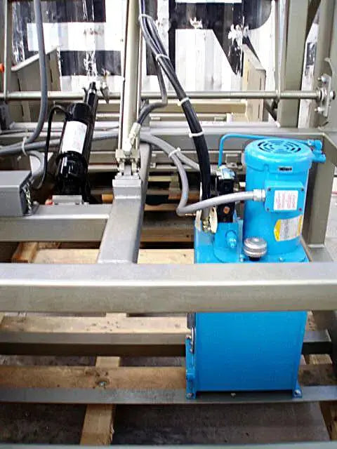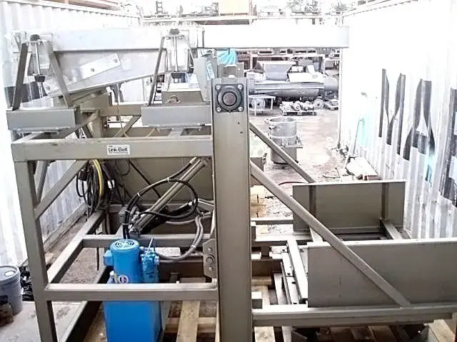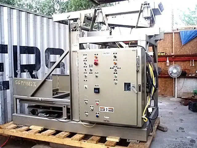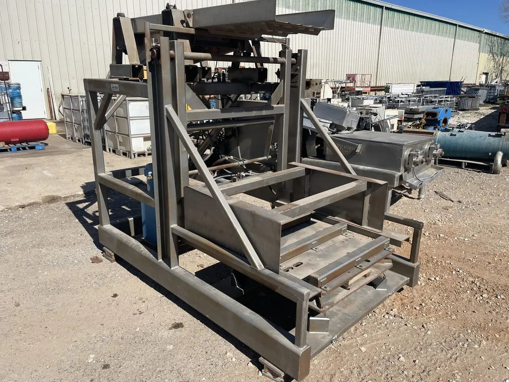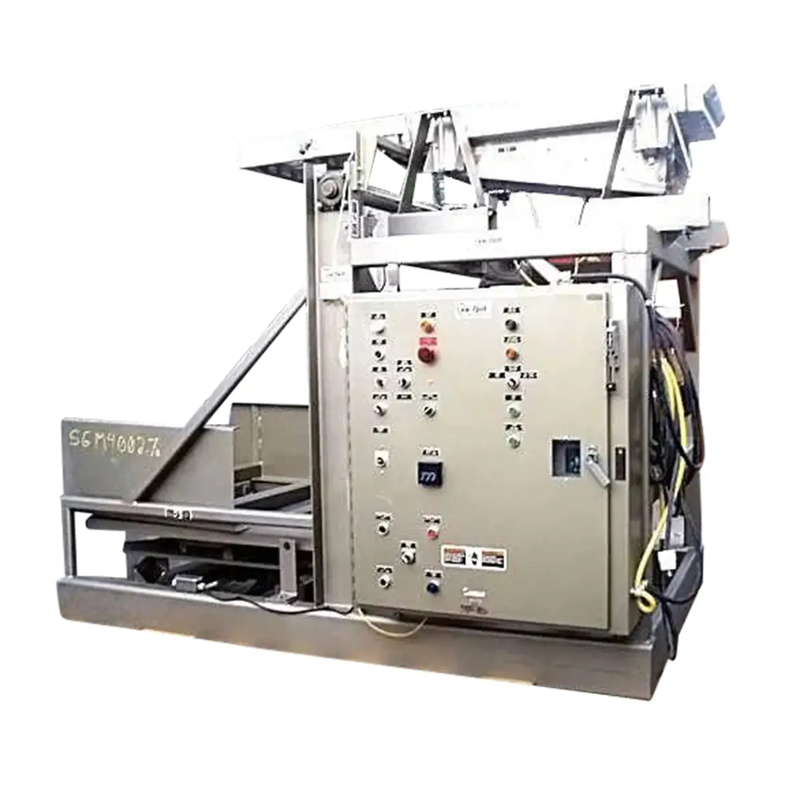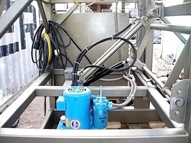 Cargador de bolsas FMC. S/N: 785755. FO No. B63008. Capacidad máxima del totalizador: 800 lbs. Fuente de alimentación: 460 V, 3,1 amperios, 60 Hz, trifásica. Actuador electromecánico eléctrico Warner. Fuente de alimentación: 115 V, 2,5 amperios, 60 Hz. Bomba hidráulica Vickens con motor industrial Baldor, 2 hp, 1725 rpm, 208-230/460 V, 6,5-6,2/3,1 amperios, 60 Hz, trifásica. Entradas/salidas: 82 pulgadas de largo x 24 pulgadas de ancho (cargador de bandeja de tolva). Dimensiones totales: 8 pies 5 pulgadas de largo x 6 pies 1 pulgadas de ancho x 7 pies 9 pulgadas de alto.