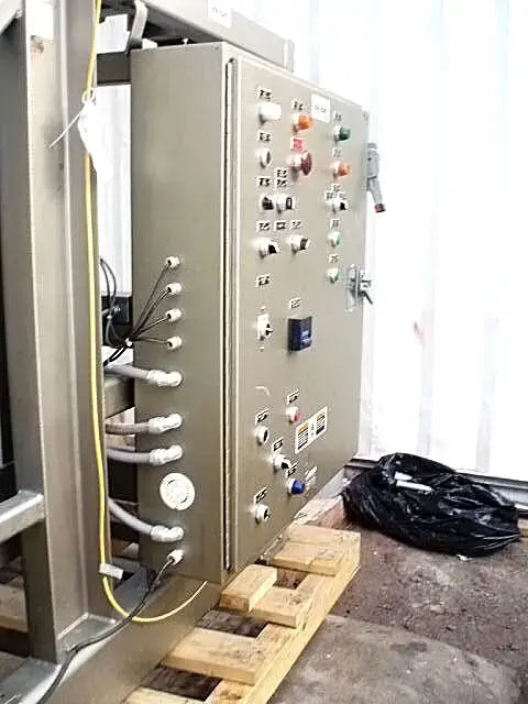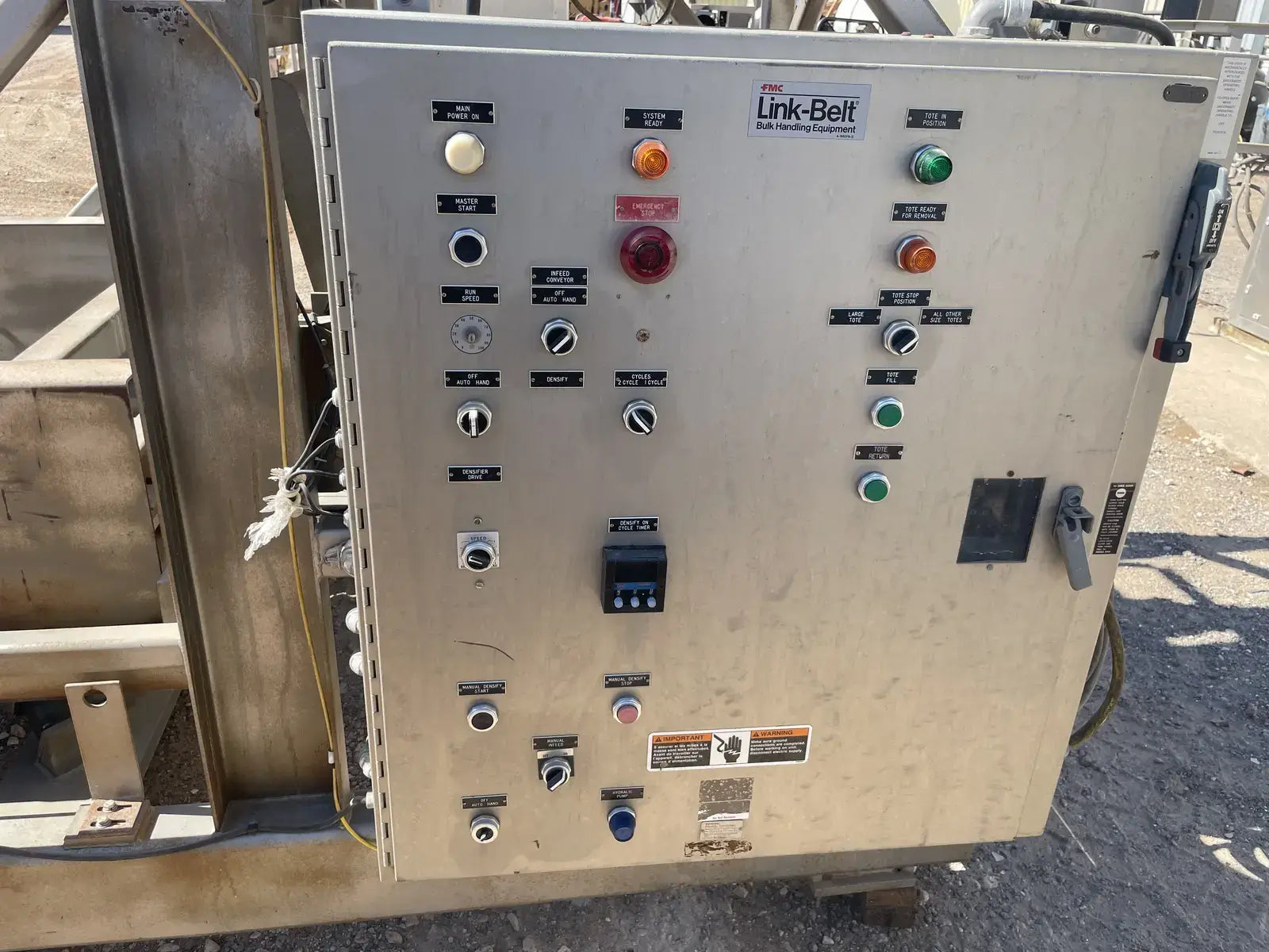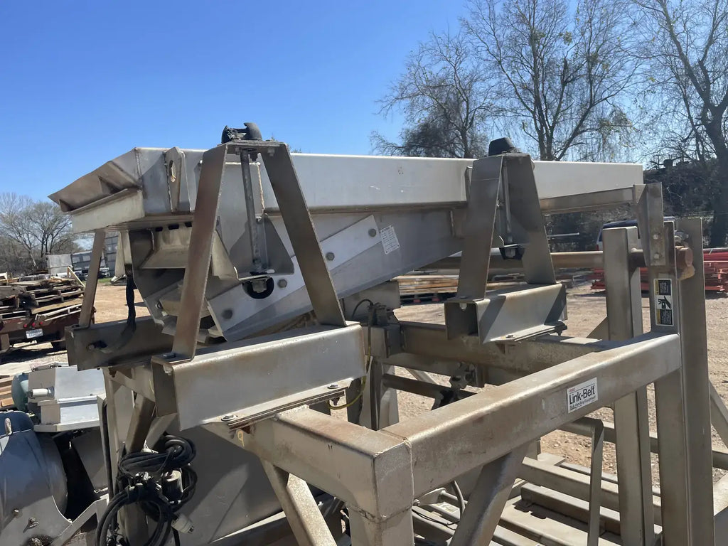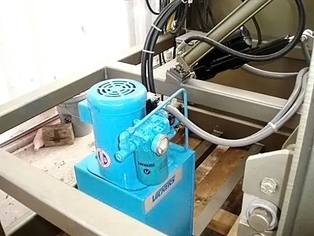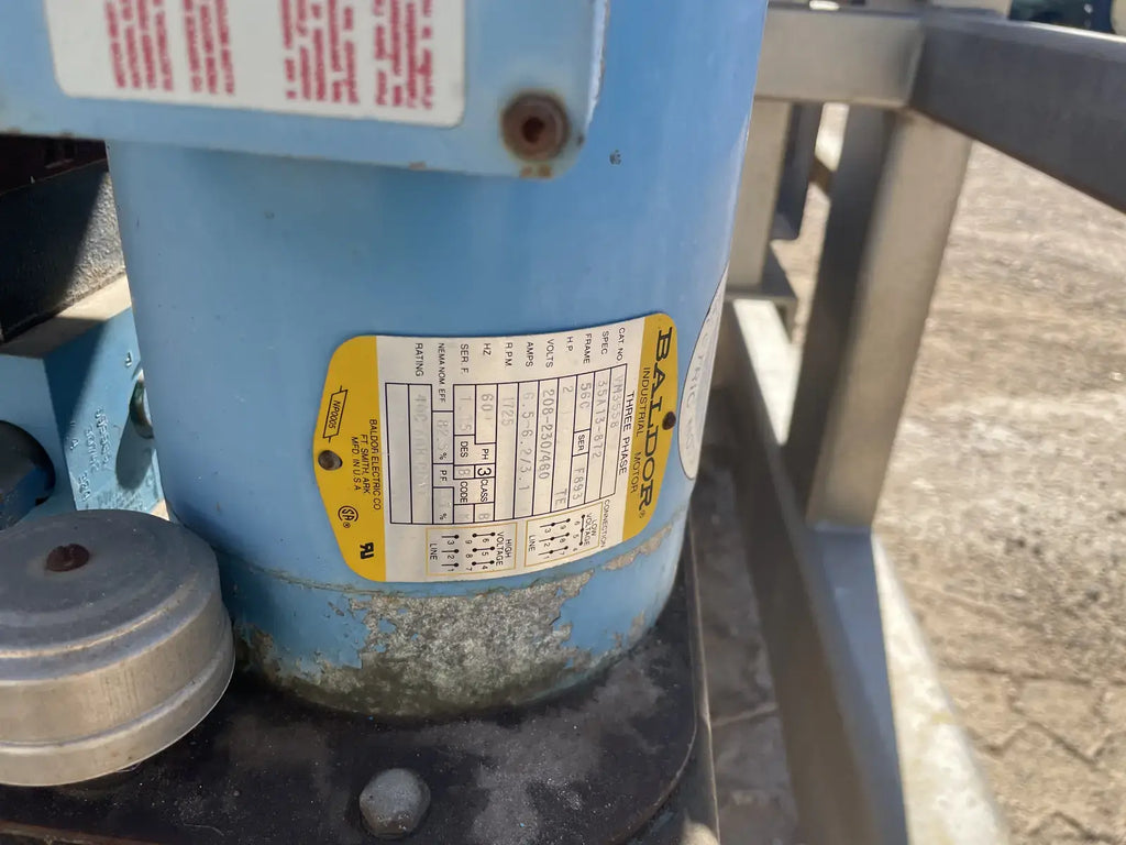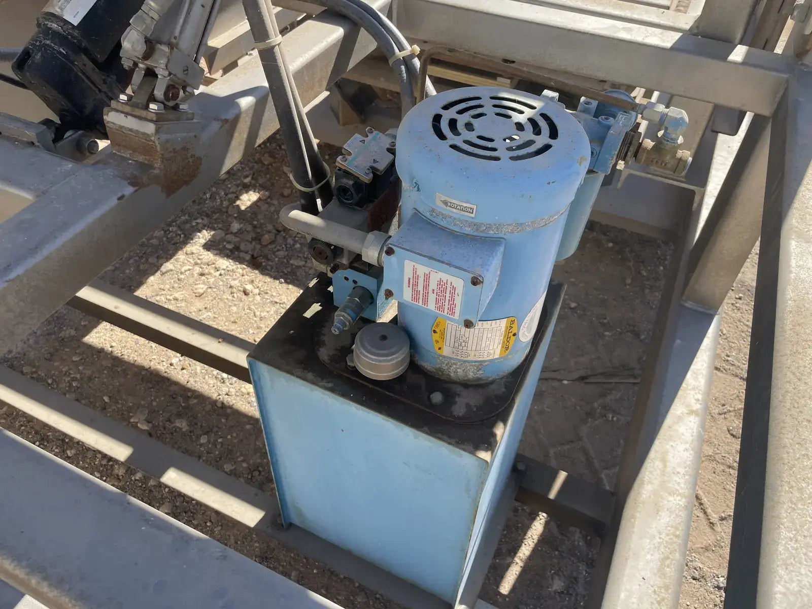 Cargador de bolsas FMC. S/N: 785755. FO No. B63008. Capacidad máxima del totalizador: 800 lbs. Fuente de alimentación: 460 V, 3,1 amperios, 60 Hz, trifásica. Actuador electromecánico eléctrico Warner. Fuente de alimentación: 115 V, 2,5 amperios, 60 Hz. Bomba hidráulica Vickens con motor industrial Baldor, 2 hp, 1725 rpm, 208-230/460 V, 6,5-6,2/3,1 amperios, 60 Hz, trifásica. Entradas/salidas: 82 pulgadas de largo x 24 pulgadas de ancho (cargador de bandeja de tolva). Dimensiones totales: 8 pies 5 pulgadas de largo x 6 pies 1 pulgadas de ancho x 7 pies 9 pulgadas de alto.