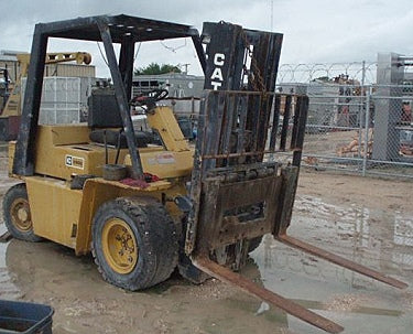Carretilla elevadora Caterpillar. Modelo (tipo): G V60C. Número de serie: 31S517. Aprox. peso: 11,520 libras. Capacidad: 6000 libras a 24 pulgadas del centro de carga. Dimensiones de la horquilla: 46 pulg. L x 5 pulg. W. Combustible: gasolina. 4 cilindros. Estampado del motor: 3711248012. Bujía: Autolite 66. Cable de bujía: Hi-Teck Super Stock Radio Suppression Core 8mm. Filtro de aceite: Hastings Premium Filter LF436. (2) Neumáticos delanteros: Mitco Solver Industrial Mine, sin cámara, nailon, tamaño: 32x12,1-15NHS. (2) Neumáticos traseros: West Lake, sin cámara, nailon, 7,00-12. Dimensiones totales: 13 pies 8 pulgadas de largo x 60 pulgadas de ancho x 84 pulgadas de alto.