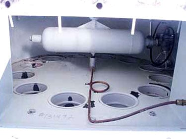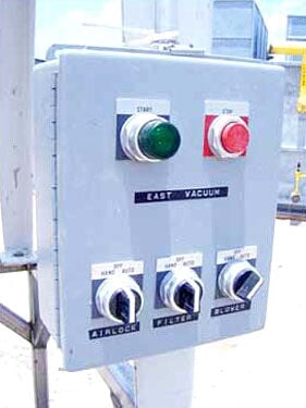 1995 Kice Industries Inc. Colector de polvo vertical. Modelo: HRB 12-6. Número de filtros: 12. Dimensiones del filtro: 4 pulg. de diámetro. x 5 pies 9 pulgadas de alto. Superficie total del filtro: 85 pies cuadrados. Motor eléctrico Reliance, 1/3 hp, motor eléctrico Reliance, 1/2 hp. Interruptor y transductor de presión accionados por presión Asco Tri-Point. Las aplicaciones incluyen la eliminación de polvo y otros flujos de productos de las operaciones de procesamiento. Entradas: (1) 4 pulg. de diámetro. puerto, (2) 3 pulg. de diámetro. puertos. Salidas: (1) descarga de 5-1/2 pulgadas de largo x 5-1/2 pulgadas de ancho. Dimensiones totales: 4 pies de largo x 3 pies 6-1/4 pulgadas de ancho x 12 pies 7-1/2 pulgadas de alto (ACN117a).