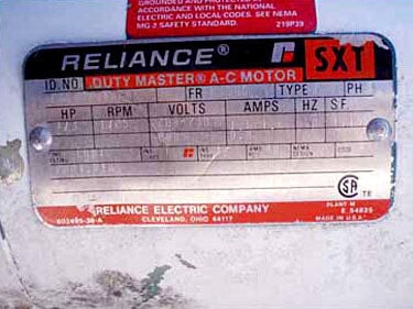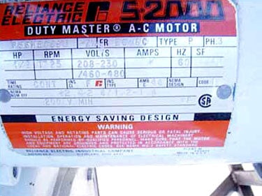 - Si hay varios motores, descripciones de motores frente a especificaciones: (1) 0.33 hp Reliance Electric motor, and (1) 0.5 hp Reliance Electric motor