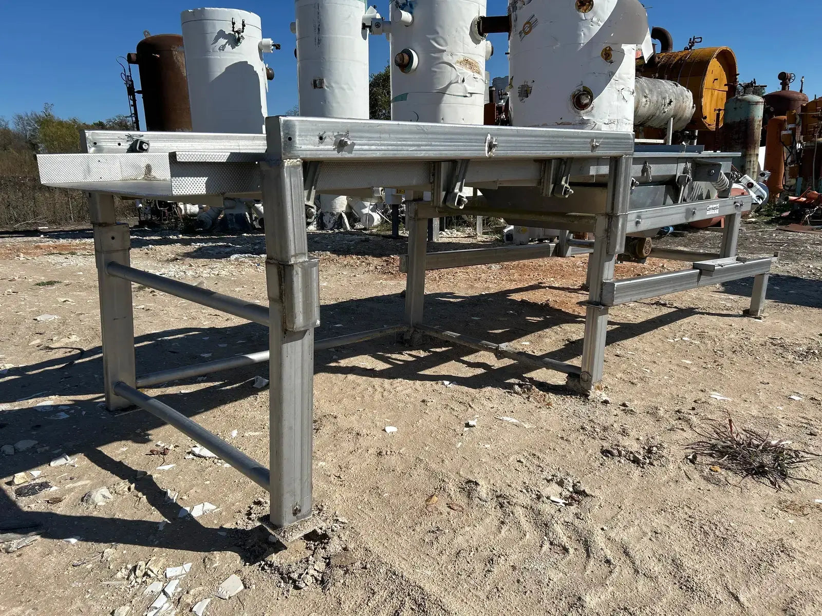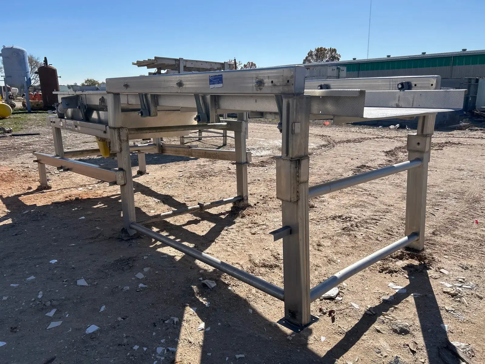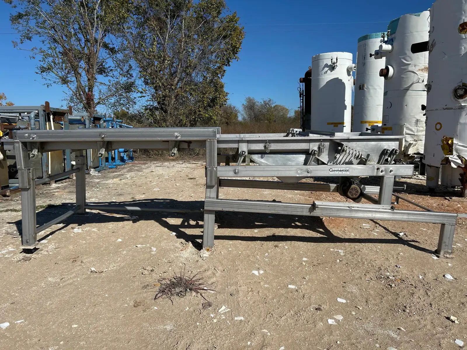 Commercial Mfg. & Supply Co. Transportador de cribado vibratorio de acero inoxidable. Número de serie: D9938304. Trabajo: 8304. Motor Baldor. Número de gato: CM3558T. Número de especificación: 35A002T585H1. Número de serie: F299. 2 hp, 1740 rpm, 208-230/460 V, 60 HZ, 3 PH, bastidor 145TC. Incluye escalera y pasarela. Dimensiones del área del producto: 4 pies de ancho x 15 pies de largo.