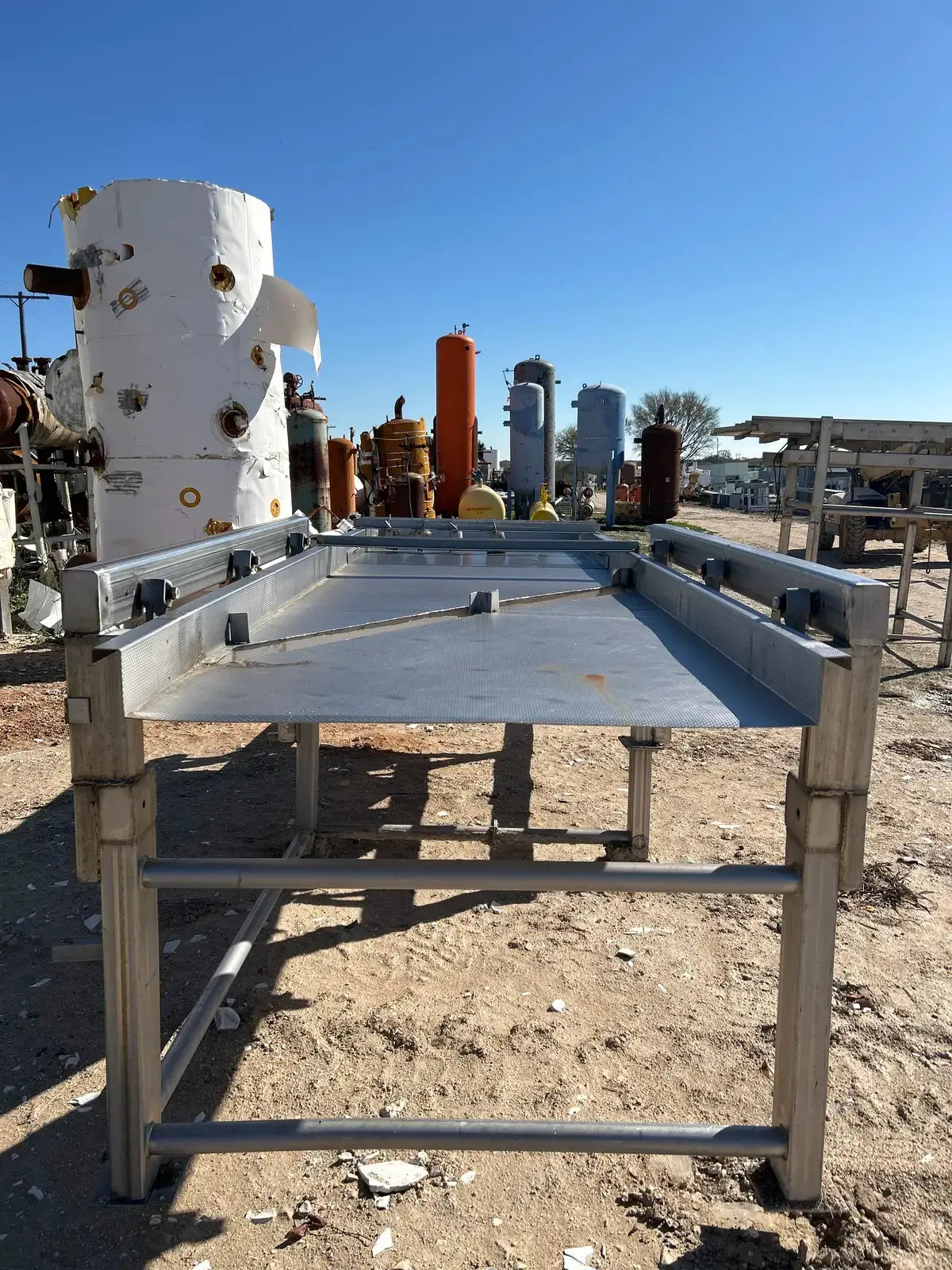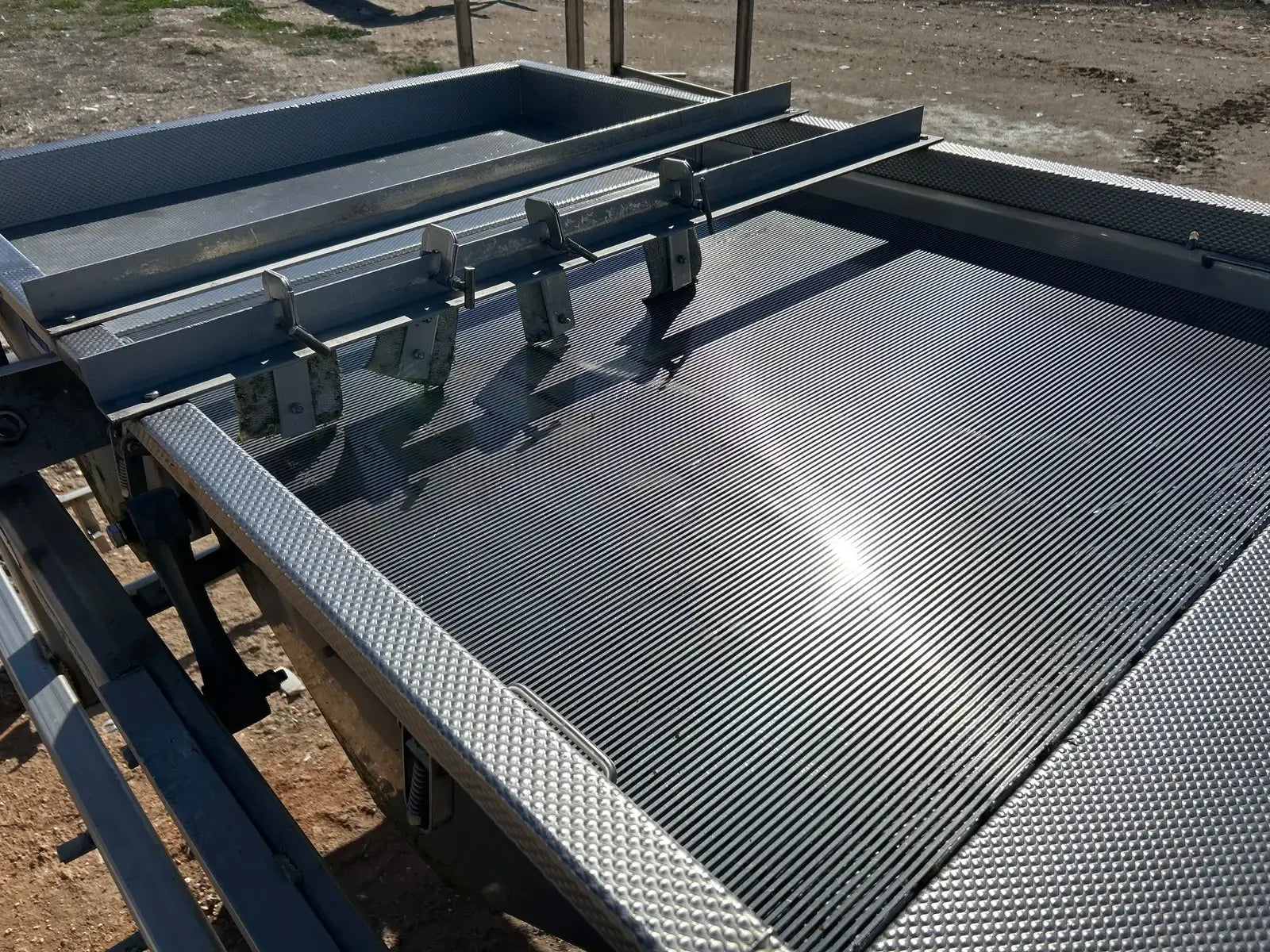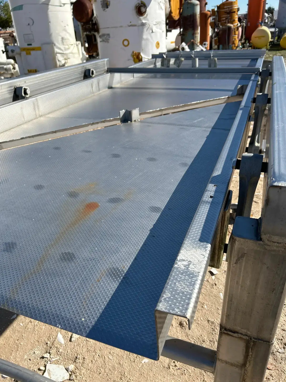 Commercial Mfg. & Supply Co. Transportador de cribado vibratorio de acero inoxidable. Número de serie: D9938304. Trabajo: 8304. Motor Baldor. Número de gato: CM3558T. Número de especificación: 35A002T585H1. Número de serie: F299. 2 hp, 1740 rpm, 208-230/460 V, 60 HZ, 3 PH, bastidor 145TC. Incluye escalera y pasarela. Dimensiones del área del producto: 4 pies de ancho x 15 pies de largo.