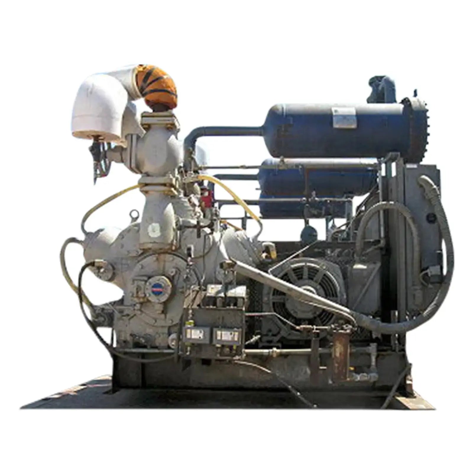 Compresor alternativo Mycom. Modelo: N6WB. Fuga (Psig) HP: 313, LP: 185. HYD (Psig) HP: 470, LP: 470. Motor Teco-Westinghouse: 125 Hp, 1775 Rpm, 230/460 V, 284/142 A, 60 Hz, Trifásico . Henry Technologies puede. Ltd. Modelo: C0SR-140. Número de serie: C210579A-1. Fecha: 2001. NAT'L BD: 12980. Dimensiones del filtro de aceite: 3 pies de pared recta x 1 pie 3 pulgadas de diámetro. Dimensiones totales: 7 pies 7 pulgadas de largo x 6 pies de ancho x 8 pies de alto.