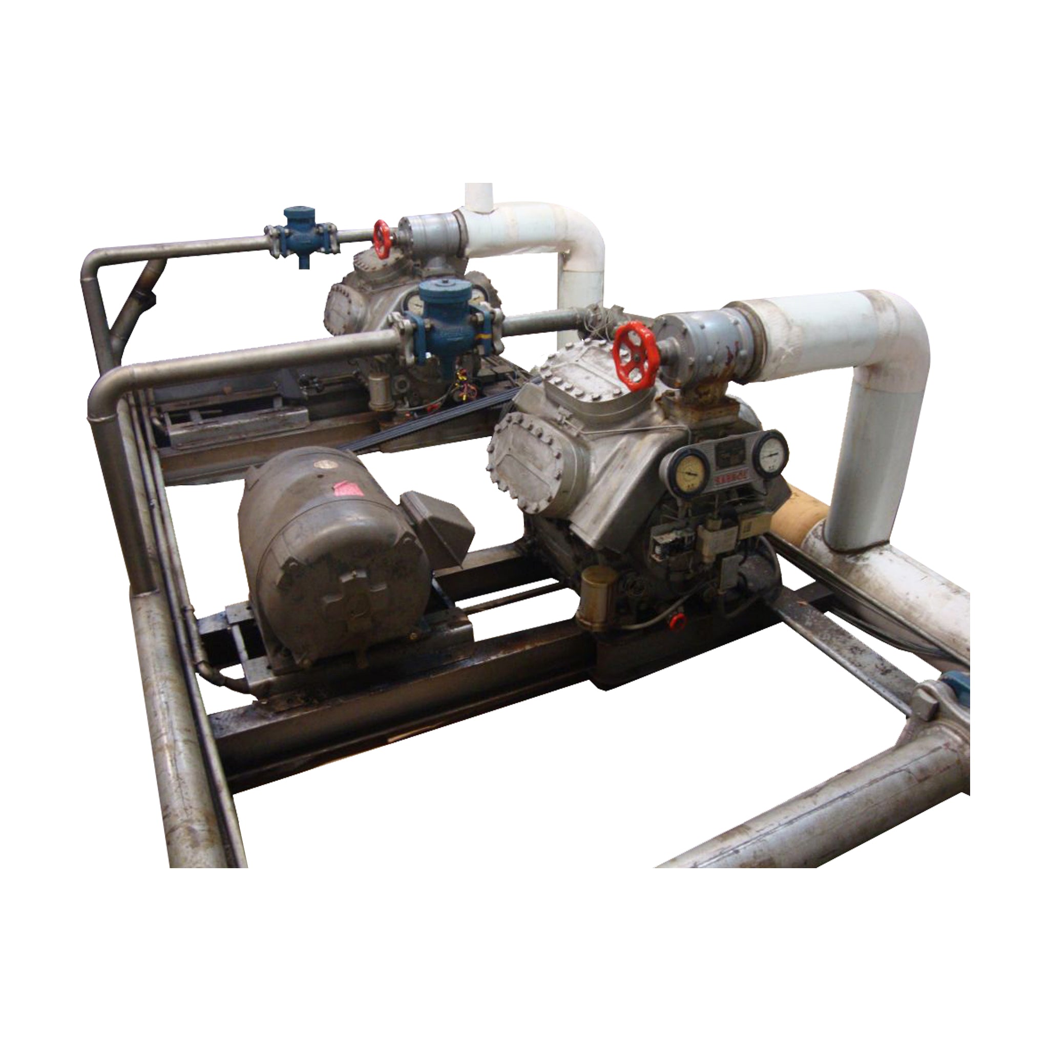 Compresor alternativo Sabroe de 8 cilindros. Modelo: SMC108L. Solo compresor, no incluye motor ni base. Diámetro x carrera: 100 mm x 100 mm. RPM máximas: 1500. Volumen barrido a RPM máximas: 565 metros cúbicos/hora. Capacidades nominales (R717): 335 kW a -10/+35 °C en etapa alta; 531kW en etapa alta de 0/+35C; 93kW a -40/-10C de refuerzo. Capacidades nominales (R404): 416kw a 0/+35C etapa alta; 270kW a -10/+35C etapa alta. Dimensiones: 75 a 100 pulgadas de largo x 39,5 pulgadas de ancho x 44,5 pulgadas de alto. Peso: 2200 libras. Nivel de presión sonora 83 dB(A). Sabroe Products es parte de Johnson Controls. La aplicación anterior fue el freón R-22.