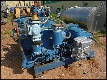 Compresor compuesto alternativo Mycom Compresor Mycom. Modelo: N62WB. Refrigerante: amoniaco (R-717). Capacidad nominal: 66 toneladas a 110 hp a una temperatura de condensación de 95°F y temperatura de evaporación de -4°F. (8) cilindros: (6) etapa baja y (2) etapa alta. Diámetro: 5-1/8. Carrera: 3-15/16. Velocidad máxima nominal del compresor: 1200 rpm. Desplazamiento de velocidad máxima: etapa baja 337 cfm y etapa alta 112 cfm. Motor Lincoln Lincguard: 100 HP, 1770 rpm, 230/460 V, 238/119 amperios, 60 Hz, trifásico. Dimensiones totales: 7 pies 11 pulgadas de largo x 4 pies 5 pulgadas de ancho x 5 pies de alto.