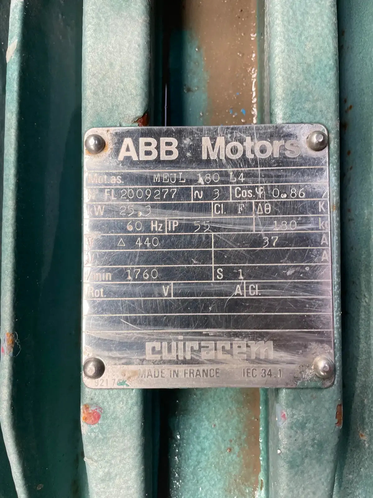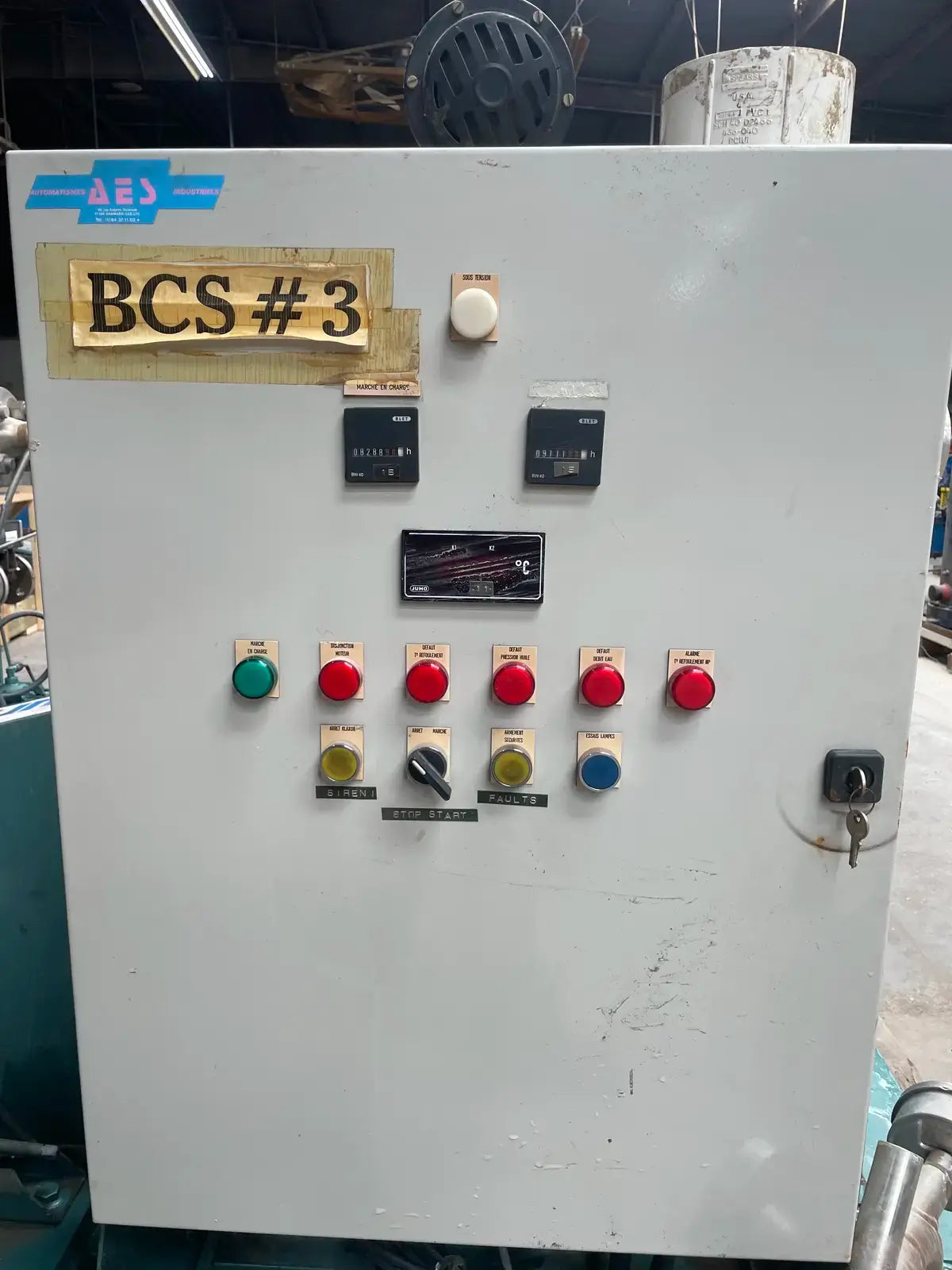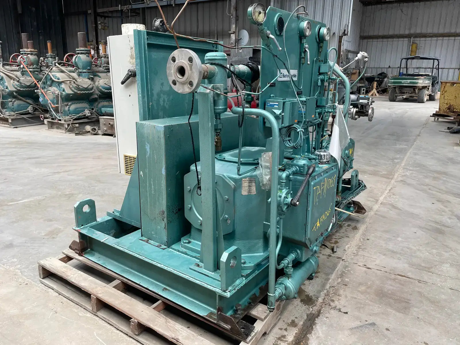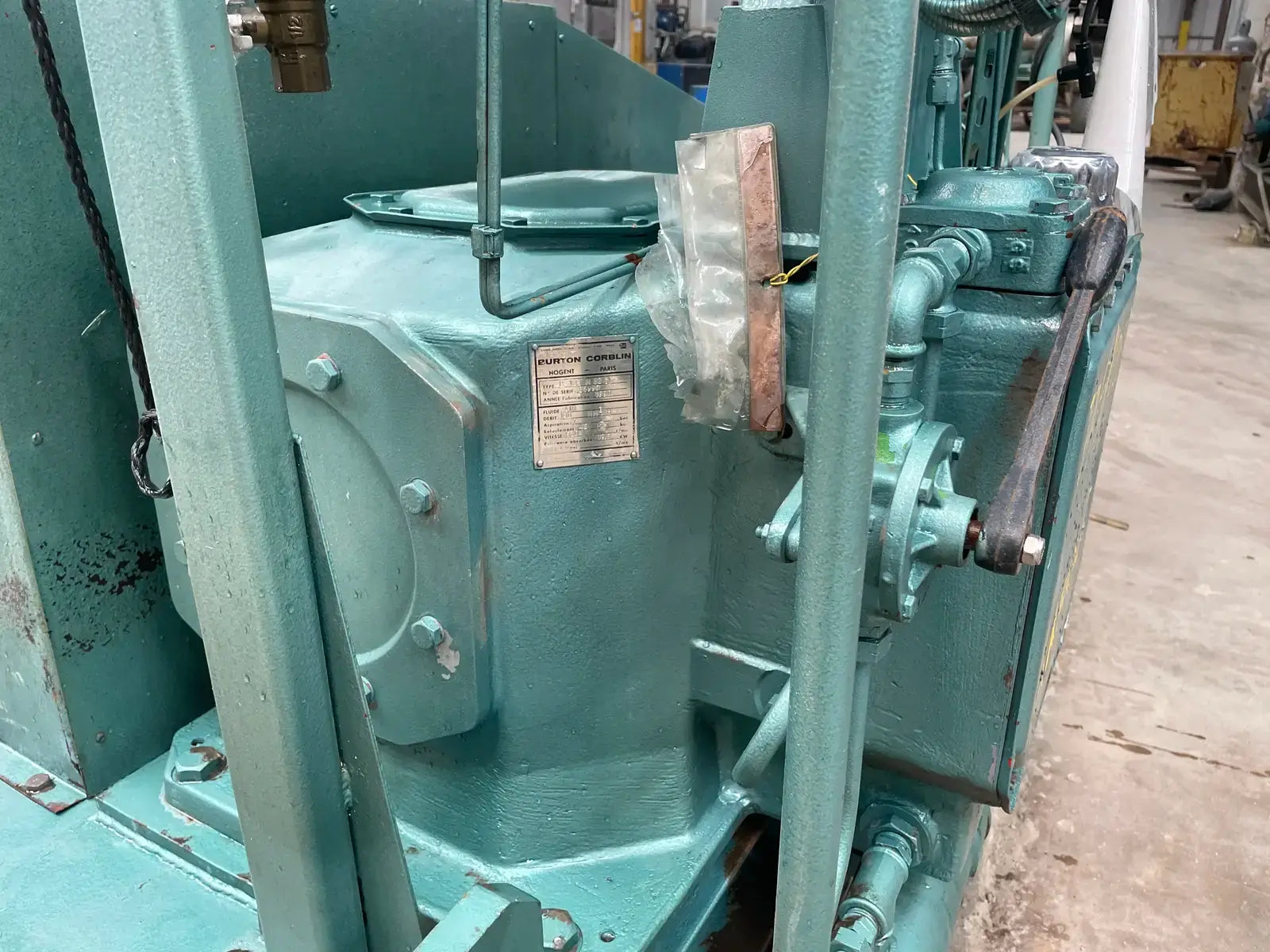 1990 Compresor de gas alternativo Burton Corbin. Modelo: P123 M82S. Motor eléctrico ABB de 30 CV. Las aplicaciones incluyen gases inertes como nitrógeno o hidrógeno. Entradas: (1) 1 pulg. de diámetro. Conexiones NPT, (1) 2 pulg. de diámetro. puerto embridado. Salidas: (1) 2 pulg. de diámetro. puerto embridado. Dimensiones totales: 7 pies 7 pulgadas de largo x 4 pies 11 pulgadas de ancho x 4 pies 7 pulgadas de alto (H11) (ACN1000)