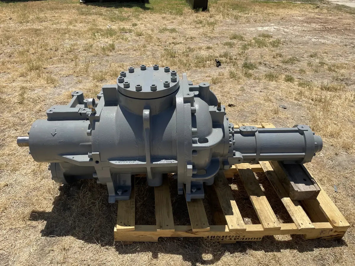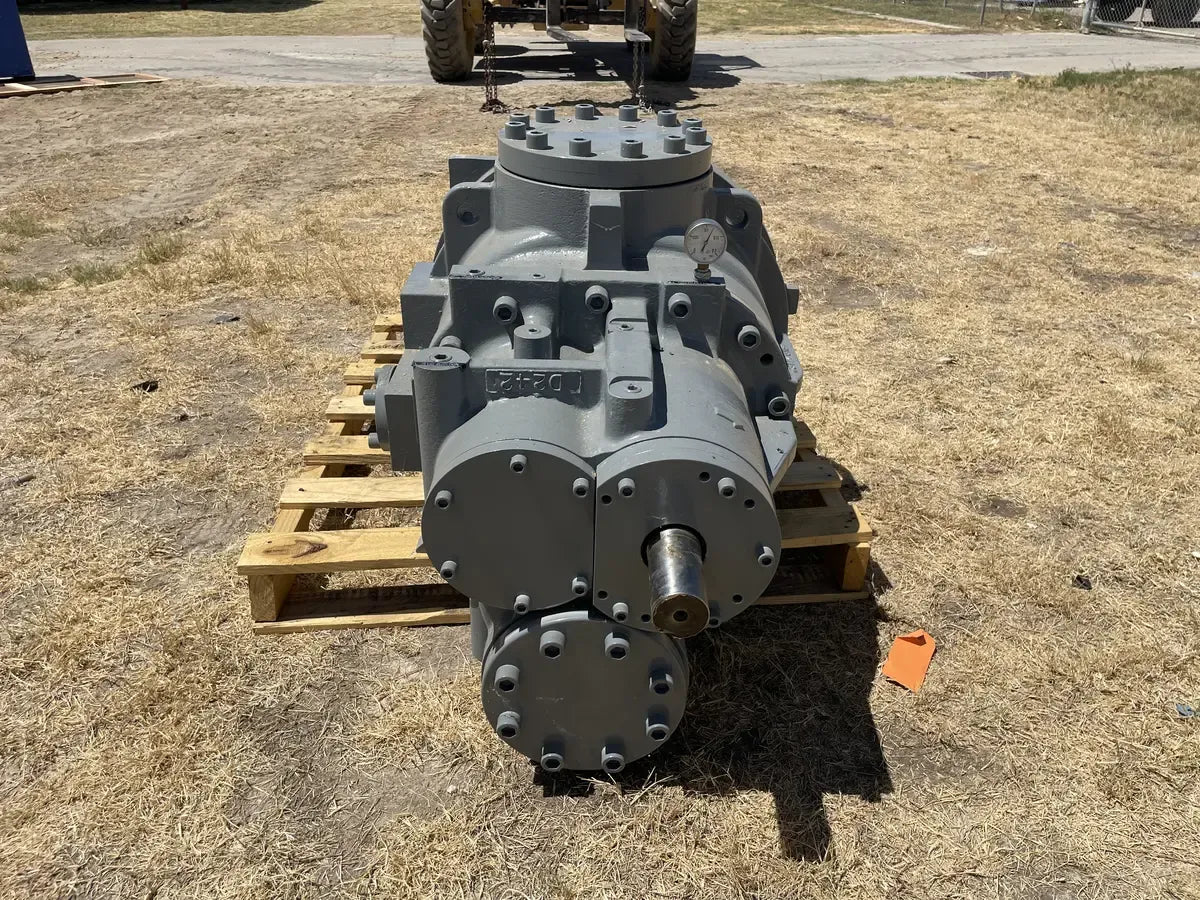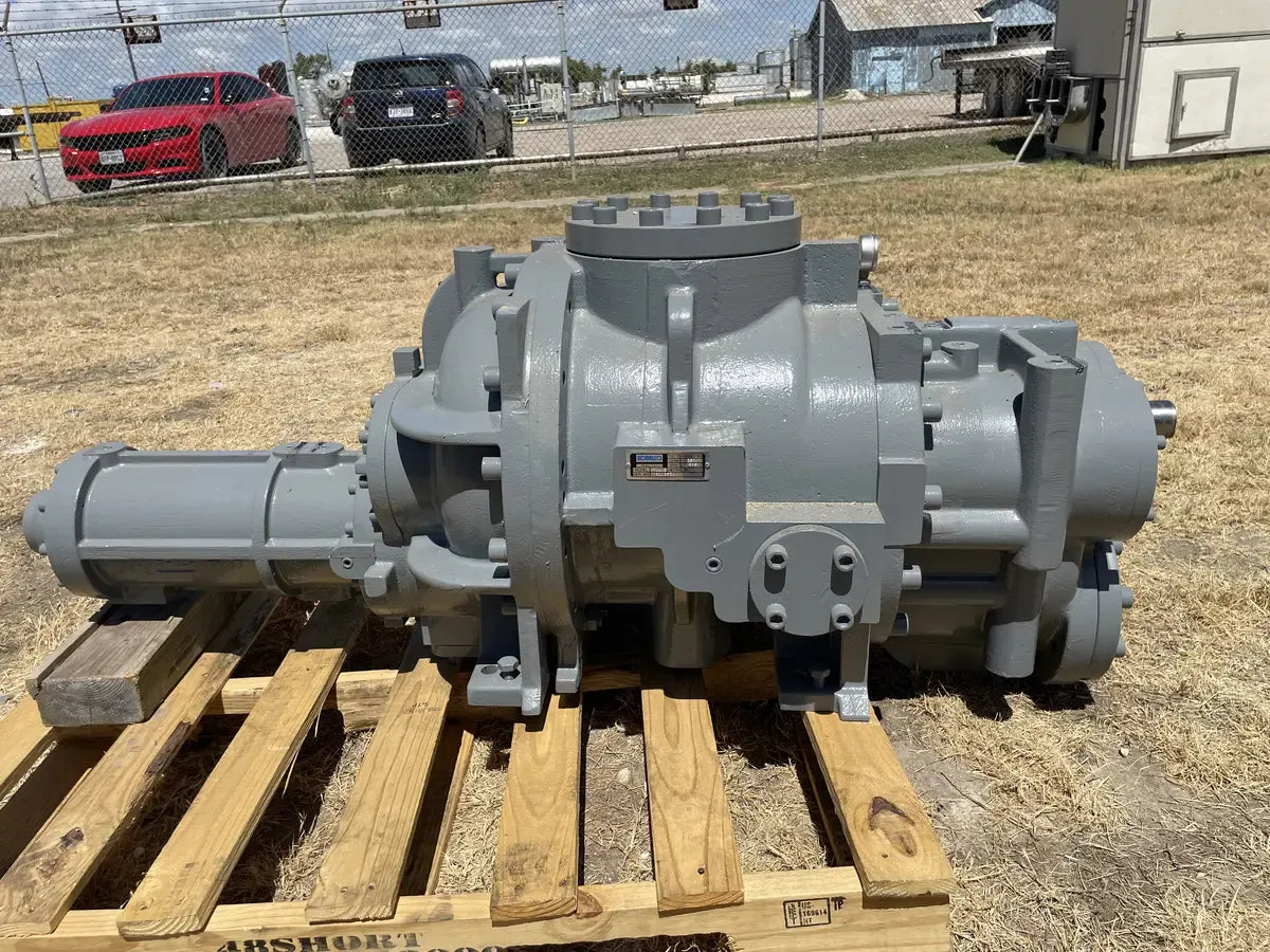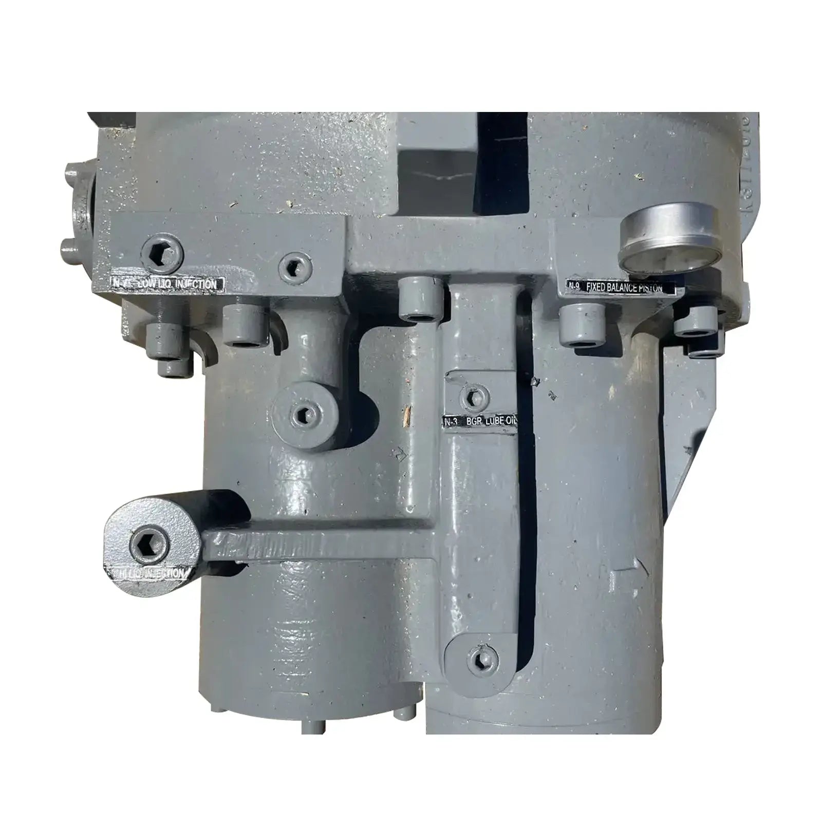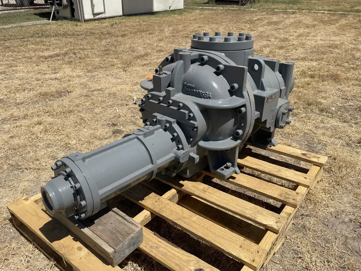Compresor de tornillo desnudo a gas Kobelco. Modelo: 19LL. N.º de serie: 19LL95DV. Presión de prueba (PSIG): Fuga: 350, HYD: 525. Desplazamiento a 3600 RPM: 1065 CFM, m3/h: 1809. Desplazamiento a 1800 RPM: 532 CFM, m3/h: 905. Presión máxima de trabajo (PSIG): 350 PSIG. Volumen barrido (CFM): 1065 cfm a 3600 RPM, 532 CFM a 1800 RPM. RPM máximas: 4500.