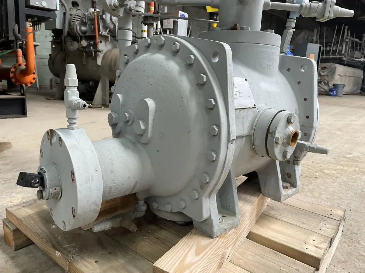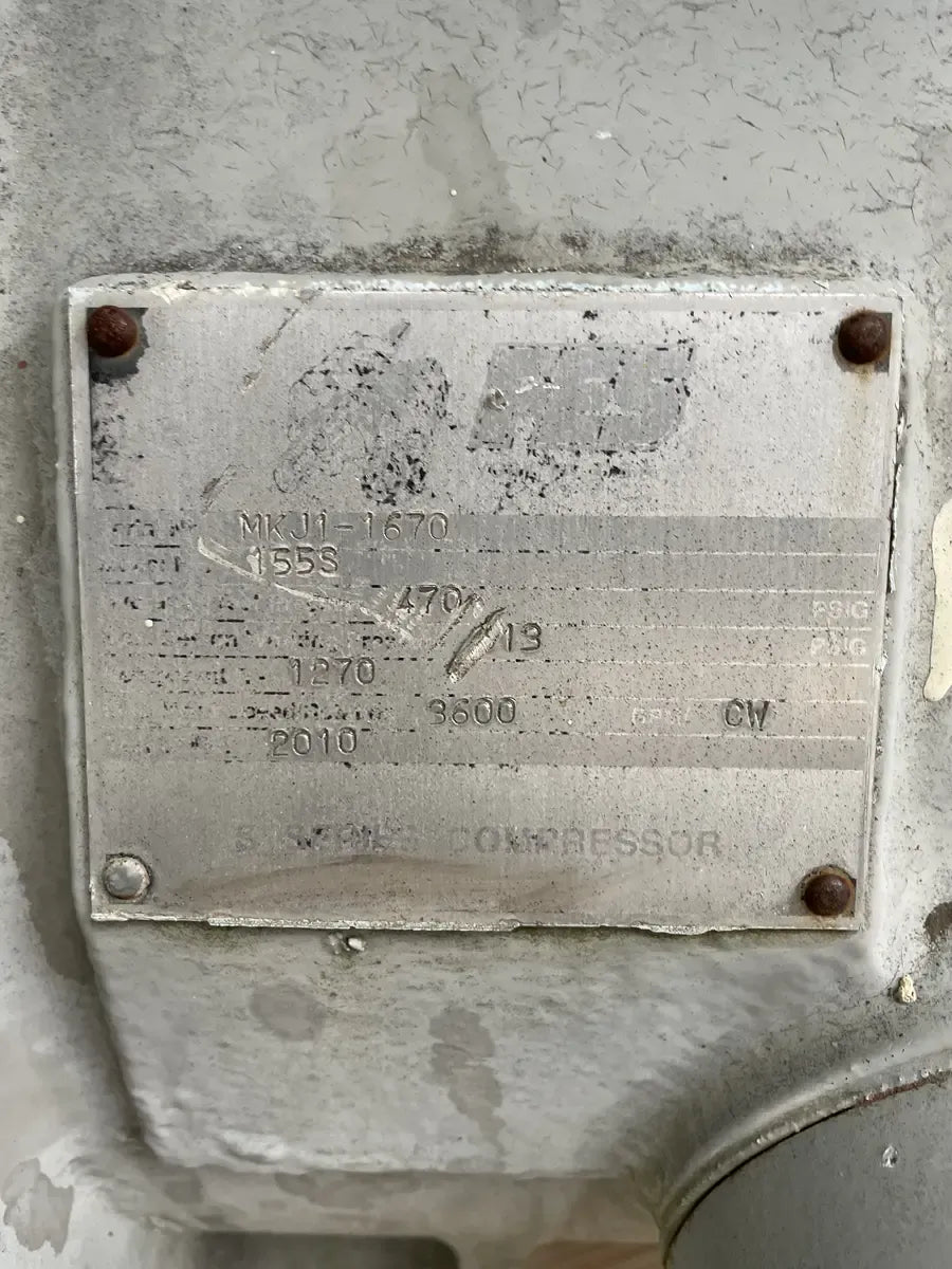 FUE RETIRADO DE UN PAQUETE DE COMPRESOR DE TORNILLO FES - N.° de serie: MKJ1-1670, Modelo: 155S, Presión de prueba hidráulica: 470 PSIG, Presión máxima de trabajo de diseño: 313 PSIG, Refrigerante: R-1270, RPM máximas: 3600, Año de fabricación: 2010.