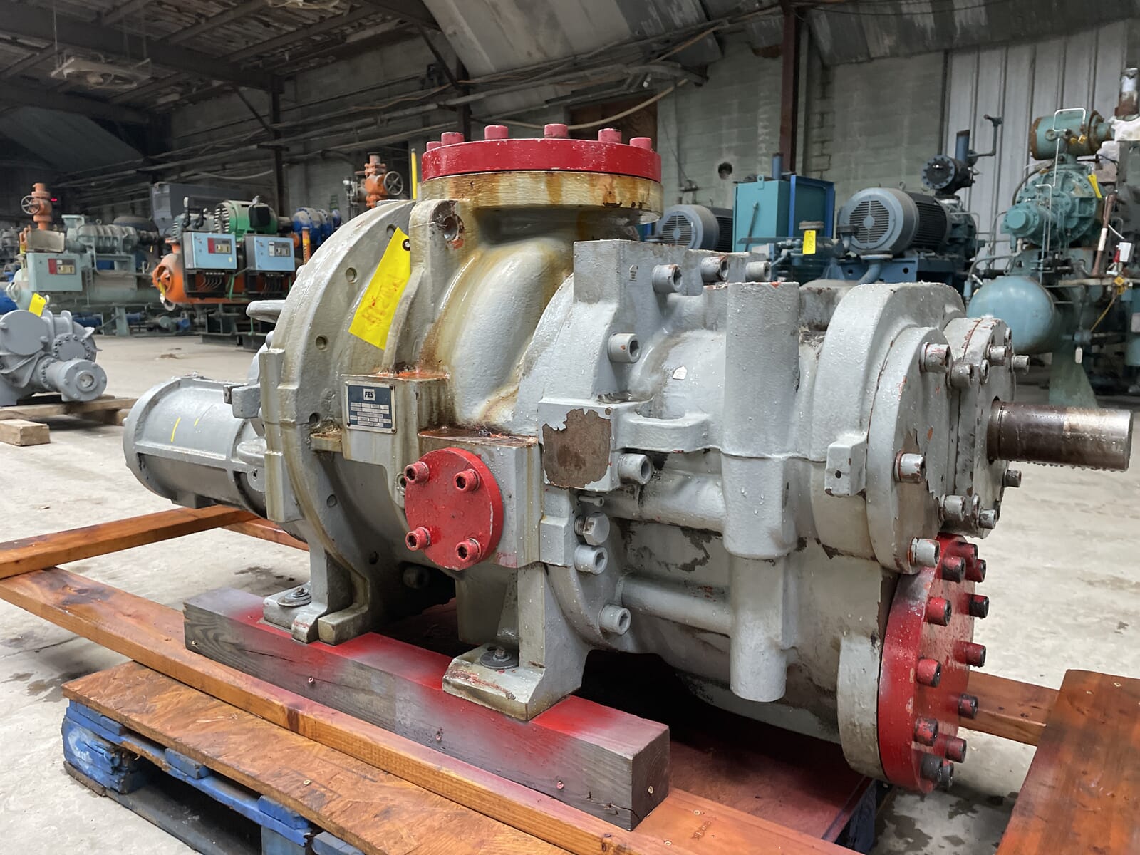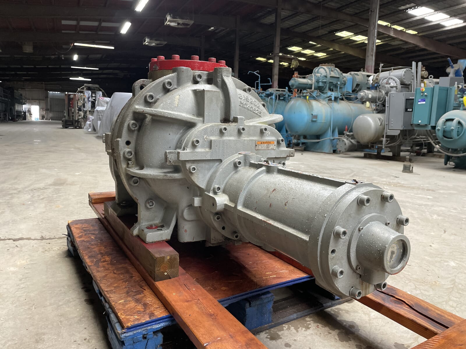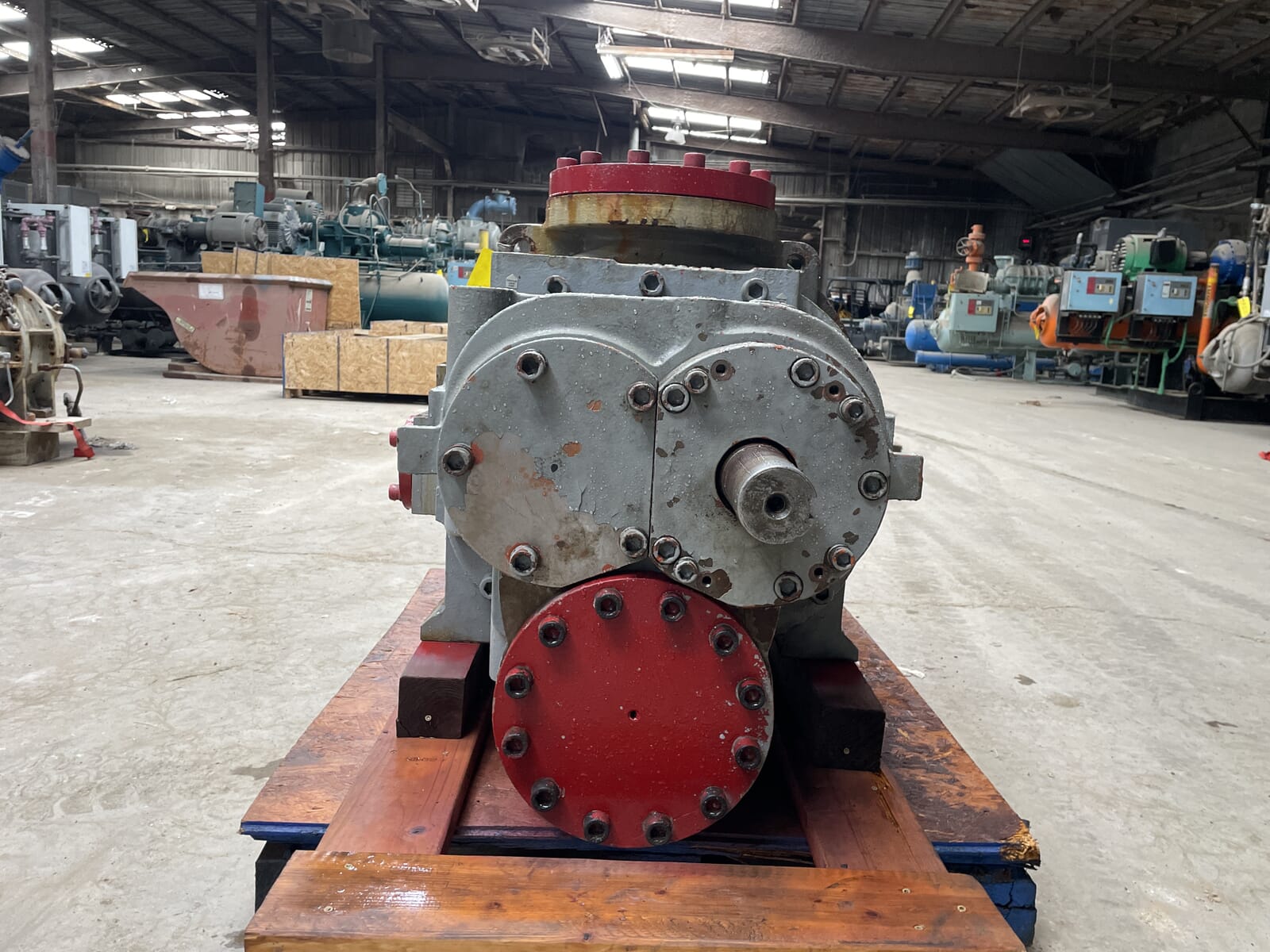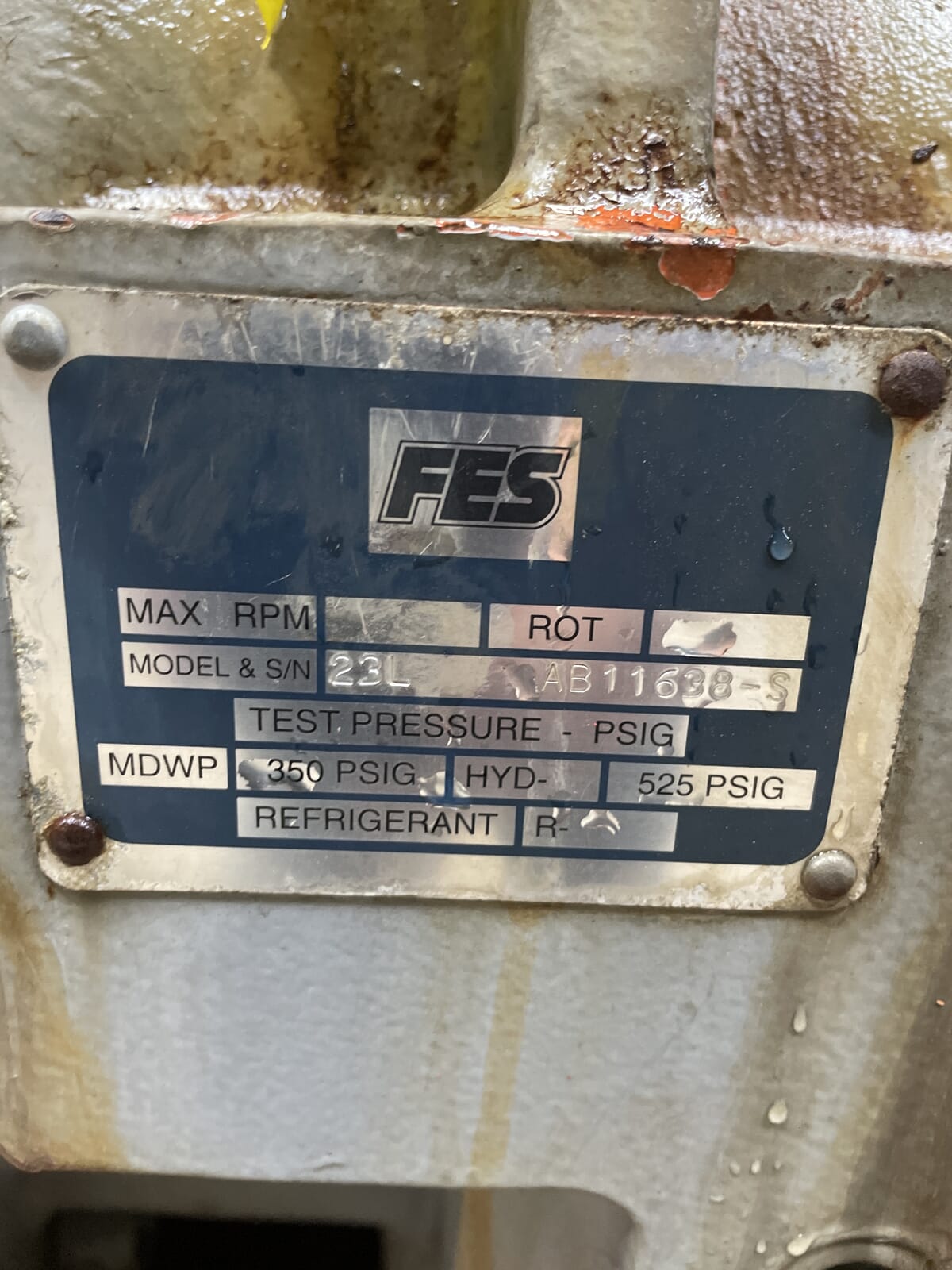 Compresor rotativo de tornillo desnudo FES. Modelo: 23L, Número de serie: AB11638-S. Presión de prueba: MDWP: 350 PSIG, HYD: 525 PSIG.