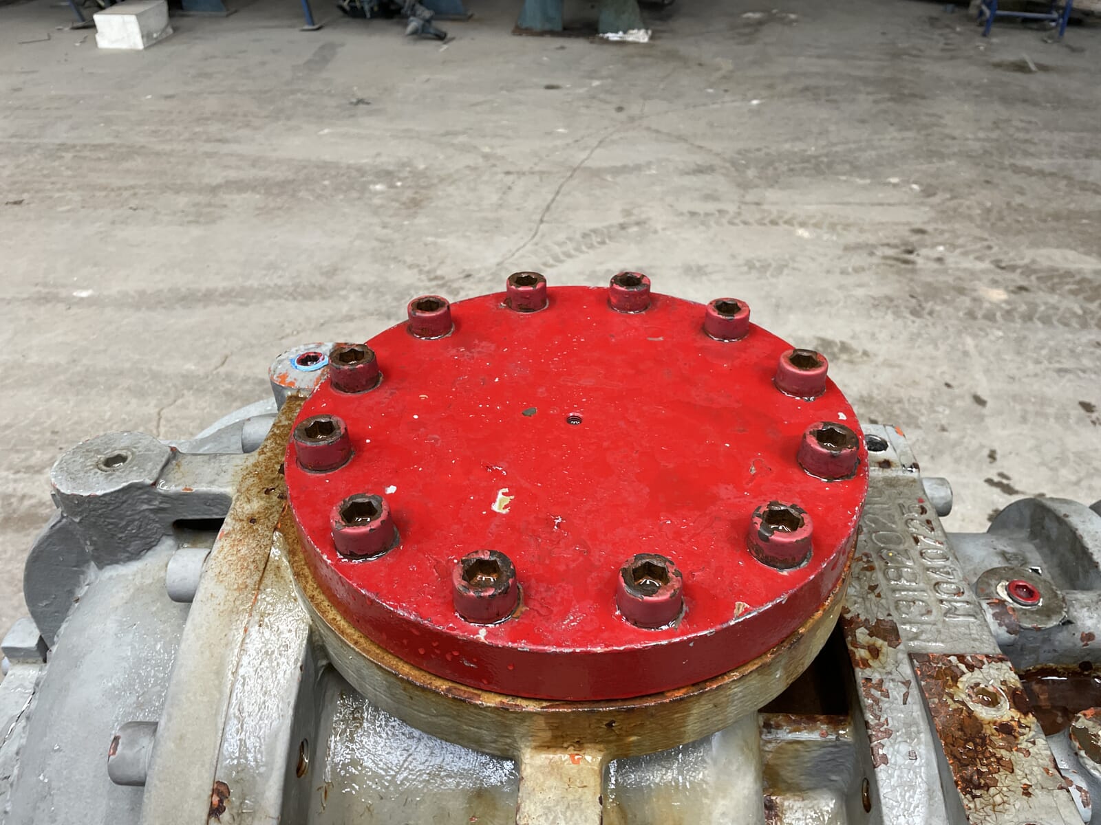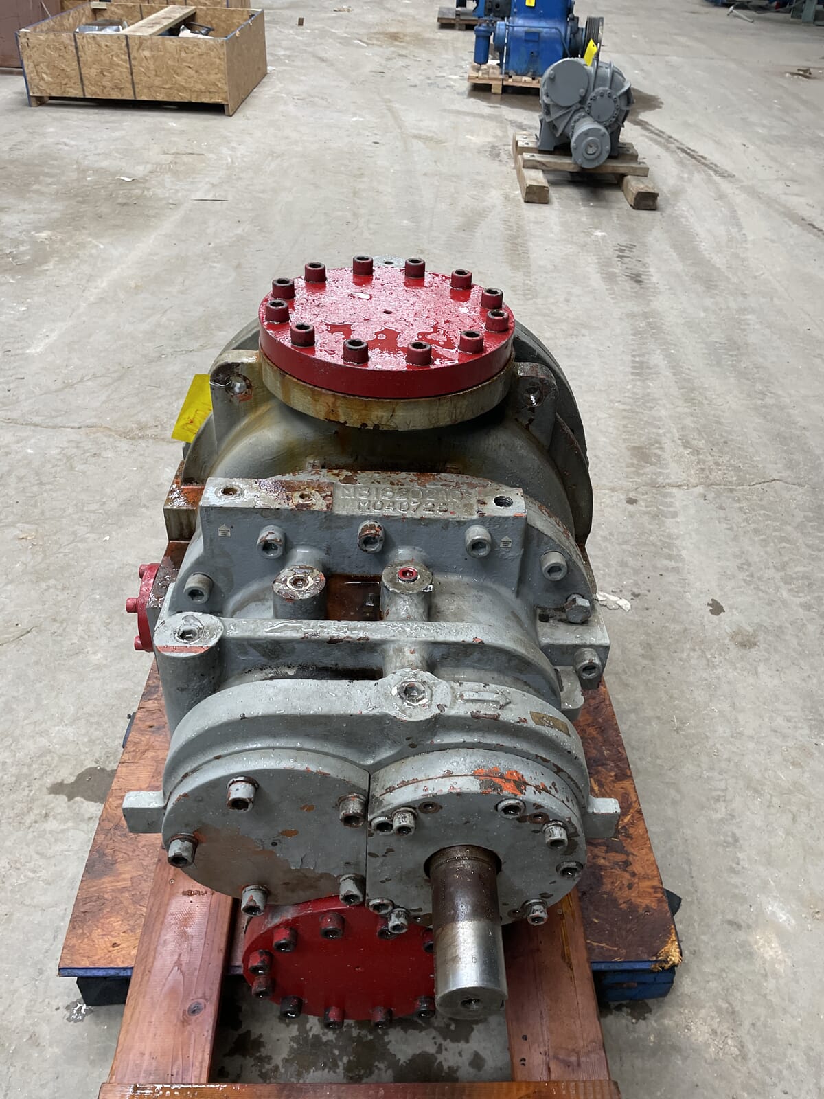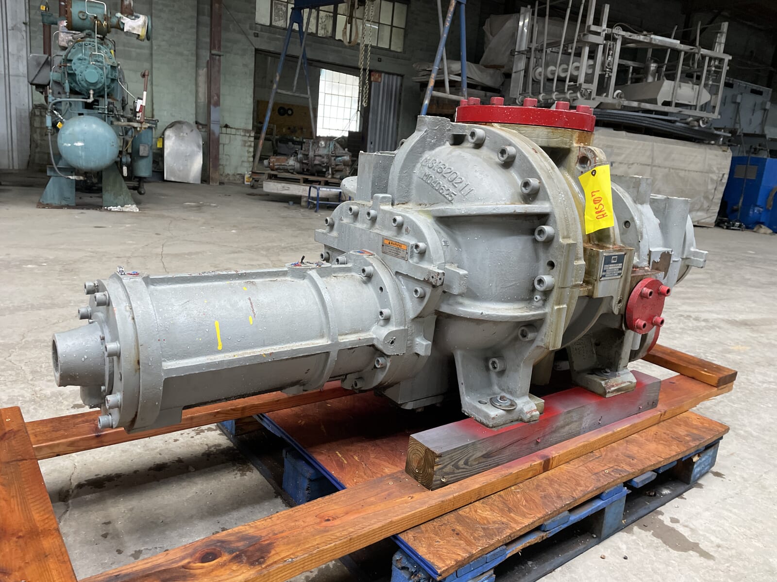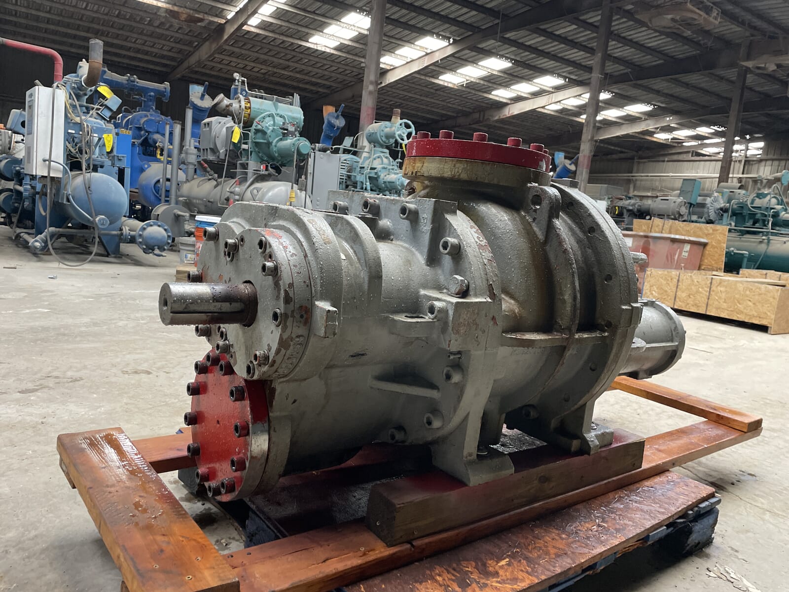 Compresor rotativo de tornillo desnudo FES. Modelo: 23L, Número de serie: AB11638-S. Presión de prueba: MDWP: 350 PSIG, HYD: 525 PSIG.