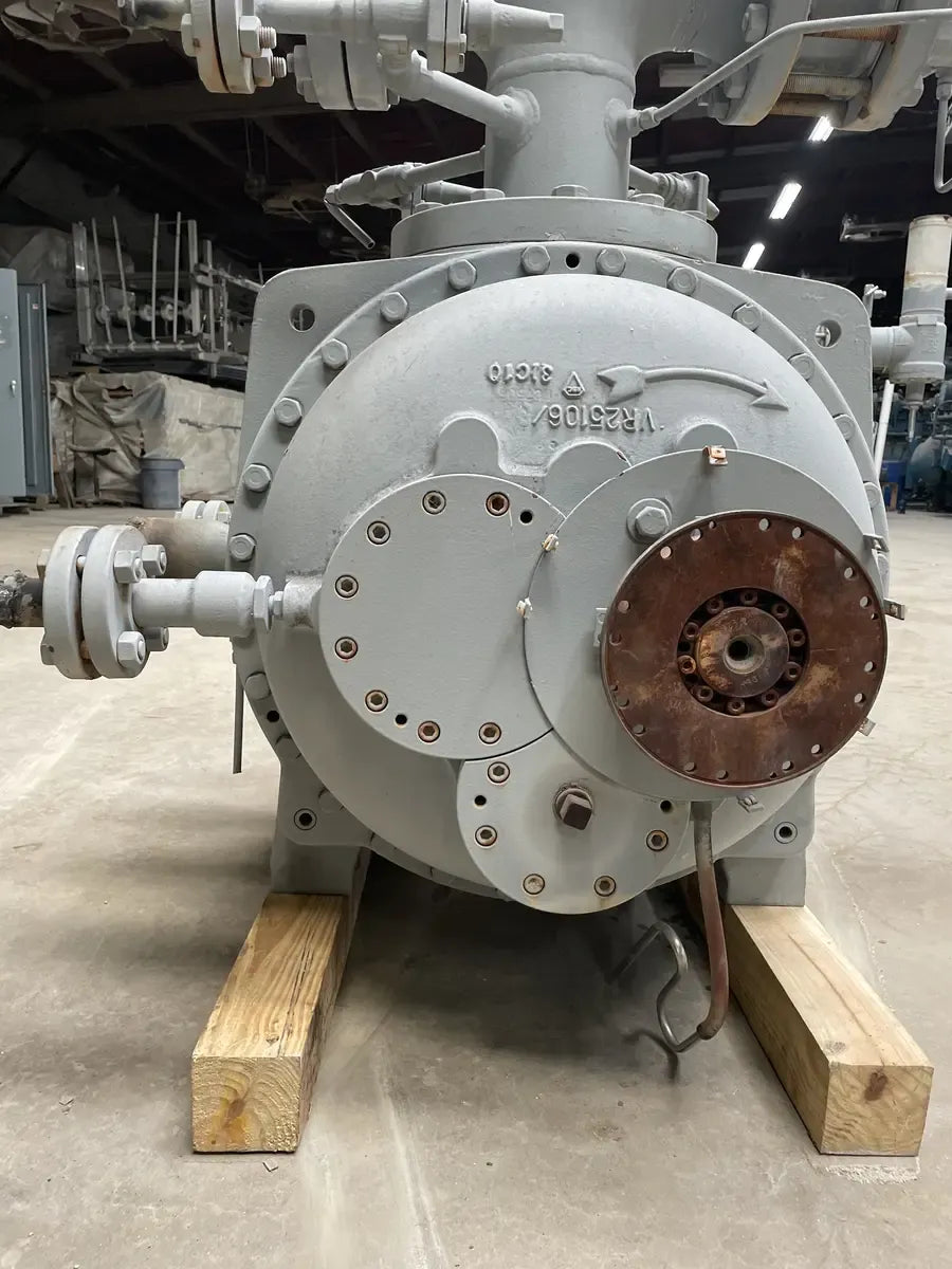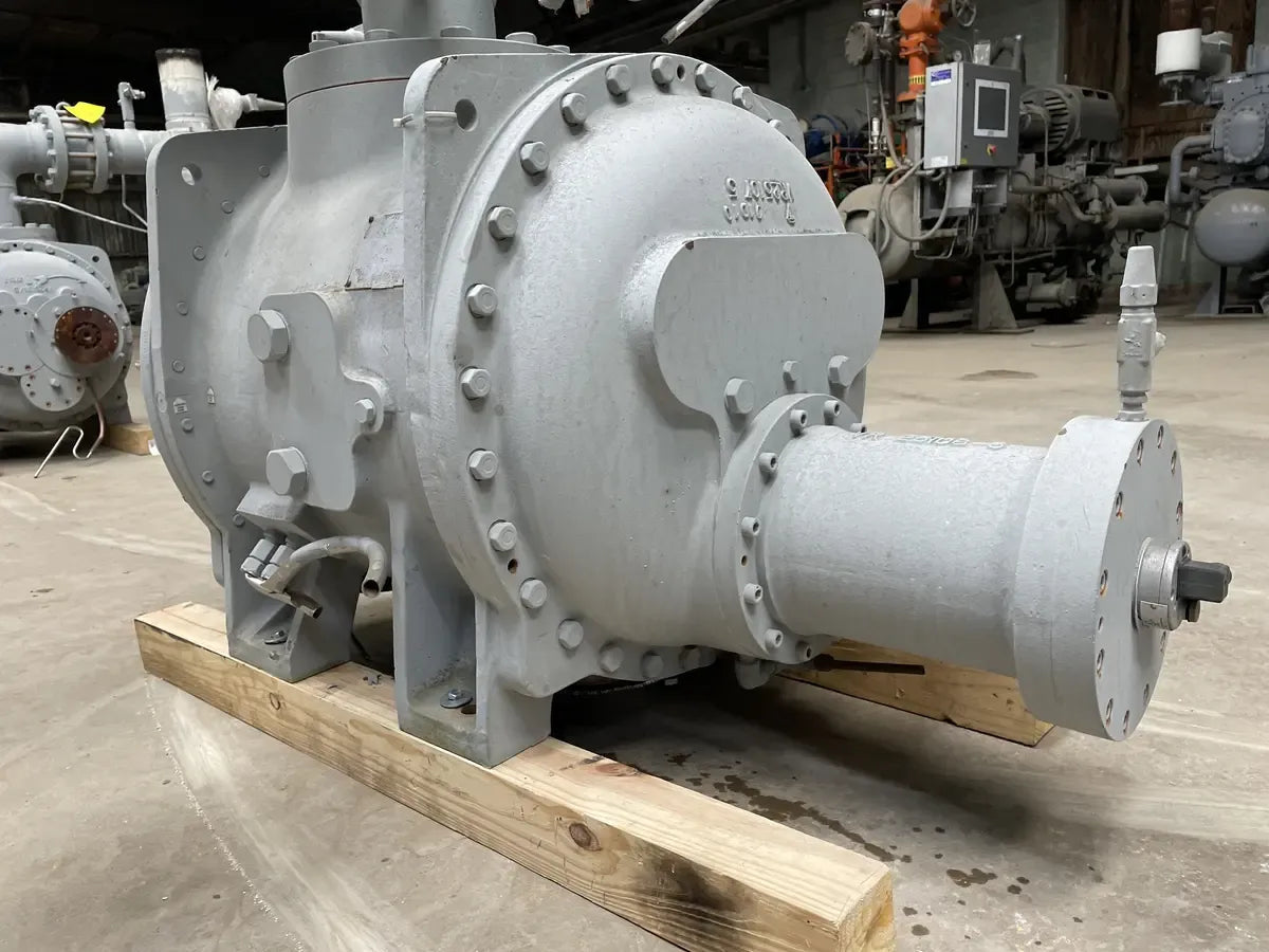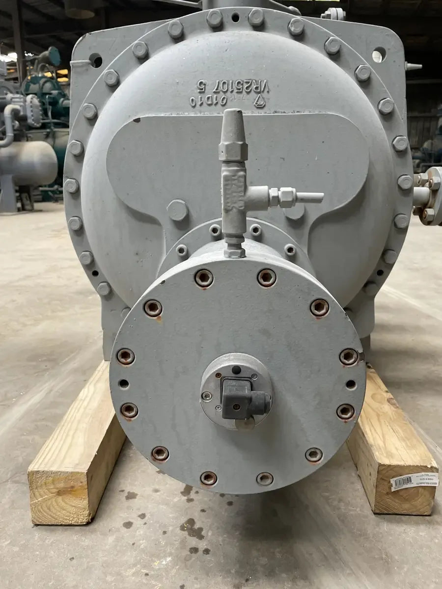 FUE RETIRADO DE UN PAQUETE DE COMPRESOR DE TORNILLO FES 385S - N.° de serie: MK6CS-1714, Modelo: 385S, Presión de prueba hidráulica: 470 PSIG, Presión máxima de trabajo de diseño: 313 PSIG, Refrigerante: R-1270, RPM máximas: 3600, RPM: CW, Año de fabricación: 2010.