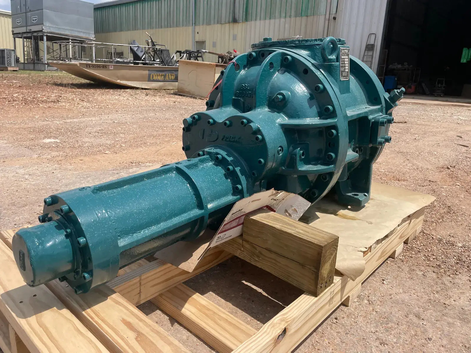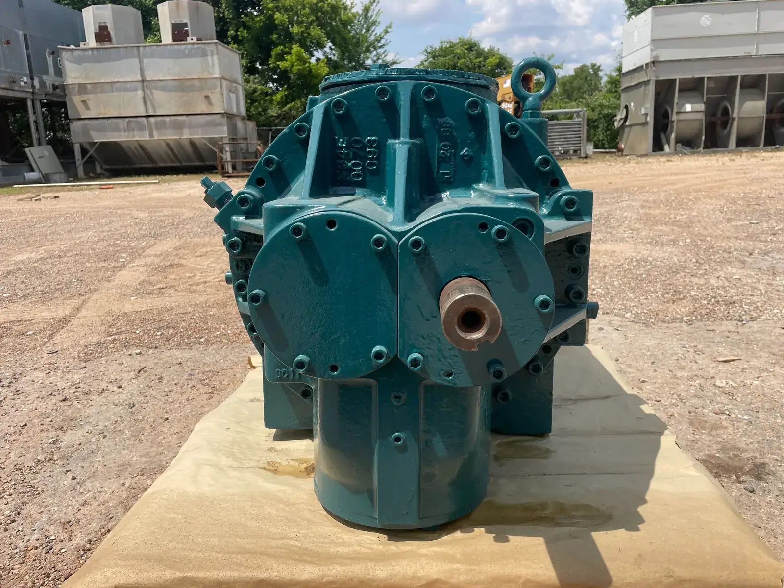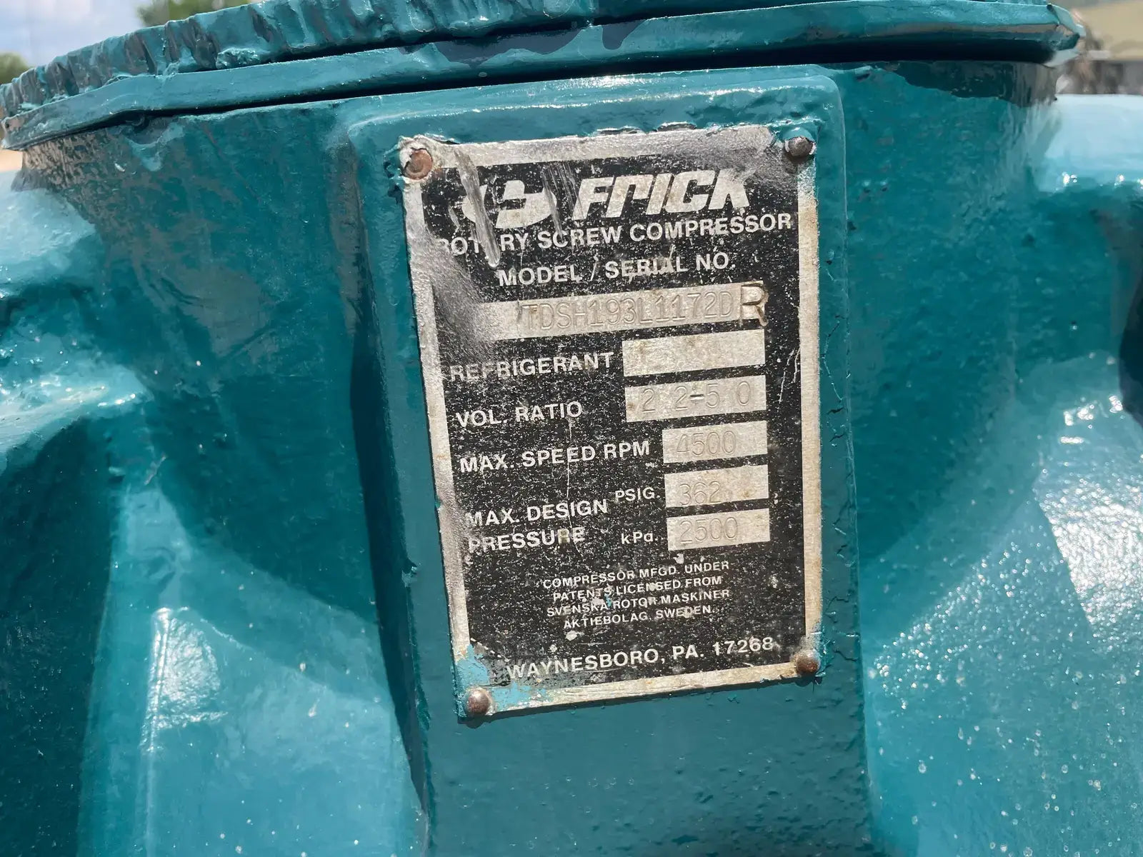 Compresor de tornillo desnudo Frick - Modelo/Serie: TDSH193L1172DR, Modelo: TDSH193L, Número de serie: 1172DR, Relación de volumen: 22-50, Velocidad máxima RPM: 4500, Diseño máximo - PSIG: 362, KPA: 2500. El tornillo desnudo gira a mano.