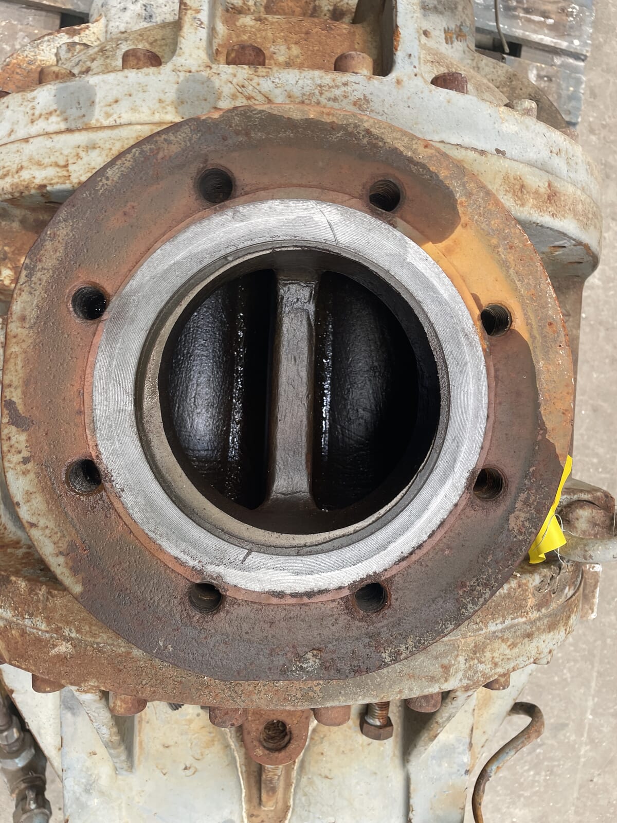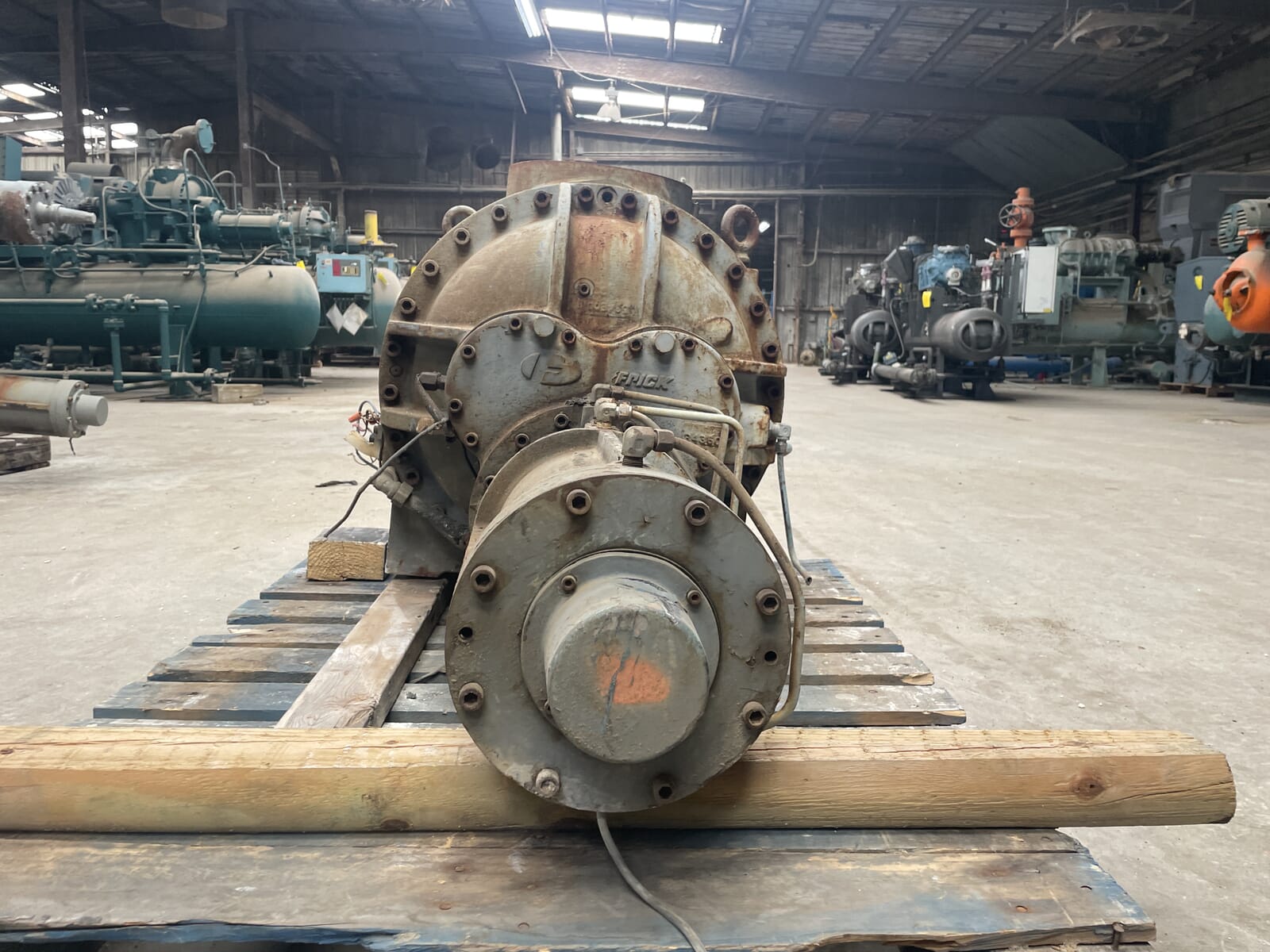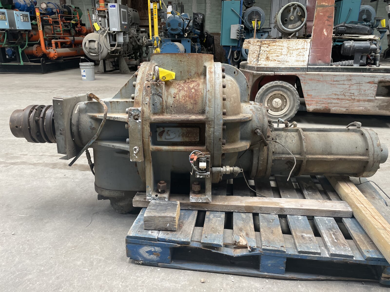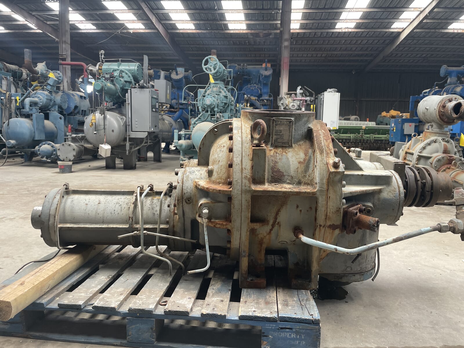 Compresor de tornillo desnudo Frick: Modelo: TDSH233S, Número de serie: 1311E. Relación de volumen: 2,2-5,0. Velocidad máxima (RPM): 4500. Presión máxima de diseño (PSIG): 362. Refrigerante anterior: NH3/R22.