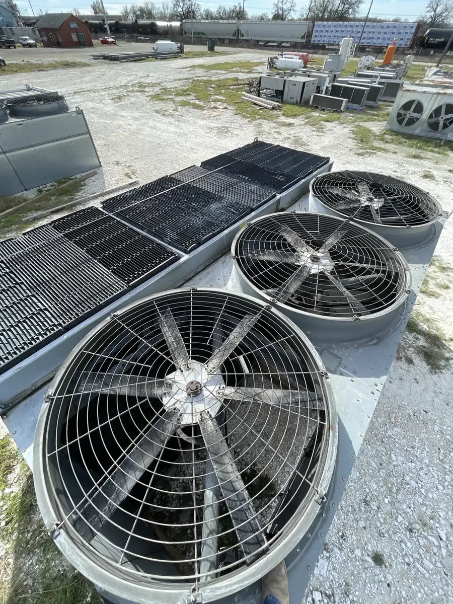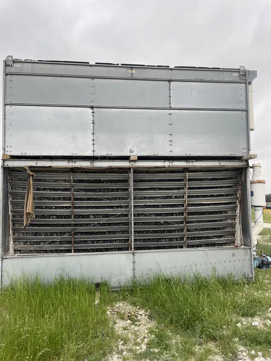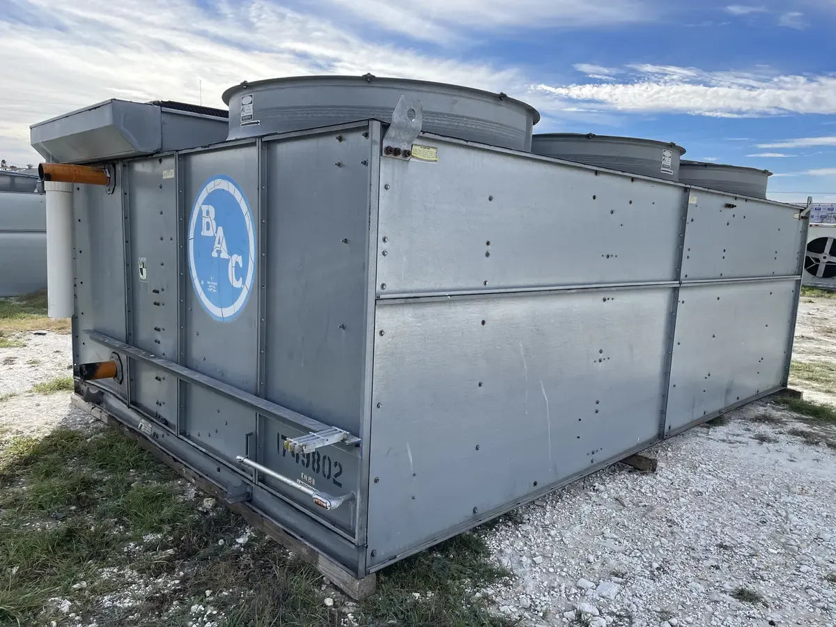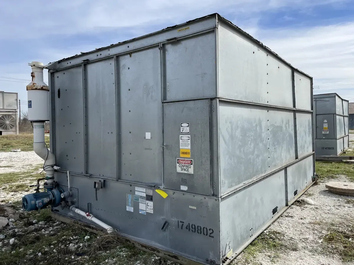 Condensador Evaporativo BAC CXV 466 (590 Toneladas Nominales, 3 Motores, 1 Unidad de Torre). Número de serie: U071749804. Este paquete contiene 1 unidad de torre. 590 Toneladas Nominales. 466 Toneladas de Amoníaco. Anteriormente funcionó con amoníaco (R717 | NH3). Se incluyen motores de 3 HP.