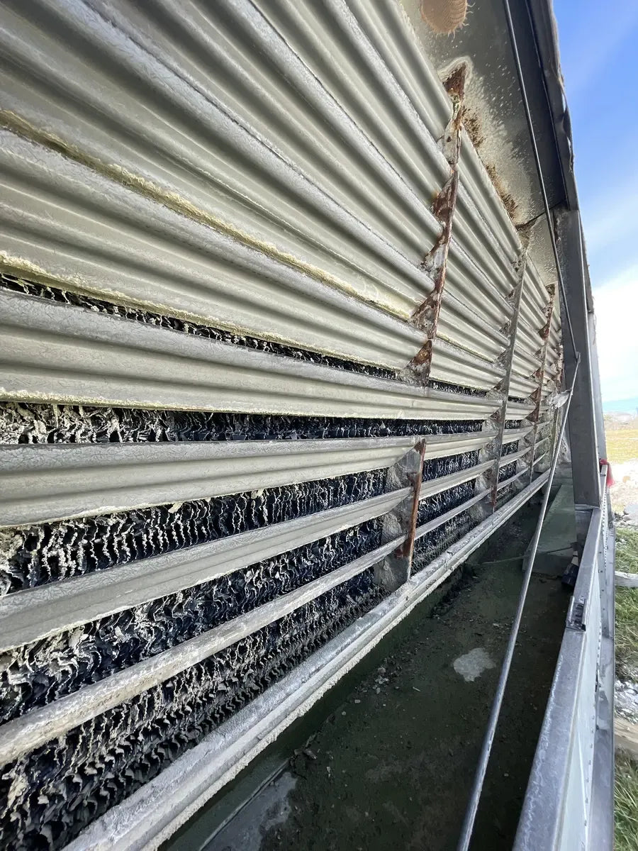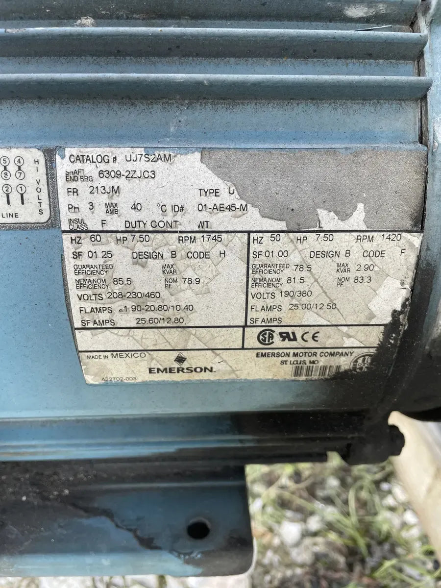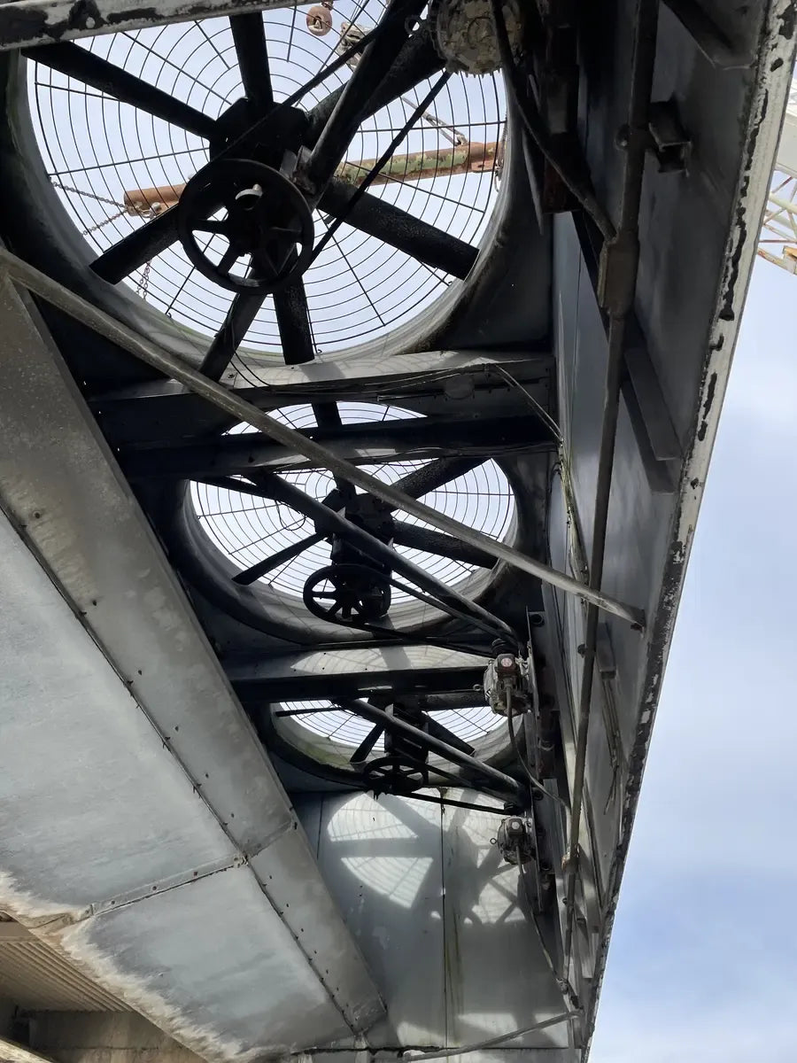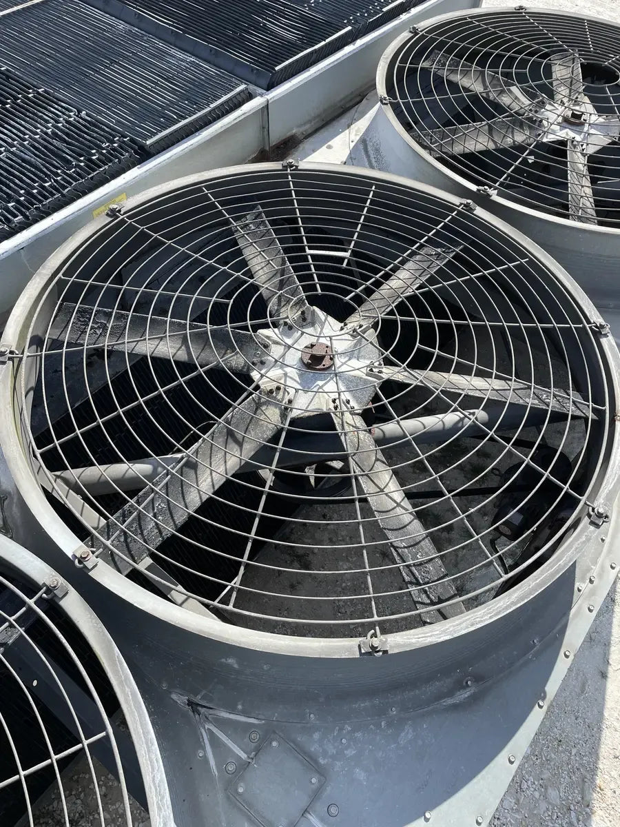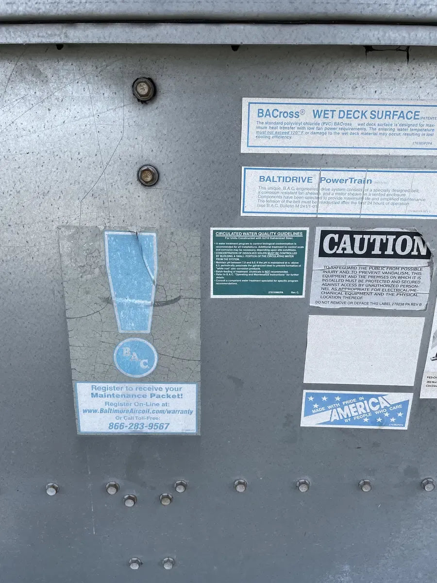 Condensador Evaporativo BAC CXV 466 (590 Toneladas Nominales, 3 Motores, 1 Unidad de Torre). Número de serie: U071749804. Este paquete contiene 1 unidad de torre. 590 Toneladas Nominales. 466 Toneladas de Amoníaco. Anteriormente funcionó con amoníaco (R717 | NH3). Se incluyen motores de 3 HP.