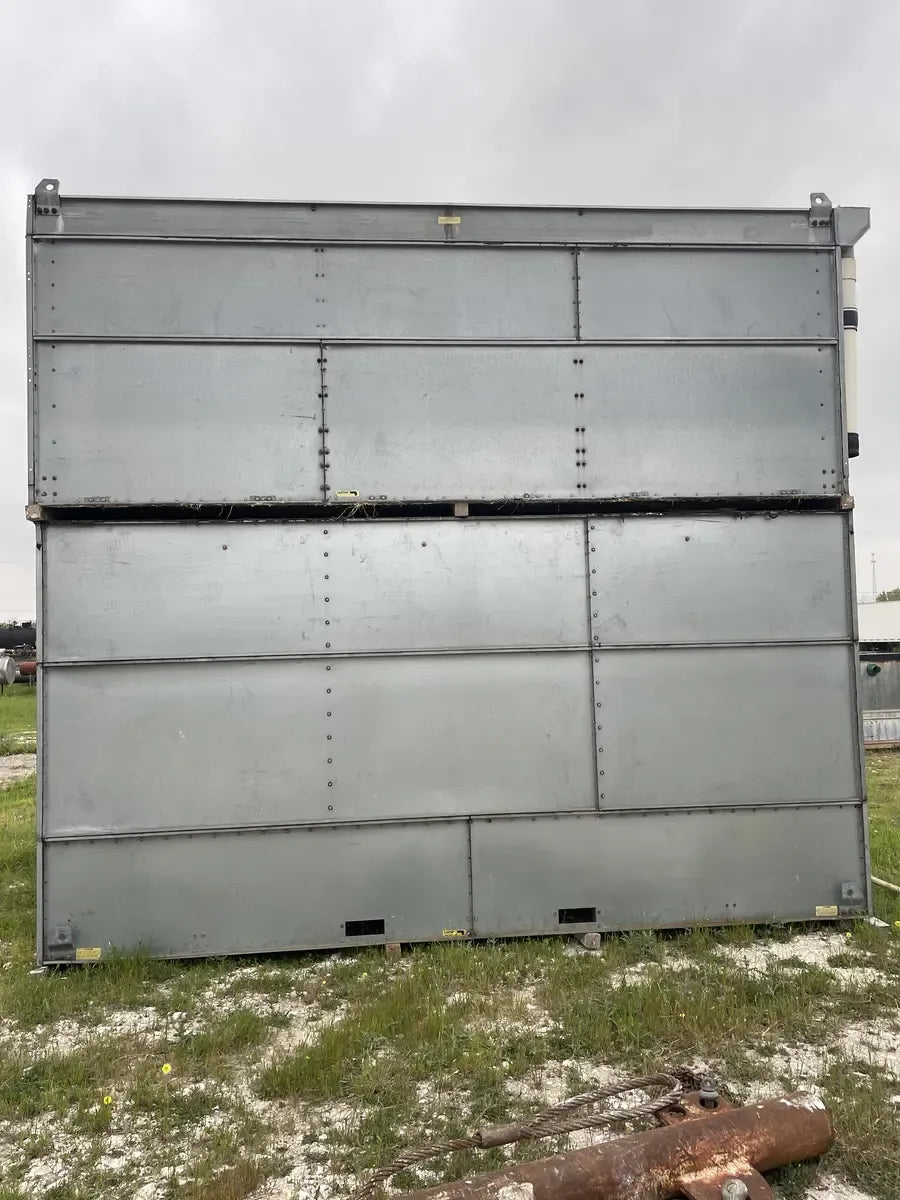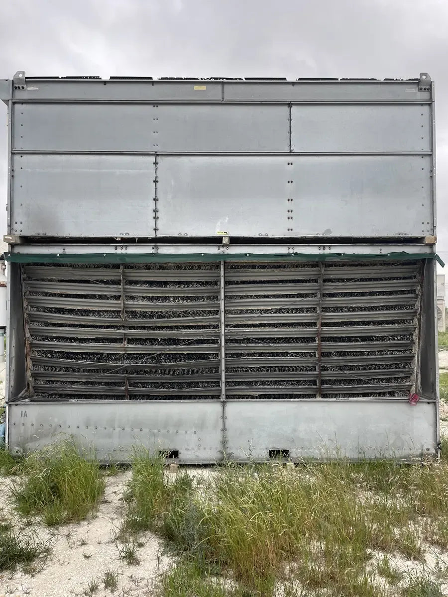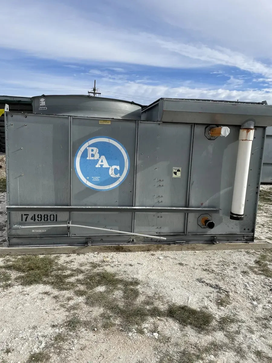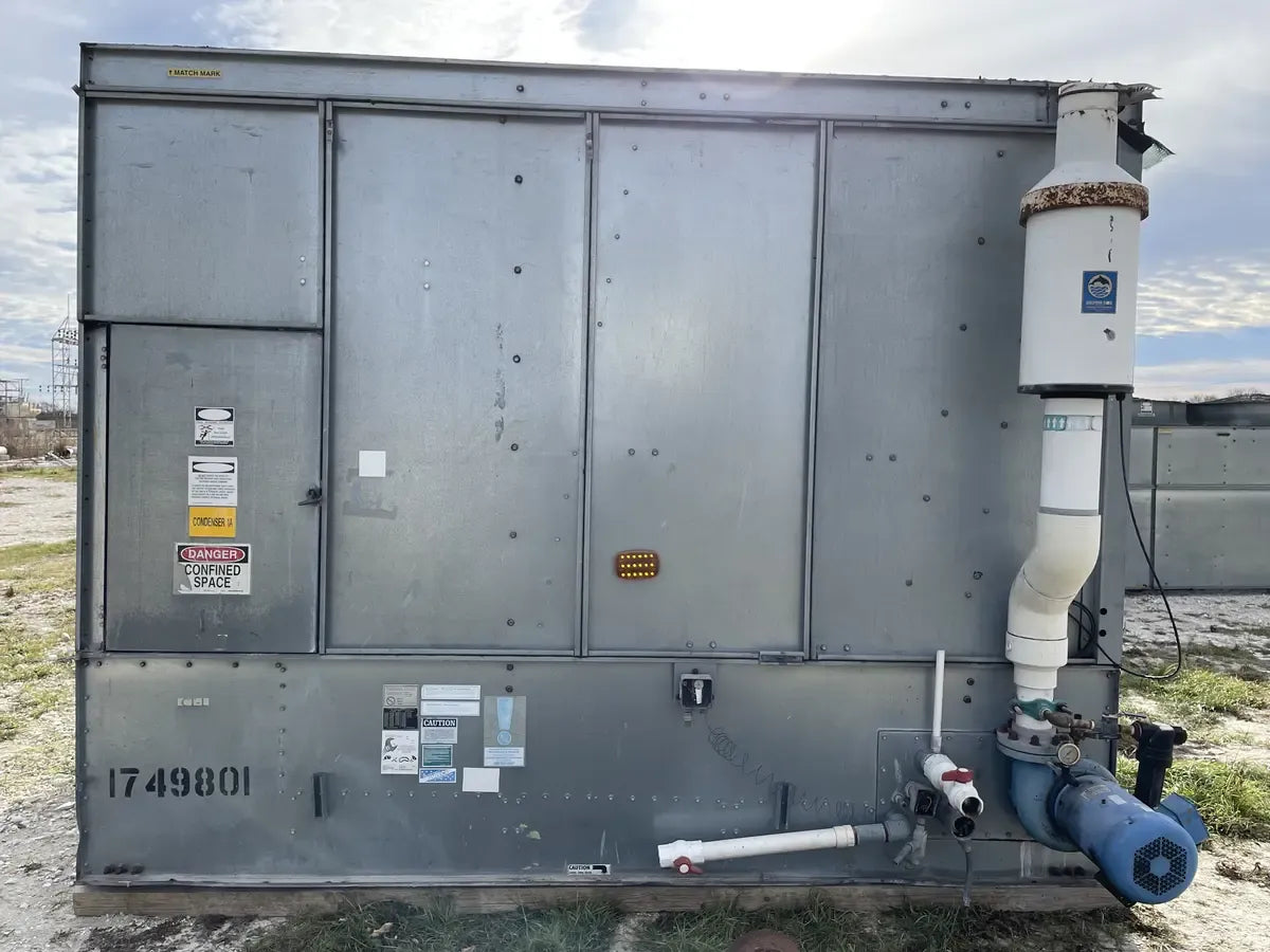 Condensador Evaporativo BAC CXV 466 (590 Toneladas Nominales, 3 Motores, 1 Unidad de Torre). Número de serie: U07174980. Este paquete contiene 1 unidad de torre. 590 Toneladas Nominales. 466 Toneladas de Amoníaco. Anteriormente funcionó con amoníaco (R717 | NH3). Se incluyen motores de 3 HP.