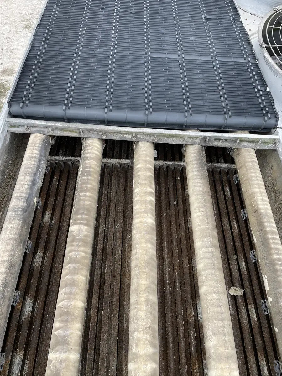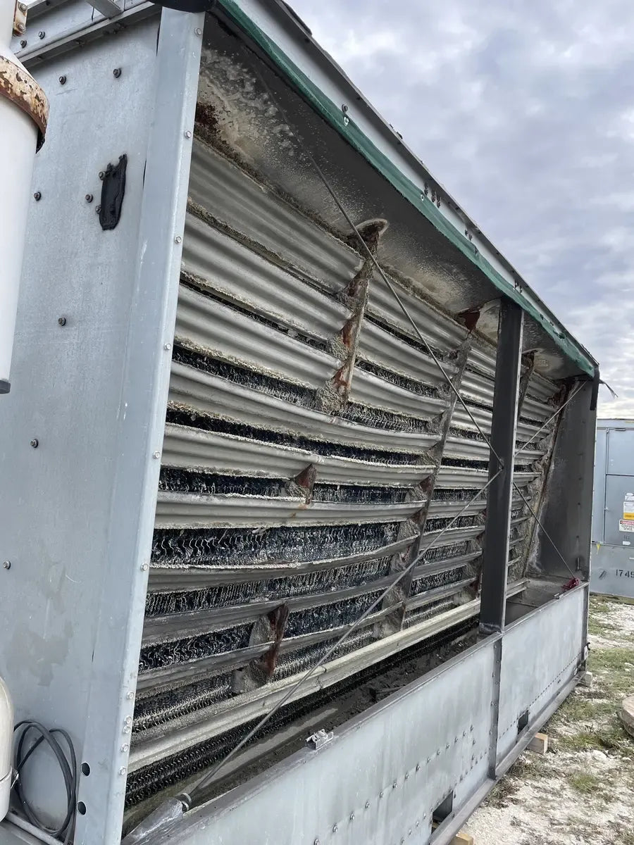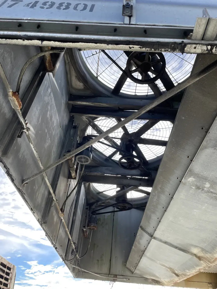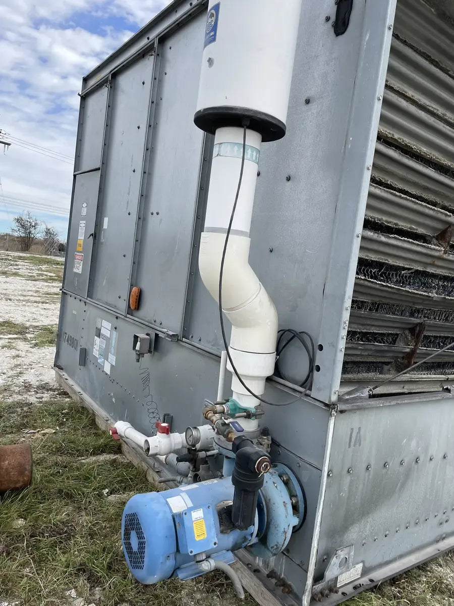 Condensador Evaporativo BAC CXV 466 (590 Toneladas Nominales, 3 Motores, 1 Unidad de Torre). Número de serie: U07174980. Este paquete contiene 1 unidad de torre. 590 Toneladas Nominales. 466 Toneladas de Amoníaco. Anteriormente funcionó con amoníaco (R717 | NH3). Se incluyen motores de 3 HP.