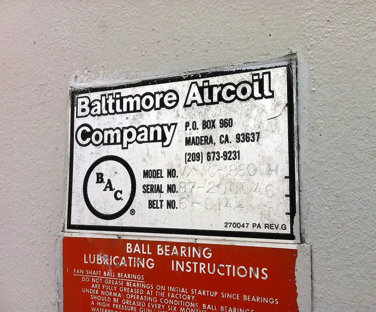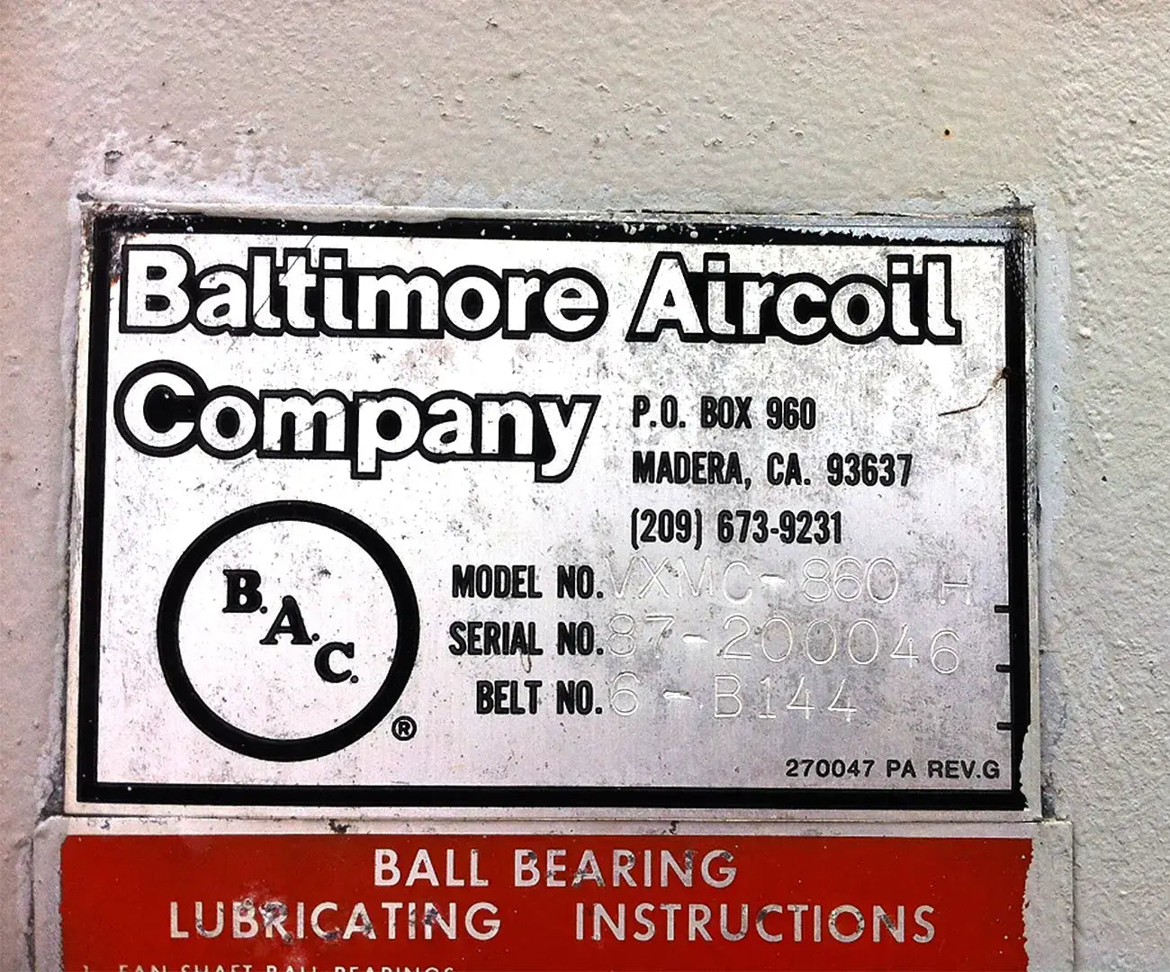 Condensador evaporativo BAC VXMC-860-H (paquete de 860 toneladas nominales, motor de 1-5 HP, 2 unidades de torre)