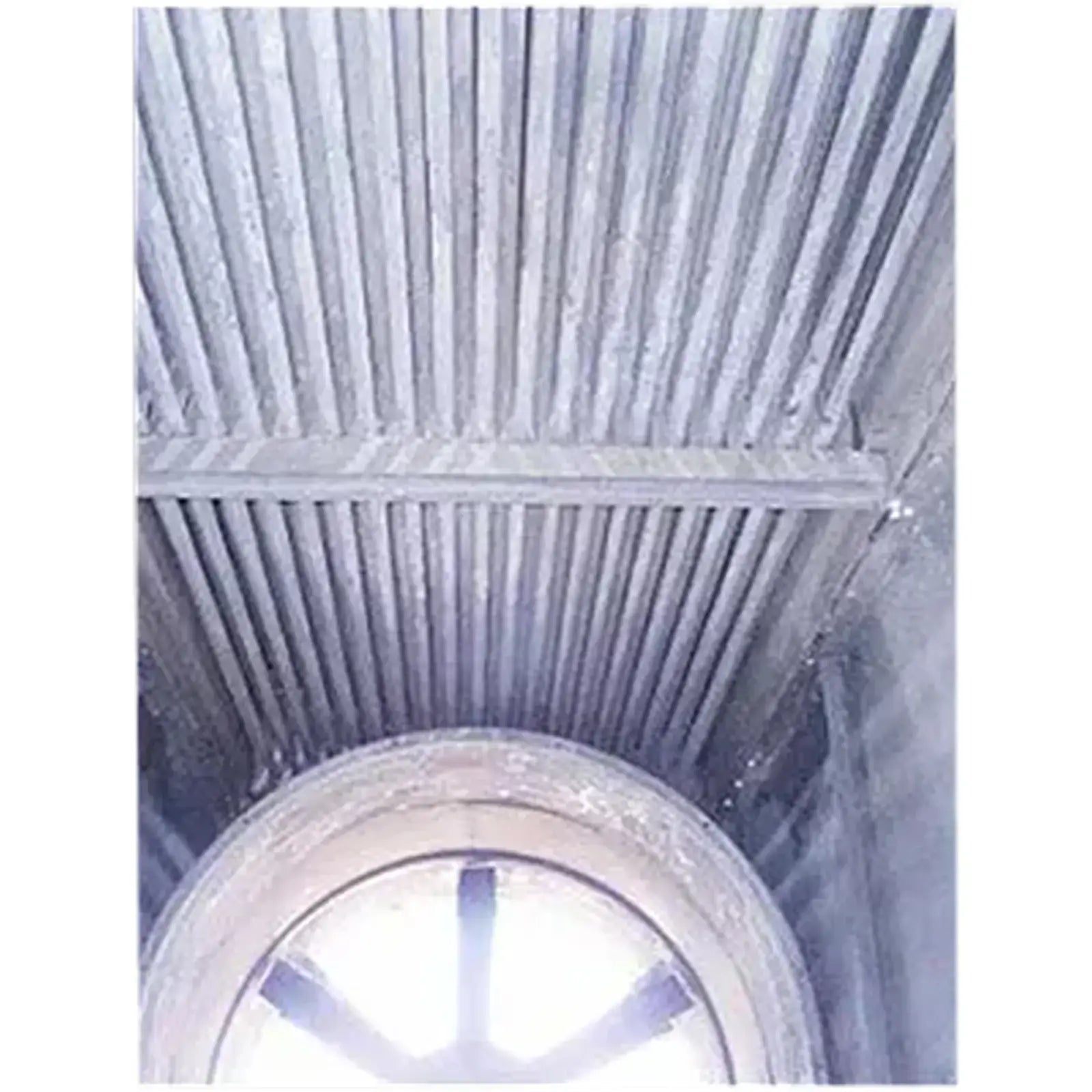 Condensador evaporativo Baltimore Aircoil Company - 150 toneladas. Modelo: VXMC150. Capacidad nominal nominal: 150 toneladas usando R-22 a 105°F de condensación, 40°F de succión y 78°F de bulbo húmedo. 106 toneladas usando R-717 a 96,3ºF de condensación, 20ºF de succión y 78ºF de bulbo húmedo. La serie VXMC presenta un diseño de ventilador axial y tiro forzado. Diámetro de boca de acceso: 1 pie 10 pulg. Número de ventiladores: 2. Diámetro del ventilador: 4 pies 7 pulg. Motor del ventilador: (1) 7-1/2 hp. Dimensiones totales: 14 pies 7 pulgadas de largo x 5 pies 8 pulgadas de ancho x 11 pies 4 pulgadas de alto (ACN200-81).
