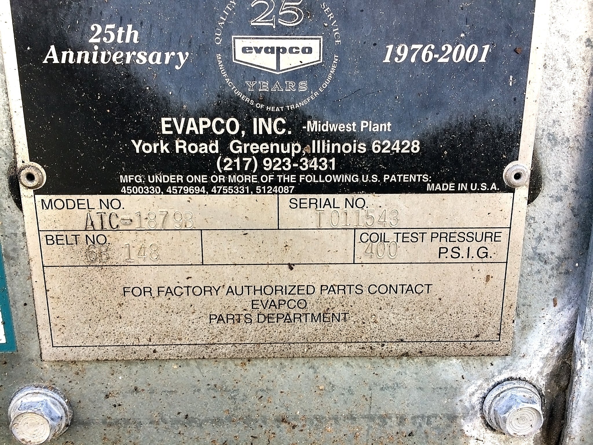 Evapco ATC-1879B Condensador evaporativo (paquete de 1879 toneladas nominales, motor de 1-15 HP, 2 unidades de torre)