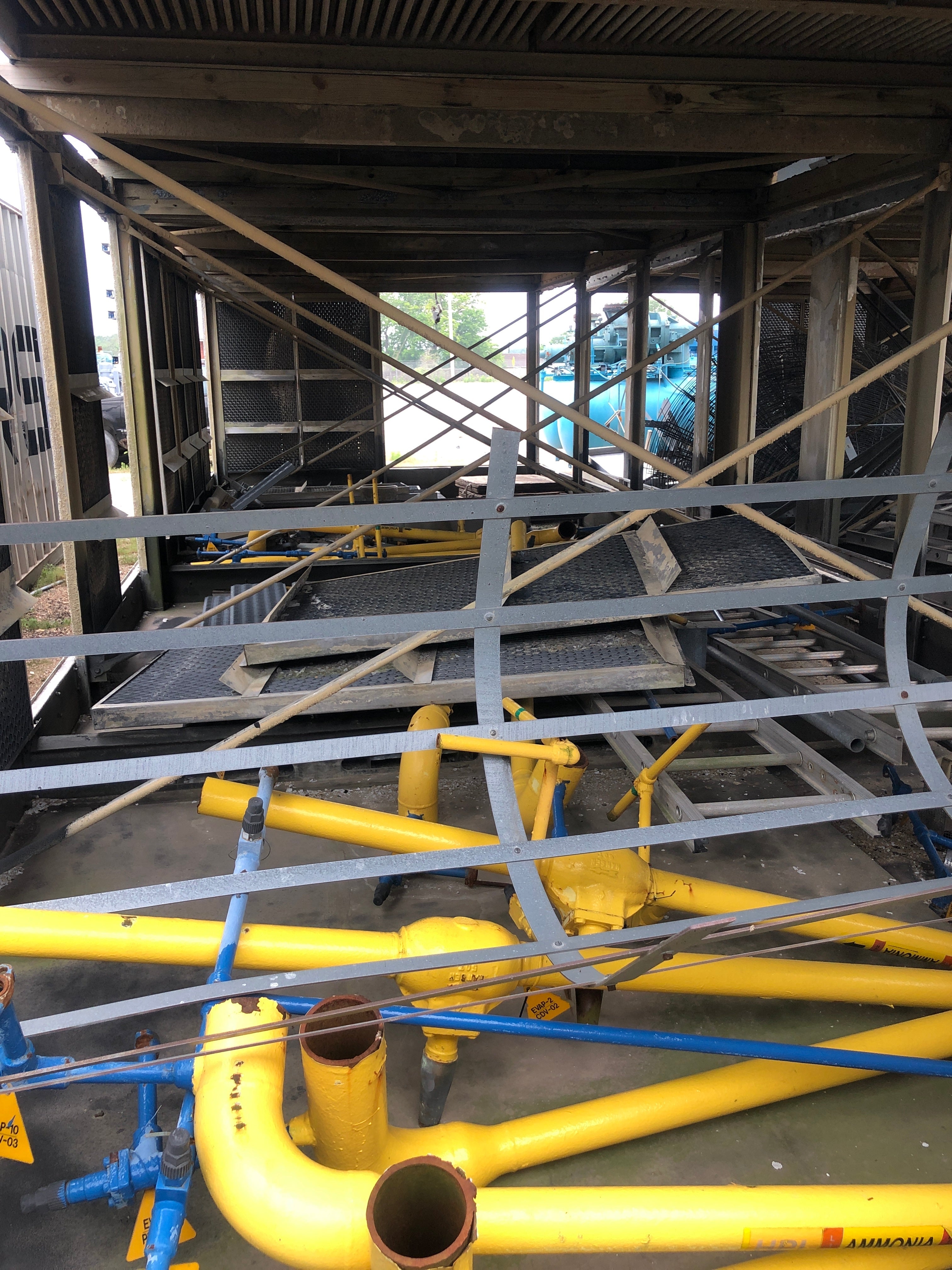 Año de fabricación: 2001 Número de unidades en paquete: 2 Toneladas nominales (por unidad): 725 TR* Toneladas de amoníaco (por unidad): 514,75 TR* Volumen de bobina (por unidad): 101 ft3 CFM (por unidad): 113150 CFM R- 717 (amoníaco) o R22 (freón). Última ejecución con amoníaco. Presión de diseño: PSIG Requisitos de la bomba (por unidad): 7,5 HP 1200 GPM ¿Bomba incluida? No, se puede comprar por separado Detalles del ventilador (por unidad): 25 HP Dimensiones superiores (por unidad): 18,2 largo x 12'1 ancho x 9'8 alto Peso superior (por unidad): 22,900 LBS Dimensiones inferiores (por unidad): 18,2 L x 12'1 W x 8'3 H Peso inferior (por unidad): 4,020 LBS *Toneladas en condiciones estándar: 96.3°F de condensación, 20°F de succión y 78°F de bulbo húmedo. Se puede vender una unidad de torre de un grupo a pedido. por una cuota. Solicite según sea necesario.