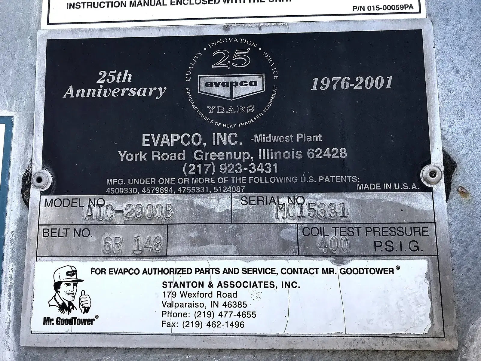 Condensador evaporativo Evapco ATC-2900B (paquete de 2900 toneladas nominales, motor de 1-25 HP, 4 unidades de torre)