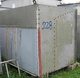 (2) Condensador evaporativo Frick. Dimensiones totales: 10 pies 10 pulgadas de largo x 4 pies 10 pulgadas de ancho x 5 pies 10 pulgadas de alto y 12 pies 2 pulgadas de largo x 4 pies 10 pulgadas de ancho x 5 pies 7 pulgadas .