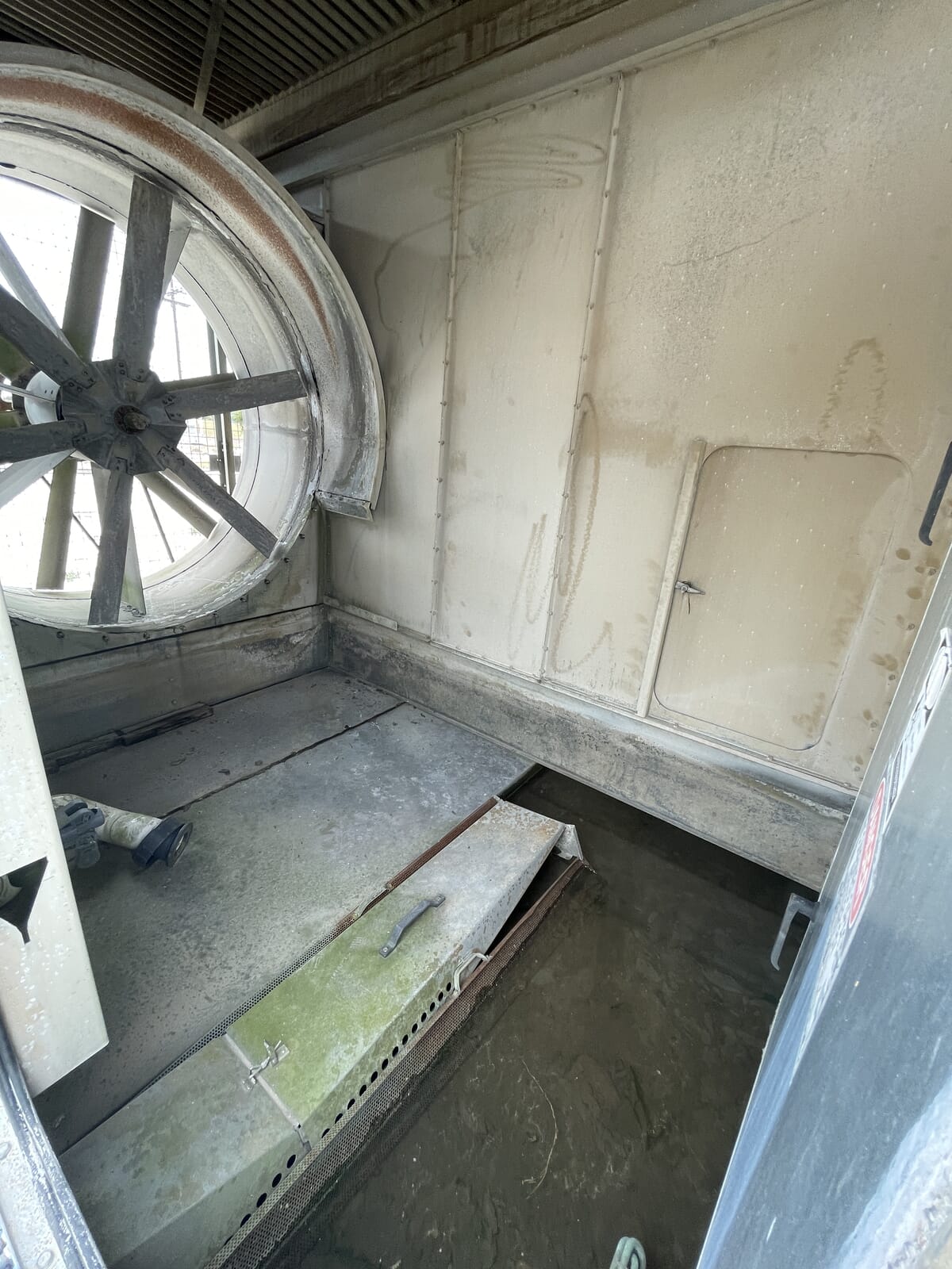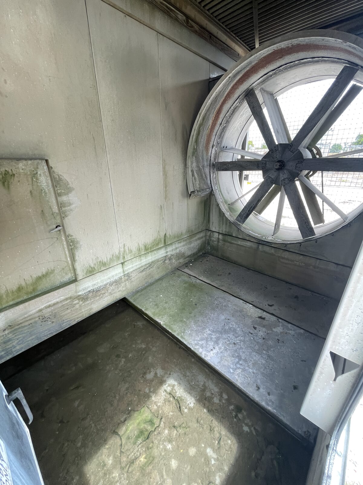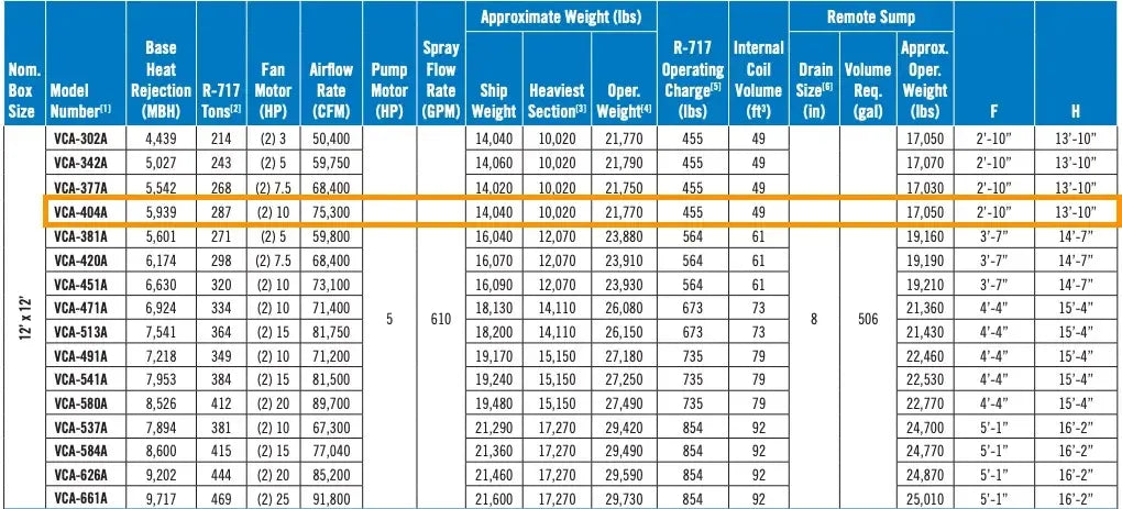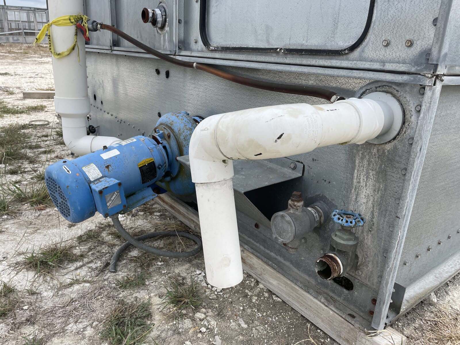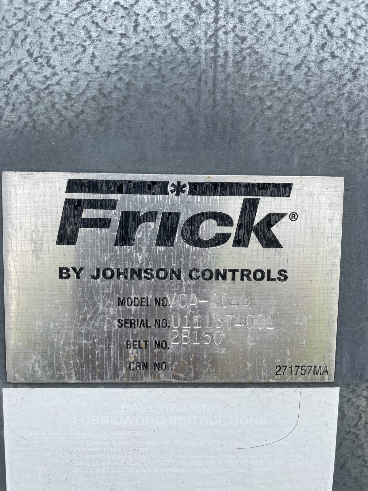 Condensador Evaporativo Frick VCA-404A (404 Toneladas Nominales, 2 Motores de 10 HP, 1 Unidad de Torre). Número de serie: U111374001. Este paquete contiene 1 unidad de torre. 404 Toneladas Nominales. 287 toneladas de amoníaco. Anteriormente funcionó con amoníaco (R717 | NH3). Se incluyen motores de 2 a 10 HP.