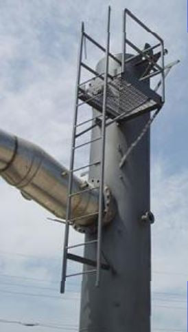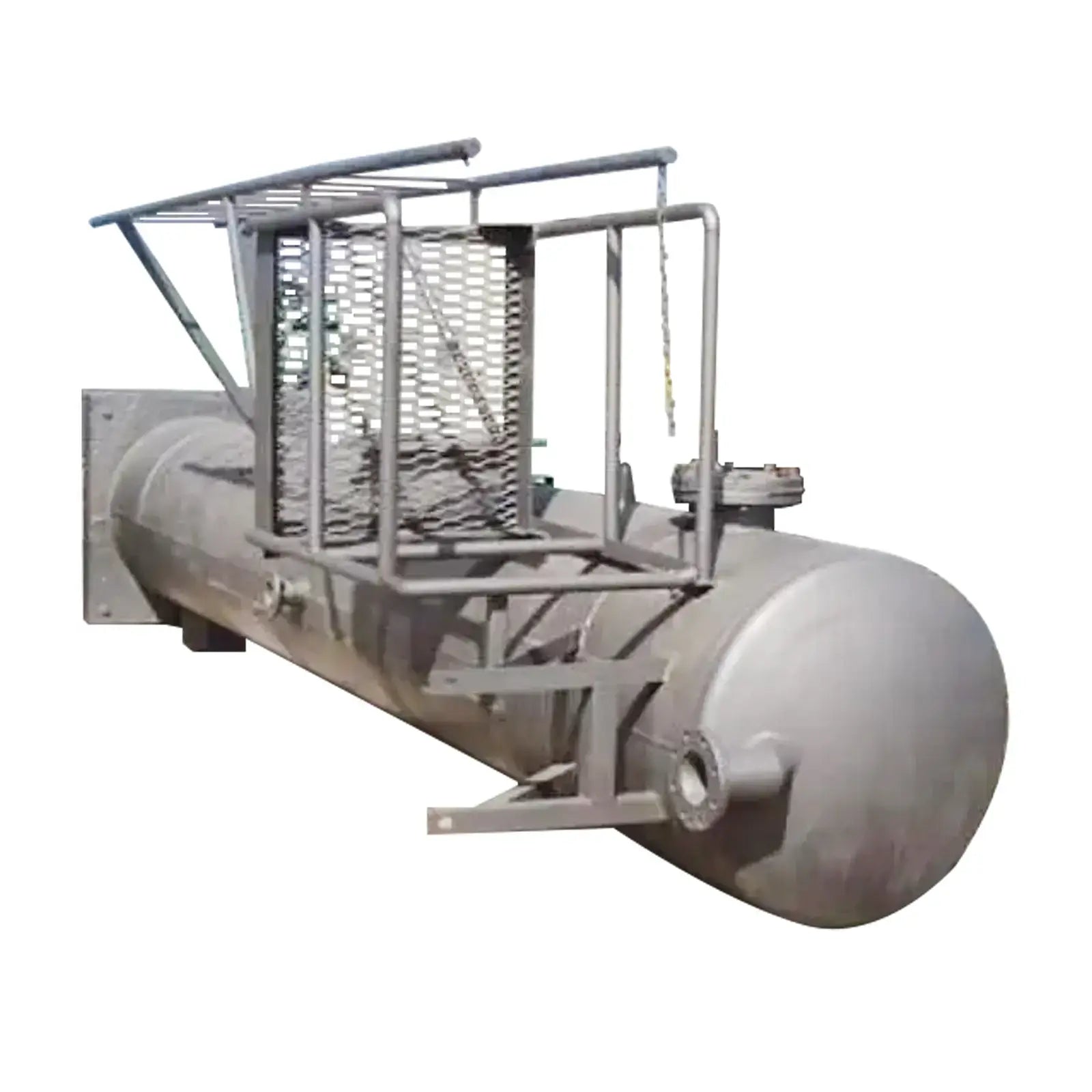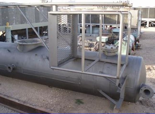 Condensador vertical de Croll Reynolds Company: 960 galones. S/N: 38312. Tipo: Condensador Spec.36B. Dimensiones interiores: 3 pies de diámetro. x 18 pies 4 pulgadas. H. Construcción Mat'l: acero al carbono. Dimensiones de la escalera: 12 pies 2 pulgadas de alto, número de escalones: 9, distancia entre escalones: 1 pie. Dimensiones de la plataforma: 2 pies 10 pulgadas de largo x 2 pies 6 pulgadas de ancho, distancia desde el suelo: 17 pies. Entradas: (1) 6 pulg. de diámetro. puerto bridado, (1) 8 pulg. de diámetro. puerto bridado, (1) 4 pulg. de diámetro. puerto bridado, (2) 1 pulg. de diámetro. Conexiones FNPT, (1) 3 pulg. de diámetro. Puerto bridado, (1) 3/4 pulg. de diámetro. FNPT, (1) 1 pie 8-1/2 pulg. de diámetro. puerto embridado. Salidas: (1) 9 pulg. de diámetro. puerto bridado, (1) 1 pulg. de diámetro. FNPT. Dimensiones totales: 6 pies 5 pulgadas de largo x 6 pies 3 pulgadas de ancho x 22 pies de alto.