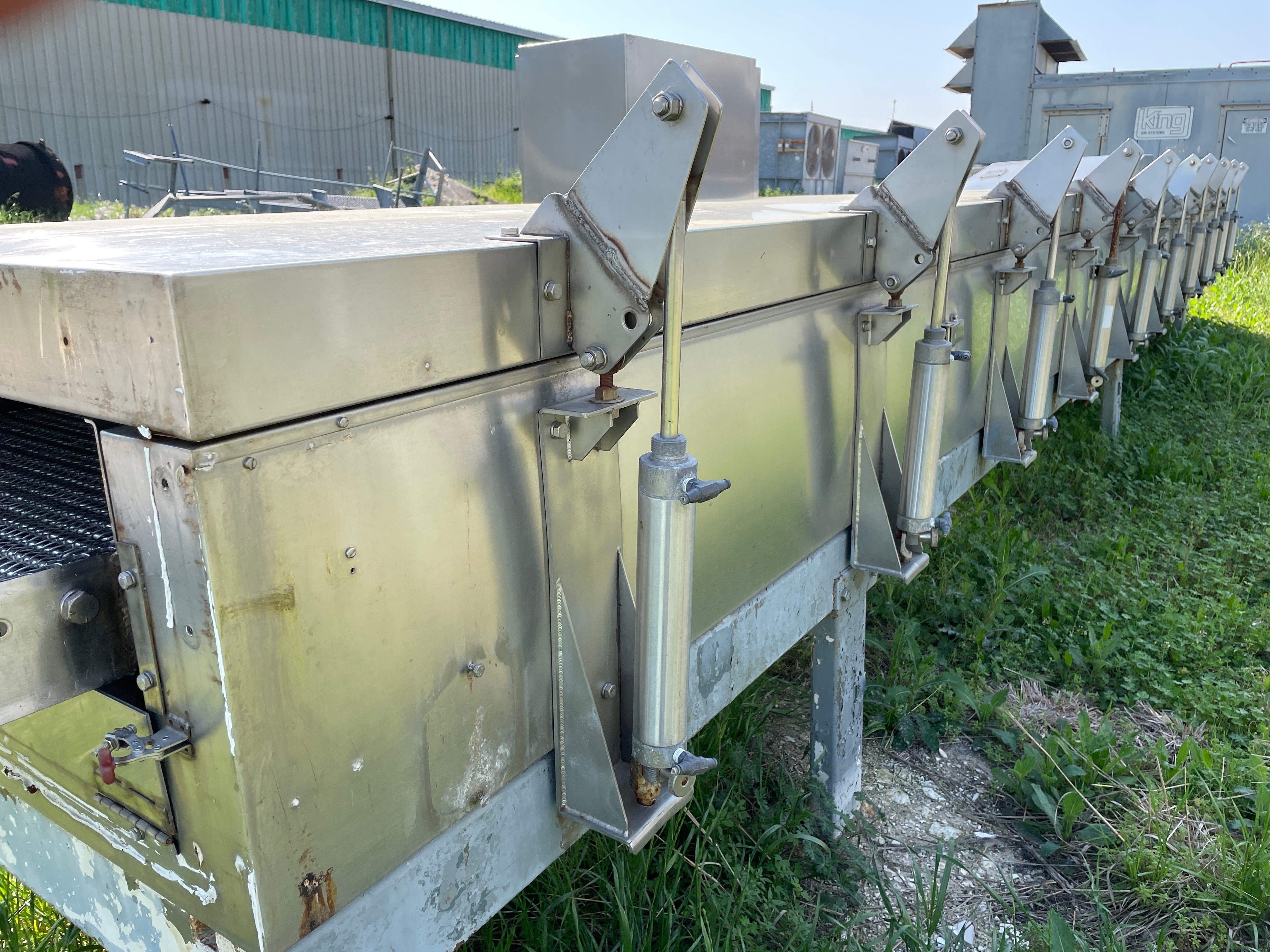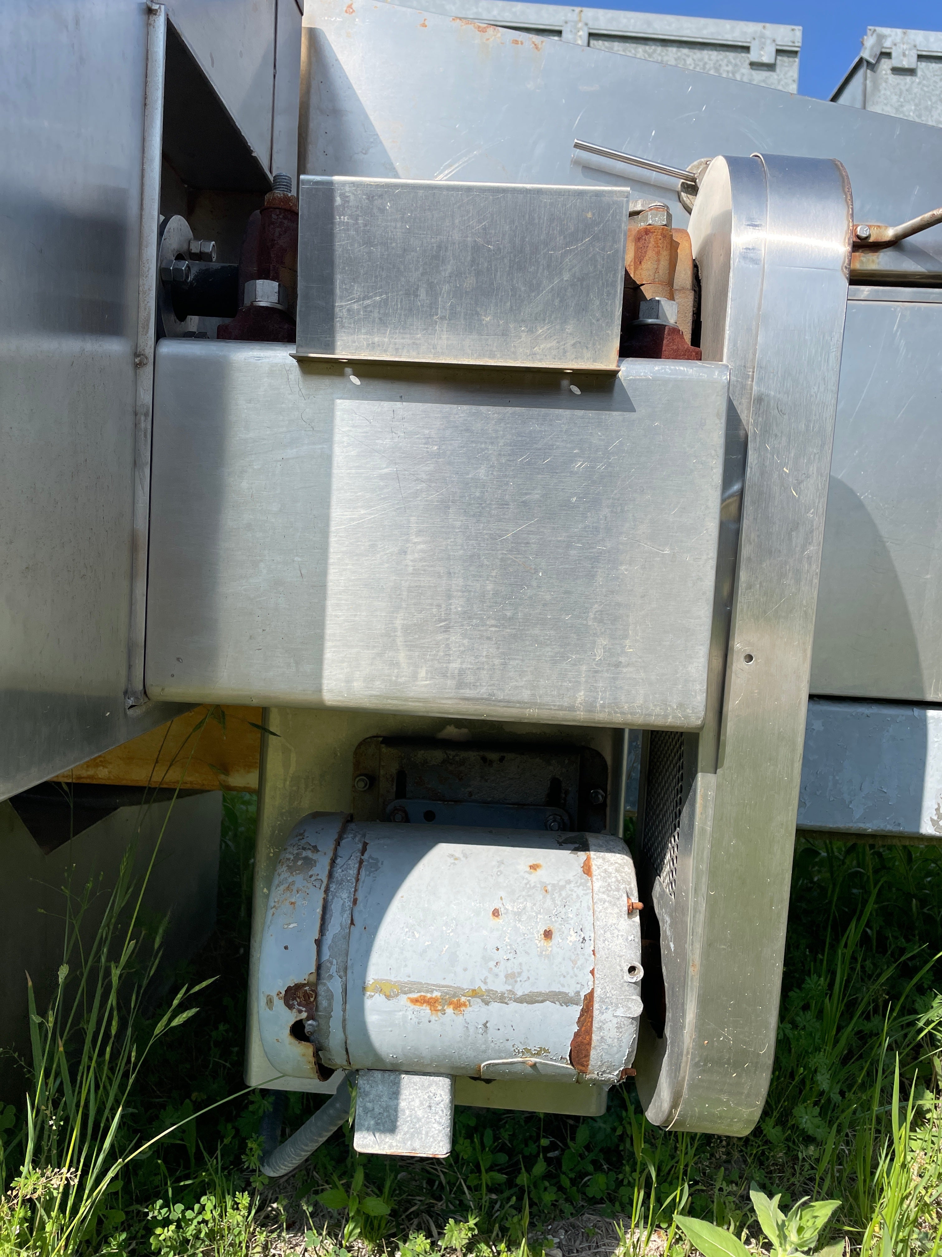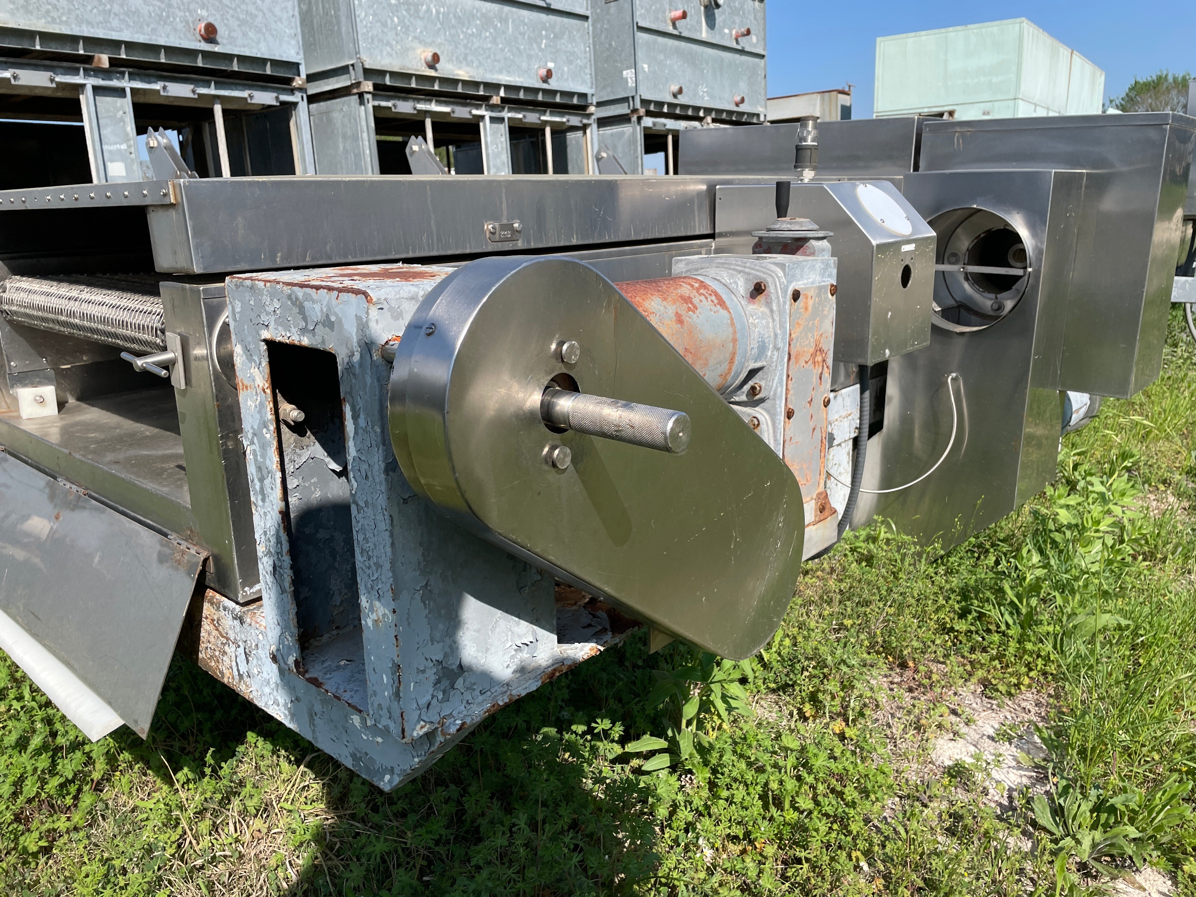 Congelador de túnel IQF de criotransferencia con sistemas de proceso integrados. Proceso de congelación instantánea con nitrógeno. Ventilador de distribución de aire frío forzado. Cinta transportadora de malla de acero inoxidable de 24 pulgadas de ancho. Espacio libre para producto de 2-1/2 pulgadas, longitud total de 27 pies. Cubiertas elevadoras asistidas por pistón. Motor de accionamiento Sterling Electric Lube Free y motor de accionamiento Speedtrol. Temperatura digital Honeywell GN2. control.