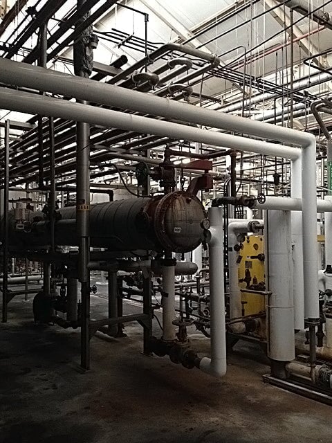 Conjunto Esterilizador-Intercambiador de Calor. S/N: U-1954. Sistema de tubo en tubo, 100 psi a 650 °F, 22 pulg. de diámetro x 20 pies L con trampa de vapor inferior. (fabricado en 1993)