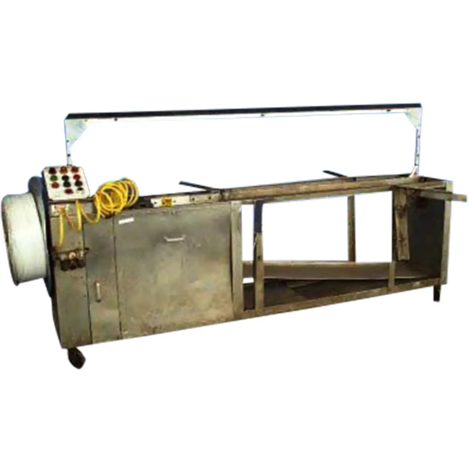 Correa de apertura grande de Midstate. Motor de CA de General Electric. Modelo 5KH49UC4SE, ½ hp, 60 Hz, 115 V, monofásico, 1140 rpm, Código M. Panel de control: 120 V. Caja de cambios: Modelo 6K331A, 60 rpm, 1/6 hp, 150 torque in.-lbs., relación 28,1:1, 115 V, 60 Hz, monofásico, 4,2 amperios. Dimensiones totales: 106 pulgadas de largo x 26 pulgadas de ancho x 52 pulgadas de alto.