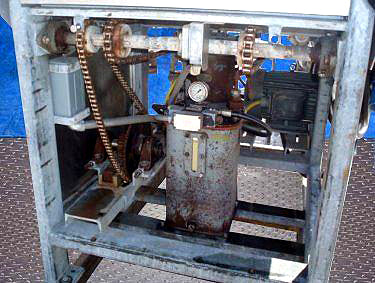 Cortadora Hydrauflaker de General Machinery Corporation. Modelo: FS-10-C. S/N: 499. Dimensiones del tambor de corte giratorio: 12 pulg. de diámetro. x 29 pulgadas de largo. Dimensiones del cortador: 4 pulgadas de largo x 1-1/2 pulgadas de ancho. Apertura/espacio libre máximo: 33 pulgadas de largo x 6 pulgadas de alto. Motor Teco-Westinghouse, 7-1/2 hp, 1755 rpm, 230/460 V, 24,9/12,4 amperios, 60 Hz, trifásico. Motor hidráulico industrial Baldor, 1-1/2 hp, 1725 rpm, 208-230/460 V, 5.3-5/2.5 amperios, 60 Hz, trifásico. Entradas: (1) 33 pulgadas de largo x 6 pulgadas de alto (alimentación). Salida: (1) 29 pulgadas de largo x 8 pulgadas de ancho (descarga del producto). Dimensiones totales: 7 pies de largo x 3 pies 9 pulgadas de ancho x 6 pies de alto.