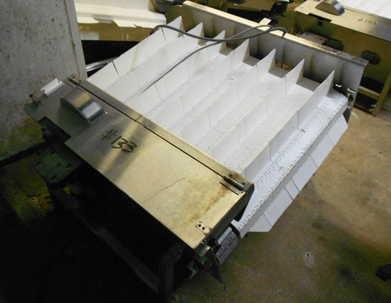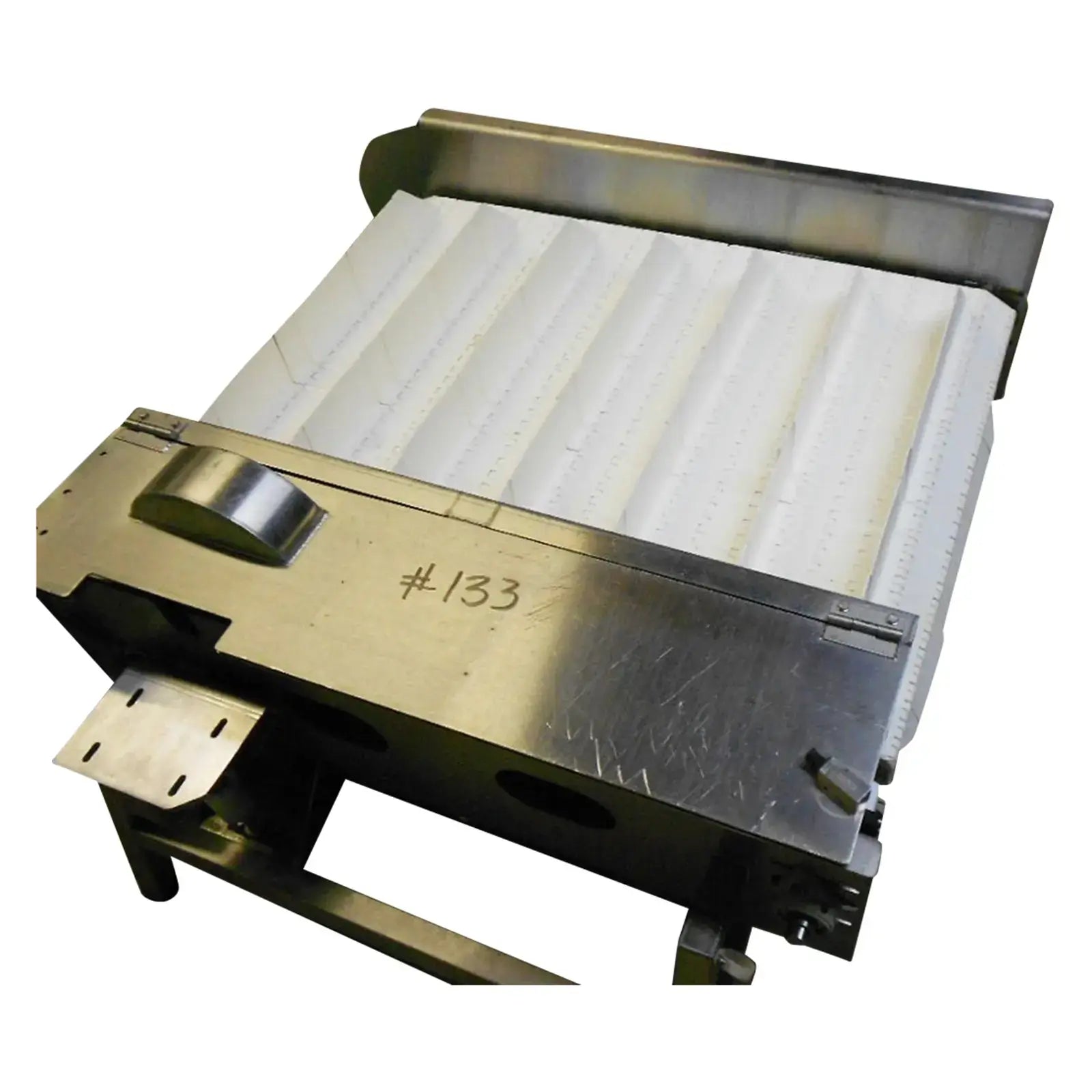 Cortadores de Cola de Acero Inoxidable. Correa con aletas de 31-1/2 pulgadas con correa secundaria de 4 pulgadas de ancho, activación por fotocélula