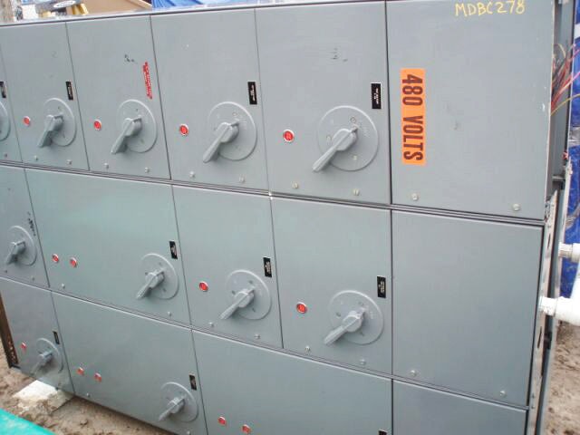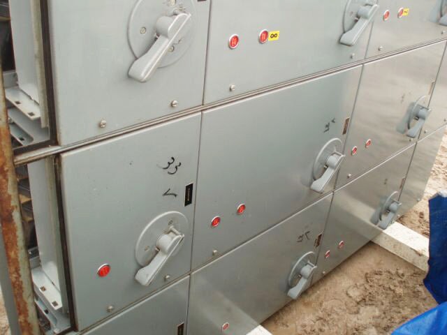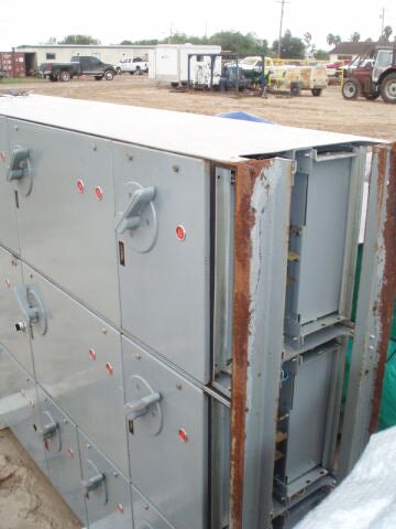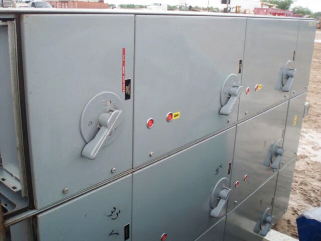 Centro de control de motores de doble cara Cutler-Hammer Bucket. Requisitos eléctricos: 480 V, trifásico. Dimensiones totales: 7 pies 6 pulgadas de largo x 5 pies de largo x 1 pie 8 pulgadas de alto.