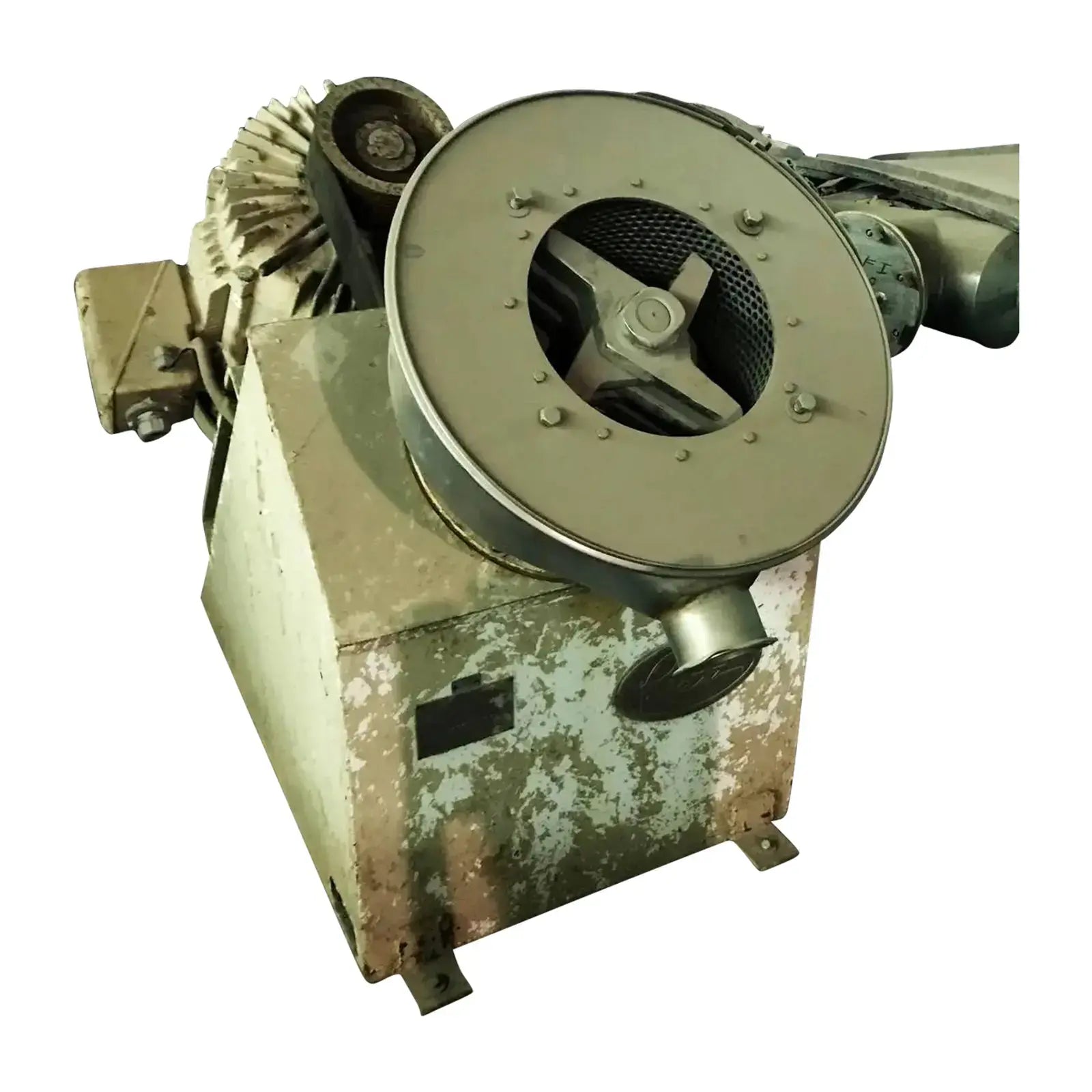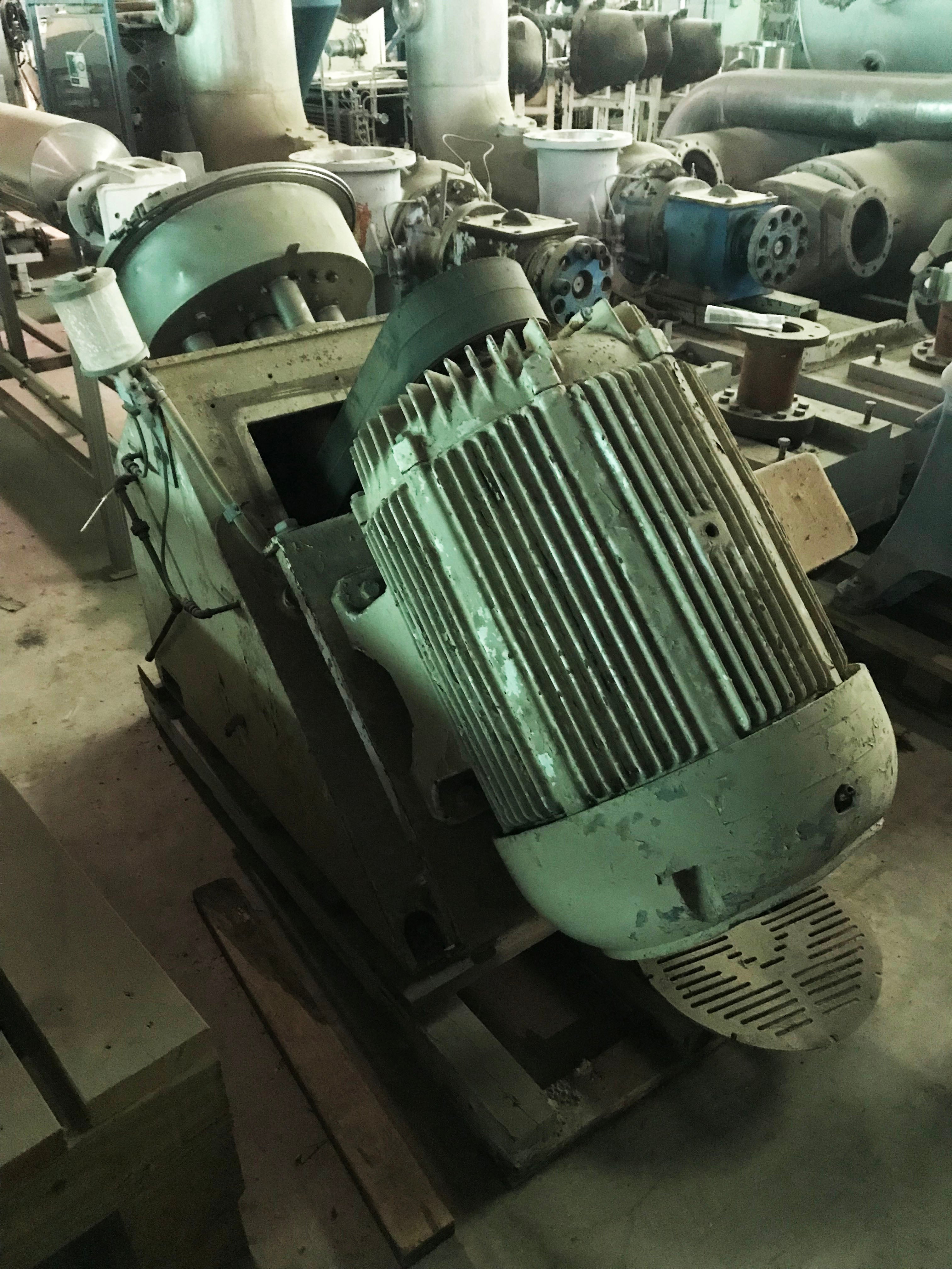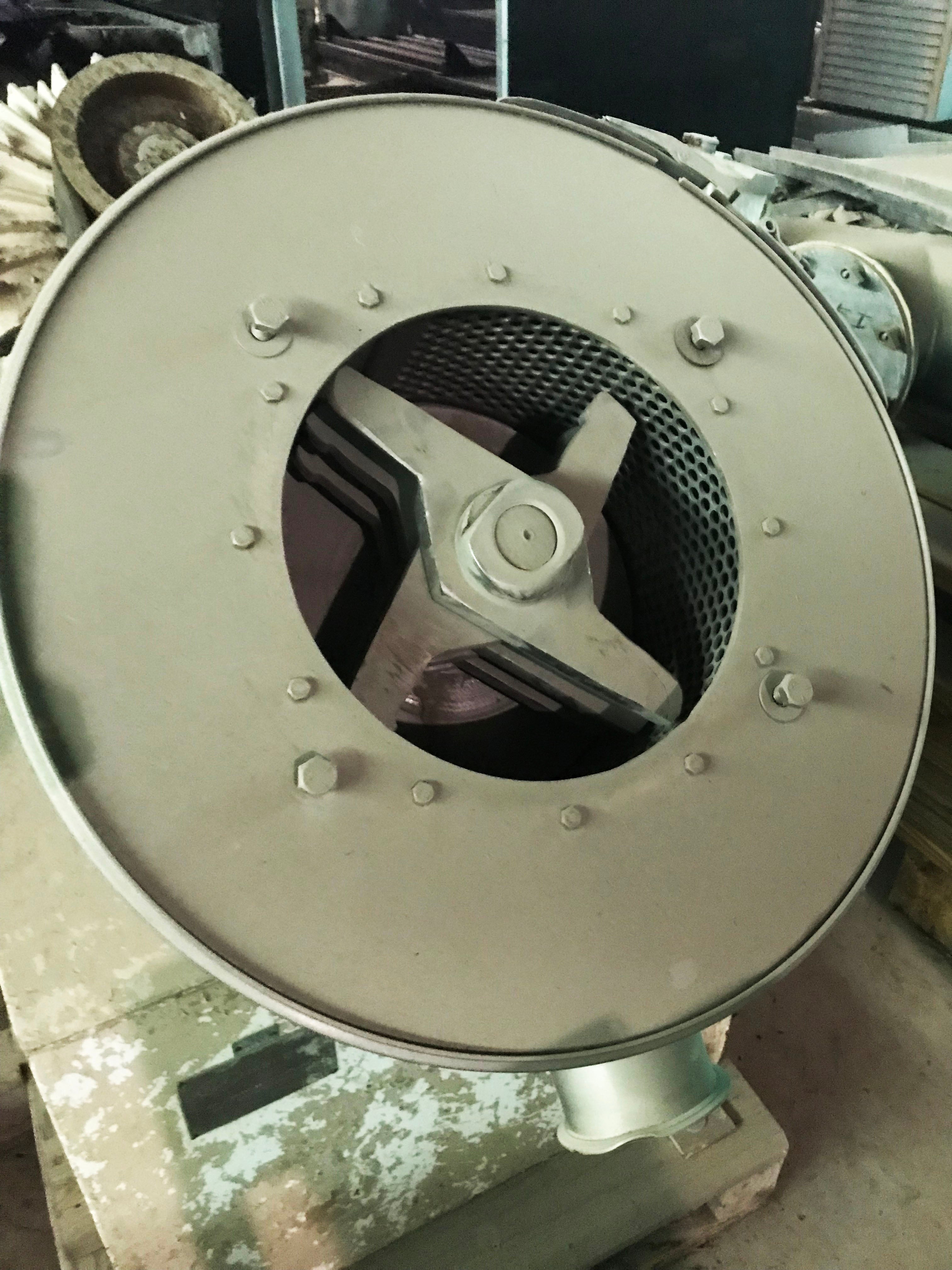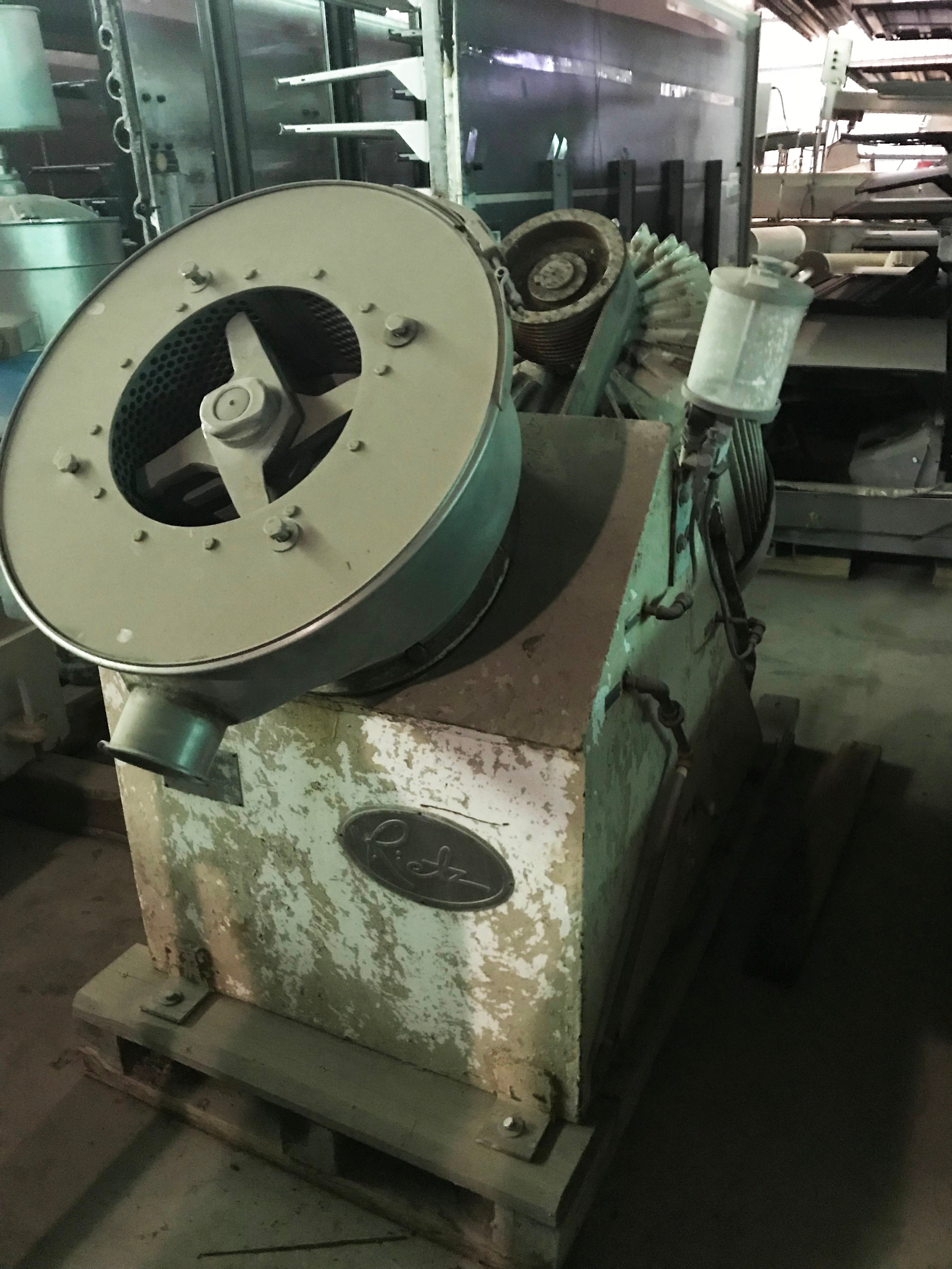Desintegrador Hosokawa Bepex Rietz Serie RA. Modelo: RA3-12-K122. N/S: RA-731621. El desintegrador utiliza (7) 11 pulgadas de diámetro. Impulsores alojados en una pantalla de dispersión de malla de 0,033 pulgadas y 12 pulgadas de diámetro sostenida entre una base con un diámetro de 3/8 pulgadas. orificios y un soporte con orificios cuadrados de 3/4 pulg. x 3/4 pulg. Motor Allis-Chalmers, 75 hp, 3570 rpm, 230/460 V, 1 72/86 amperios, 60 Hz, trifásico. Los desintegradores de la serie RA se utilizan ampliamente para la pulpa fina de muchos productos alimenticios y para la dispersión fina y la homogeneización tanto en la industria alimentaria como en la química. Además, estos desintegradores Rietz tienen la capacidad de triturar y moler en húmedo a alta velocidad muchos materiales fibrosos y otros materiales extremadamente resistentes. Entradas: (1) 11 pulg. de diámetro. puerto de alimentación. Salidas: (1) 4 pulg. de diámetro. Conexión de línea S. Dimensiones totales: 78 pulgadas de largo x 41 pulgadas de ancho x 46-1/2 pulgadas de alto.