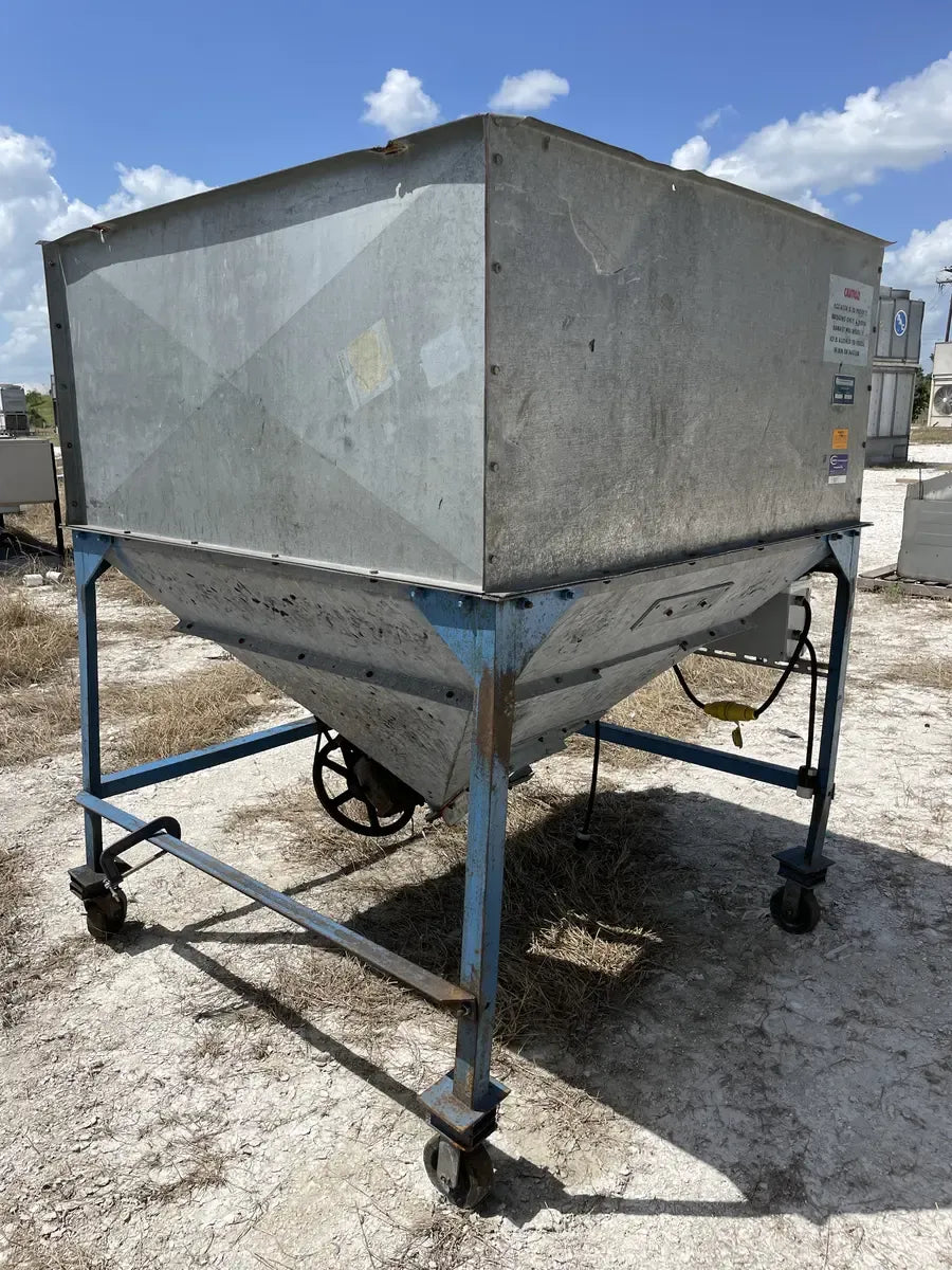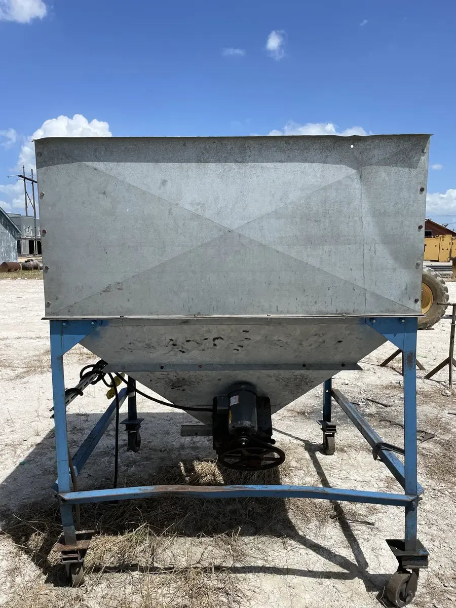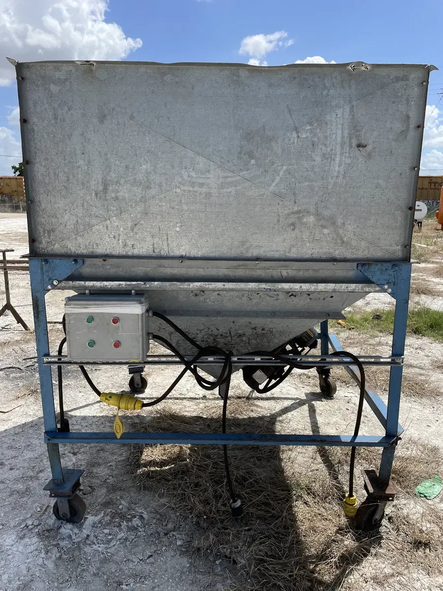 Dispensador Perfection Industries con agitador. Modelo: 3300, Número de serie: 319. La unidad tiene un agitador para evitar puentes y congelación dentro del contenedor para un flujo suave y constante. Salida de 10 pulgadas. Dimensiones totales de la tolva (pulg.): 60 largo x 65 ancho x 58 alto. Dimensiones totales de envío (pulg.): 64 largo x 71 ancho x 79 alto. Transmisión por engranajes del agitador Dorris: Modelo: 107SCD25, Número de serie: 107SCD17701. Relación: 25. Funcionó con un motor Baldor de .75 HP Voltios: 208-230/460, Amperios: 3.2-3/1.5, RPM: 1725, Bastidor: 56, Hz: 60.