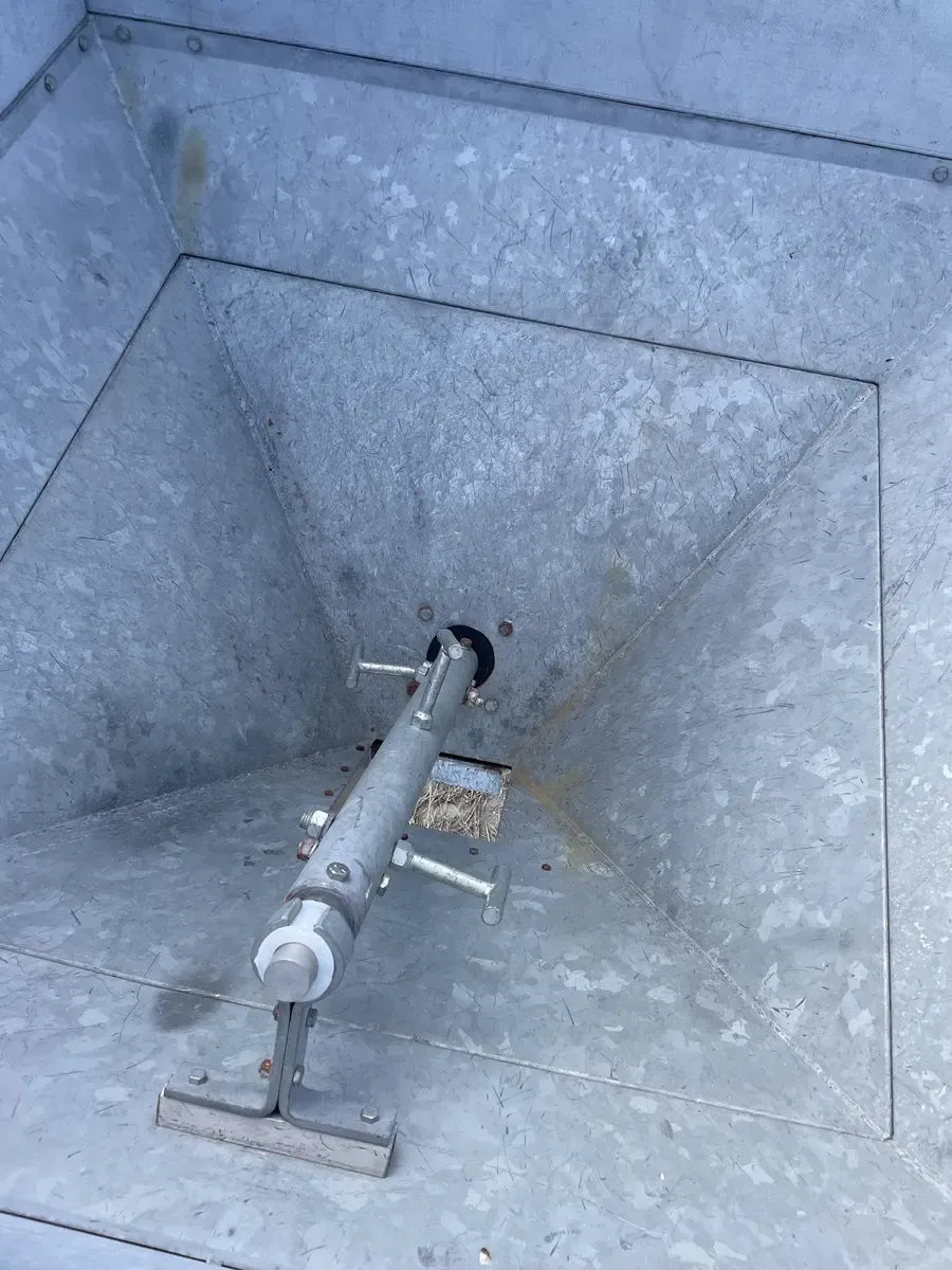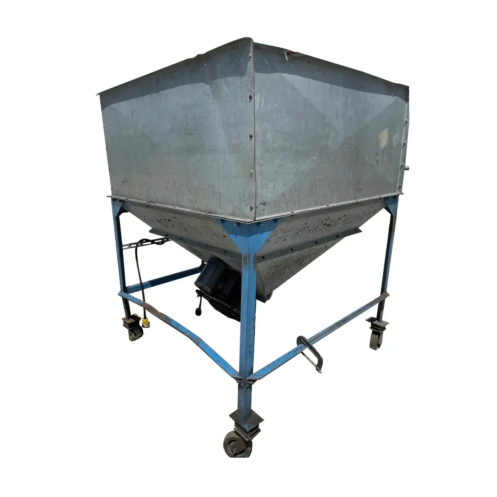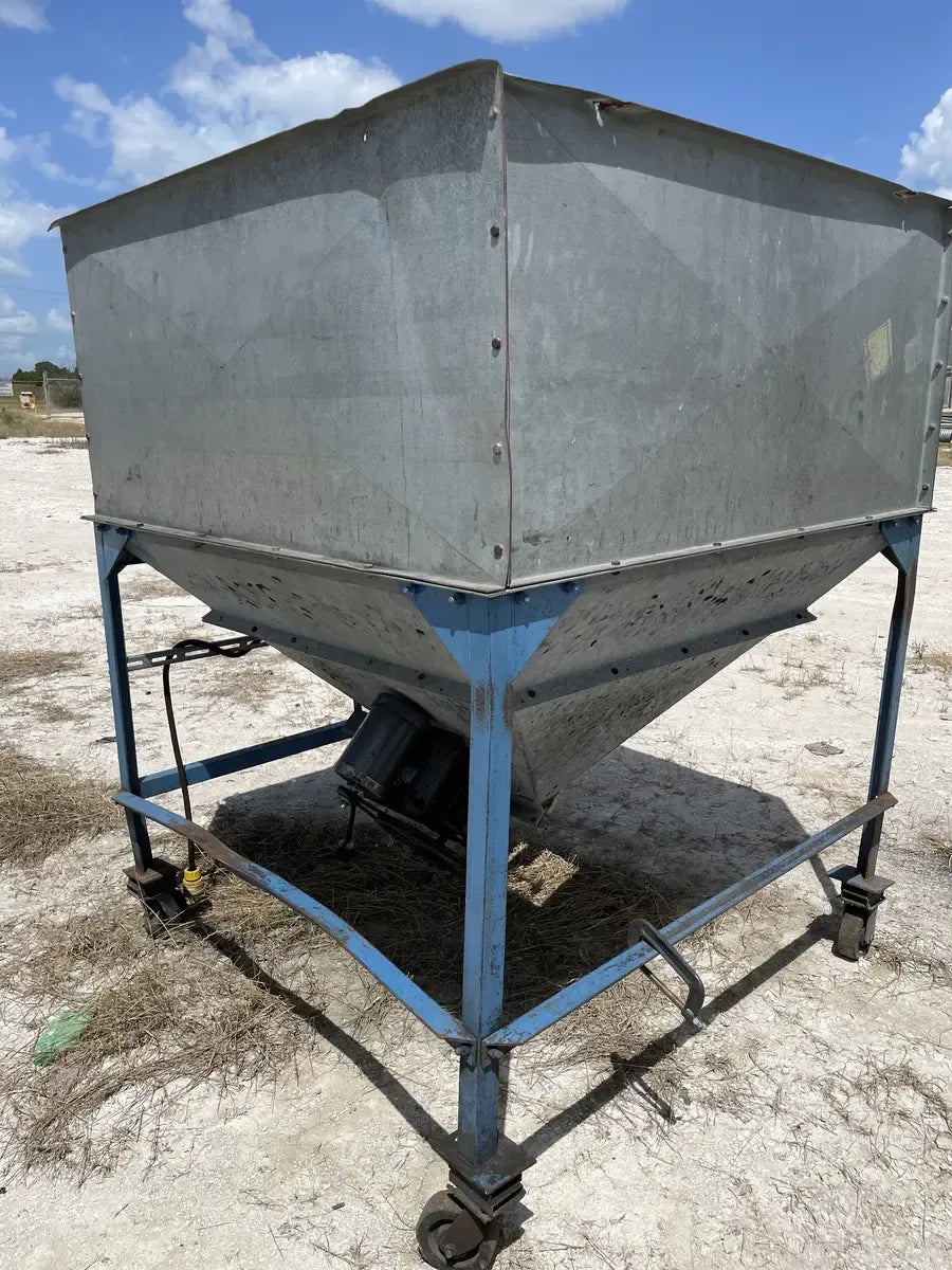 Dispensador Perfection Industries con agitador. Modelo: 3300, Número de serie: 319. La unidad tiene un agitador para evitar puentes y congelación dentro del contenedor para un flujo suave y constante. Salida de 10 pulgadas. Dimensiones totales de la tolva (pulg.): 60 largo x 65 ancho x 58 alto. Dimensiones totales de envío (pulg.): 64 largo x 71 ancho x 79 alto. Transmisión por engranajes del agitador Dorris: Modelo: 107SCD25, Número de serie: 107SCD17701. Relación: 25. Funcionó con un motor Baldor de .75 HP Voltios: 208-230/460, Amperios: 3.2-3/1.5, RPM: 1725, Bastidor: 56, Hz: 60.