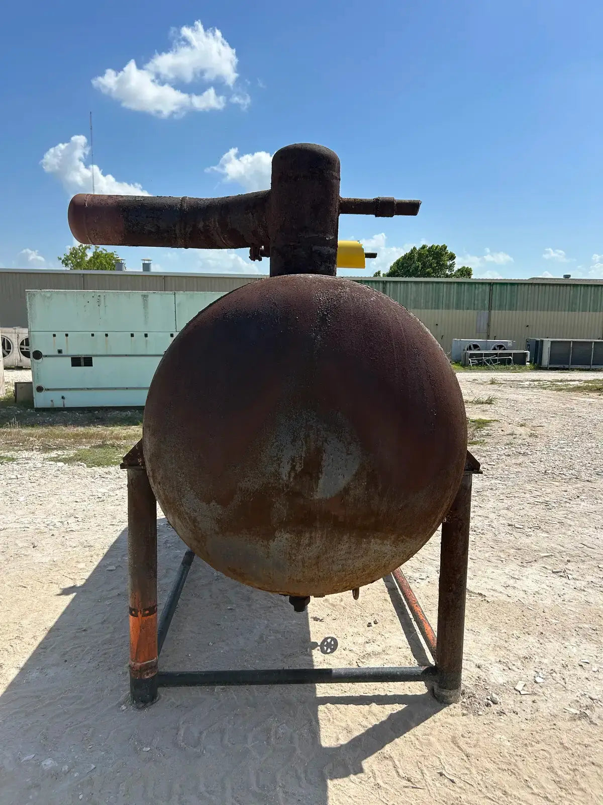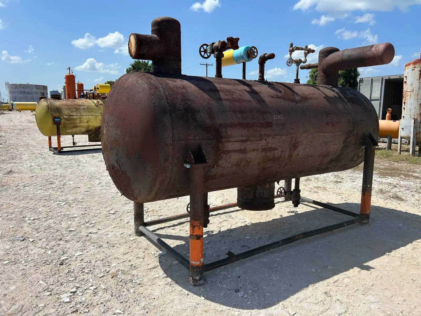 Acumulador horizontal de amoníaco certificado por EL Nickell Co. Junta Nacional: 16184. N.º de serie: 18155. Presión máxima de trabajo (MAWP): 150 PSI a 650 °F. Presión mínima de trabajo (MDMT): -20 °F a 150 PSI.