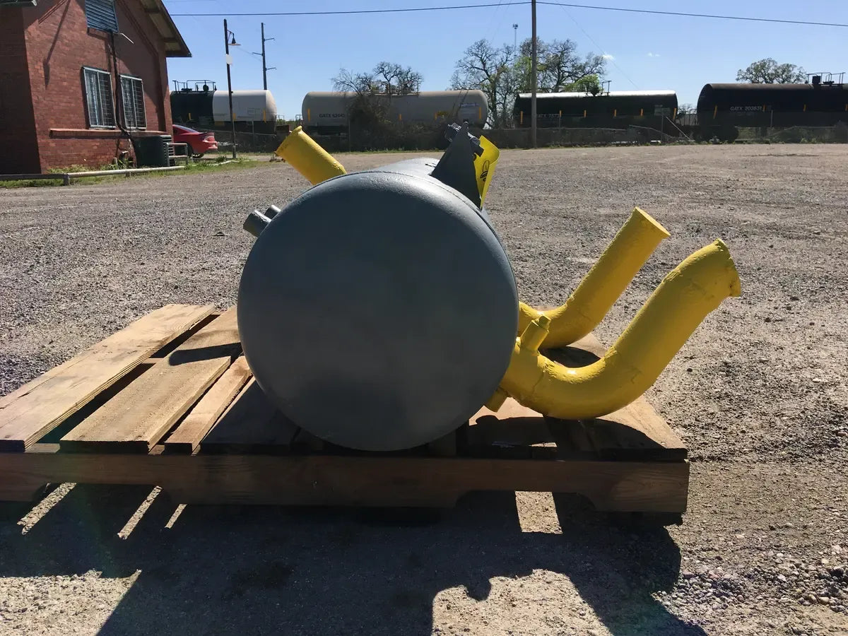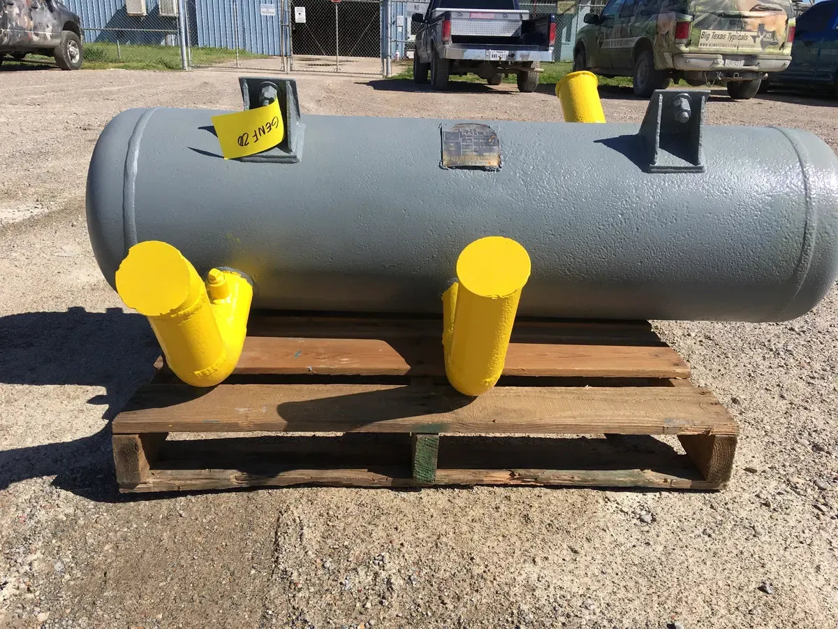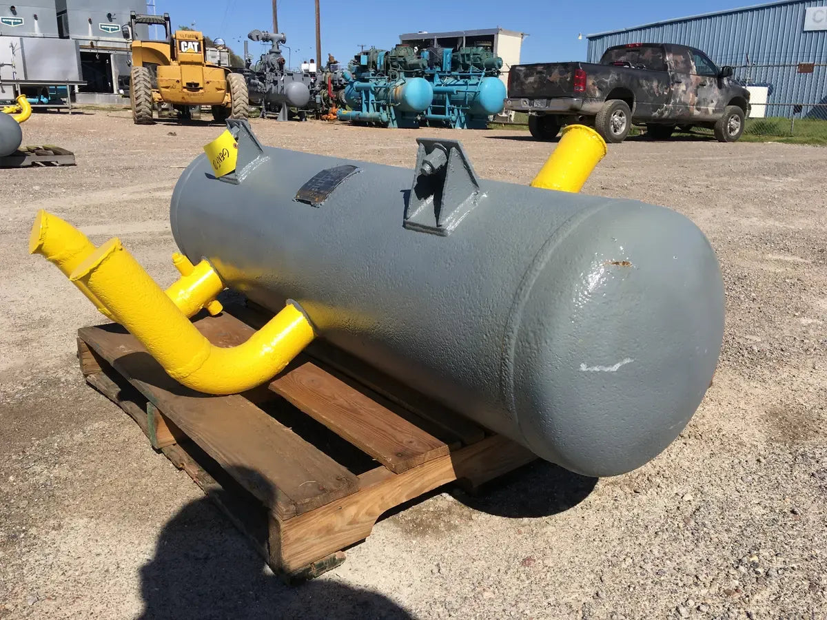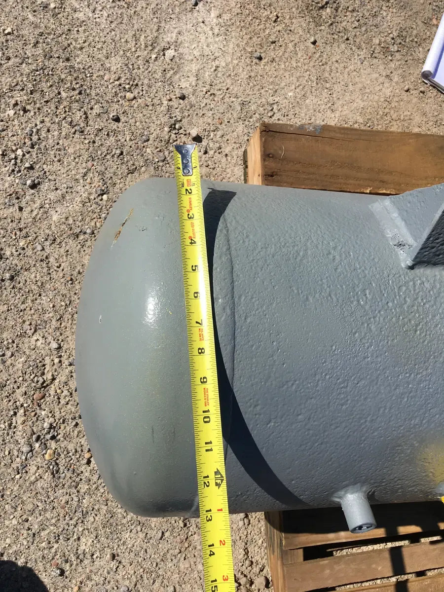 EL Nickell Co. Intercooler de amoníaco (13 x 60 pulgadas, 34 galones) Número de serie: 18314. Número de la Junta Nacional del tanque: 16343. Capacidad estimada del tanque (galones): 34. MAWP del tanque (PSI a temperatura): 150 PSI a 650 F. MAWT del tanque (PSI a temperatura): -20 PSI a 650 F. El refrigerante anterior era amoníaco (R717 | NH3). Fabricado en 1972. Dimensiones de envío (pulgadas): 60 x 17 x 17. 350 LB