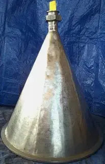 Embudo de acero inoxidable, 25 pulgadas de alto con una abertura de entrada de 21 pulgadas y una salida de 2 pulgadas.