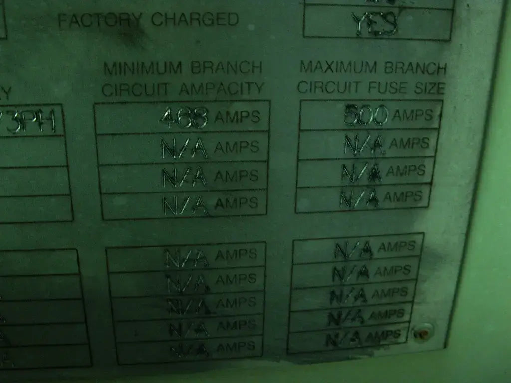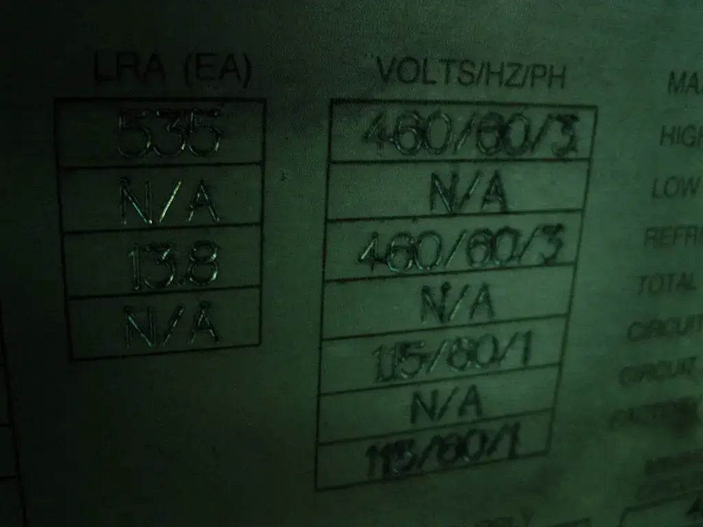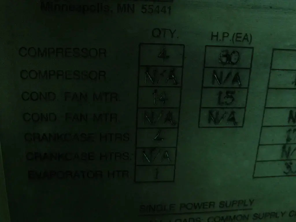 - Descripciones de compresores: (4) 8-cylinder compressors, 60 Hp each 460V 60 Hz 3 phase.
