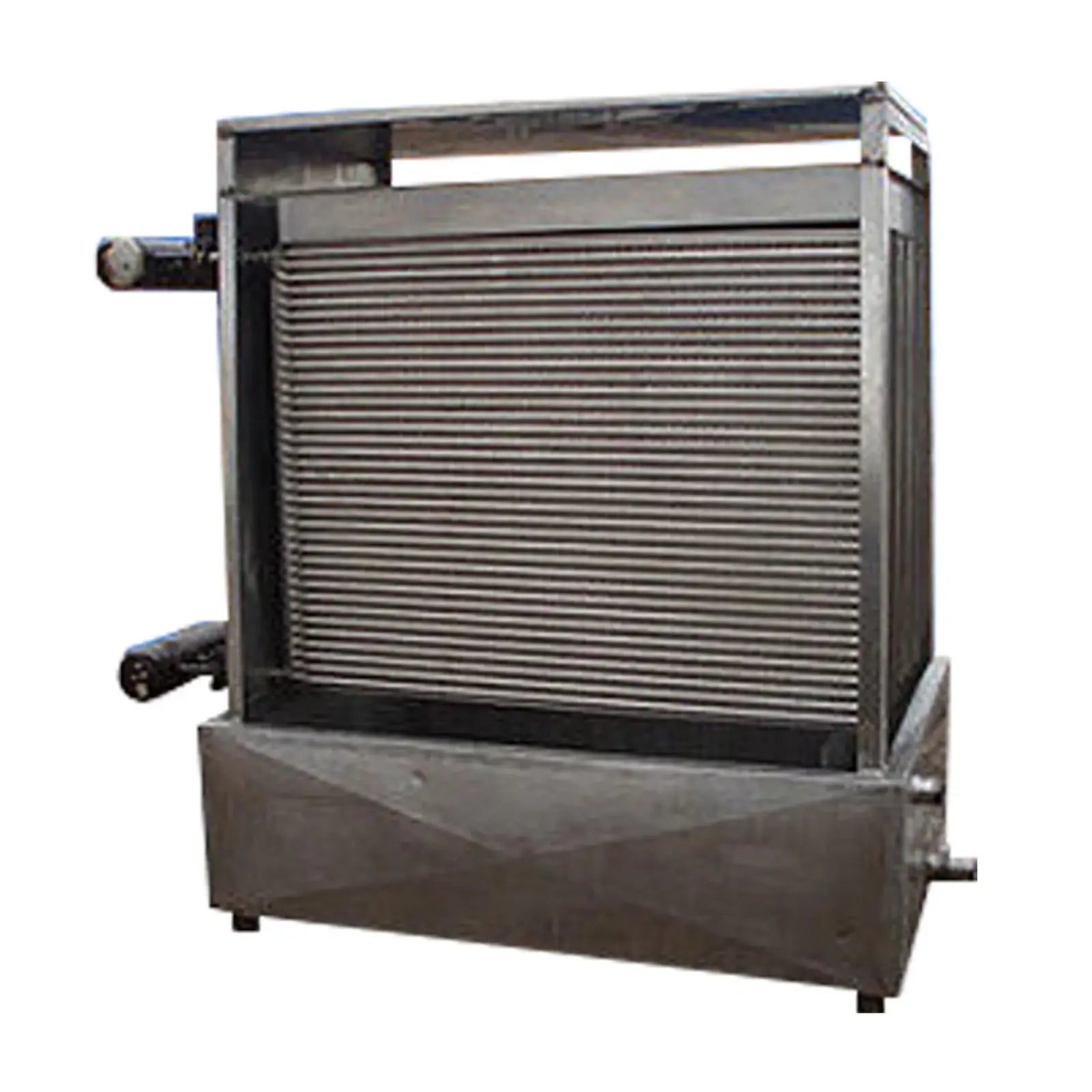 Enfriador de placas Chester-Jensen Co. Modelo: B-8-0T-736-60. Refrigerante: polipropilenglicol. Número de placas: 8. Número de corrugaciones: 36. Superficie total de enfriamiento: 342 pies cuadrados. Dimensiones de la placa: 5 pies 2 pulgadas de largo x 3 pies 9 pulgadas de ancho. Tanque colector de 180 galones. Dimensiones de la pared recta interior: 5 pies 4 pulgadas de largo x 3 pies 7 pulgadas de ancho x 1 pie 3 pulgadas de alto. Bomba centrífuga sanitaria Tri-Flo. Modelo: C216MD181-S. Diámetro del impulsor: 4-1/4 pulg. de diámetro. Motor eléctrico Reliance de 5 CV. Entradas de bomba: (1) accesorios S-line de 2-1/2 pulg. Salidas: (1) accesorios S-line de 1-1/2 pulg. Entradas: (1) 4 pulg. de diámetro. puerto, (1) 2 pulg. de diámetro. Conexión NPT. Salidas: (1) 4 pulg. de diámetro. puerto, (1) 2-1/2 pulg. de diámetro. Accesorios de línea S. Dimensiones totales: 7 pies 6 pulgadas de largo x 4 pies 4 pulgadas de ancho x 6 pies 6 pulgadas de alto.
